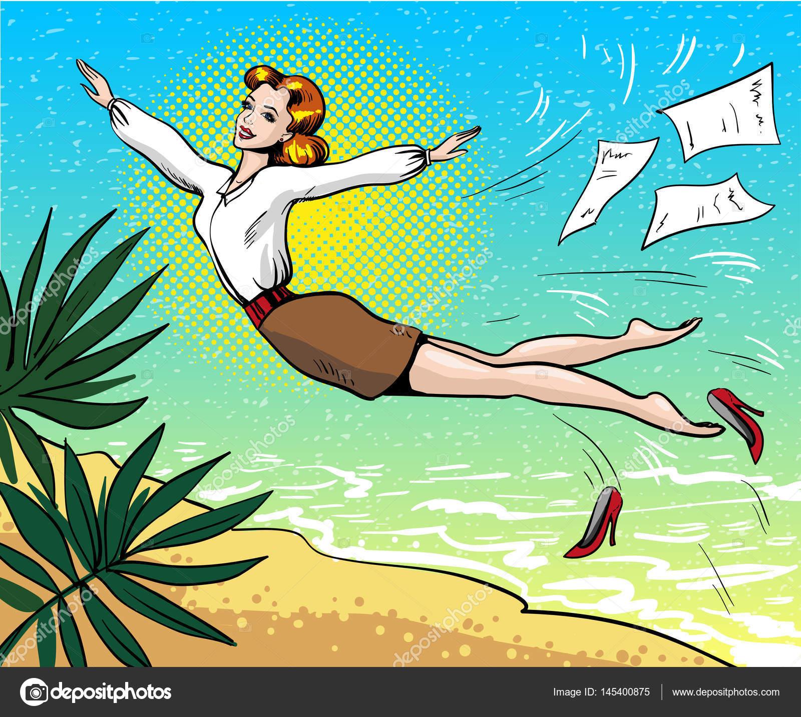 девушка на пляже рисунок