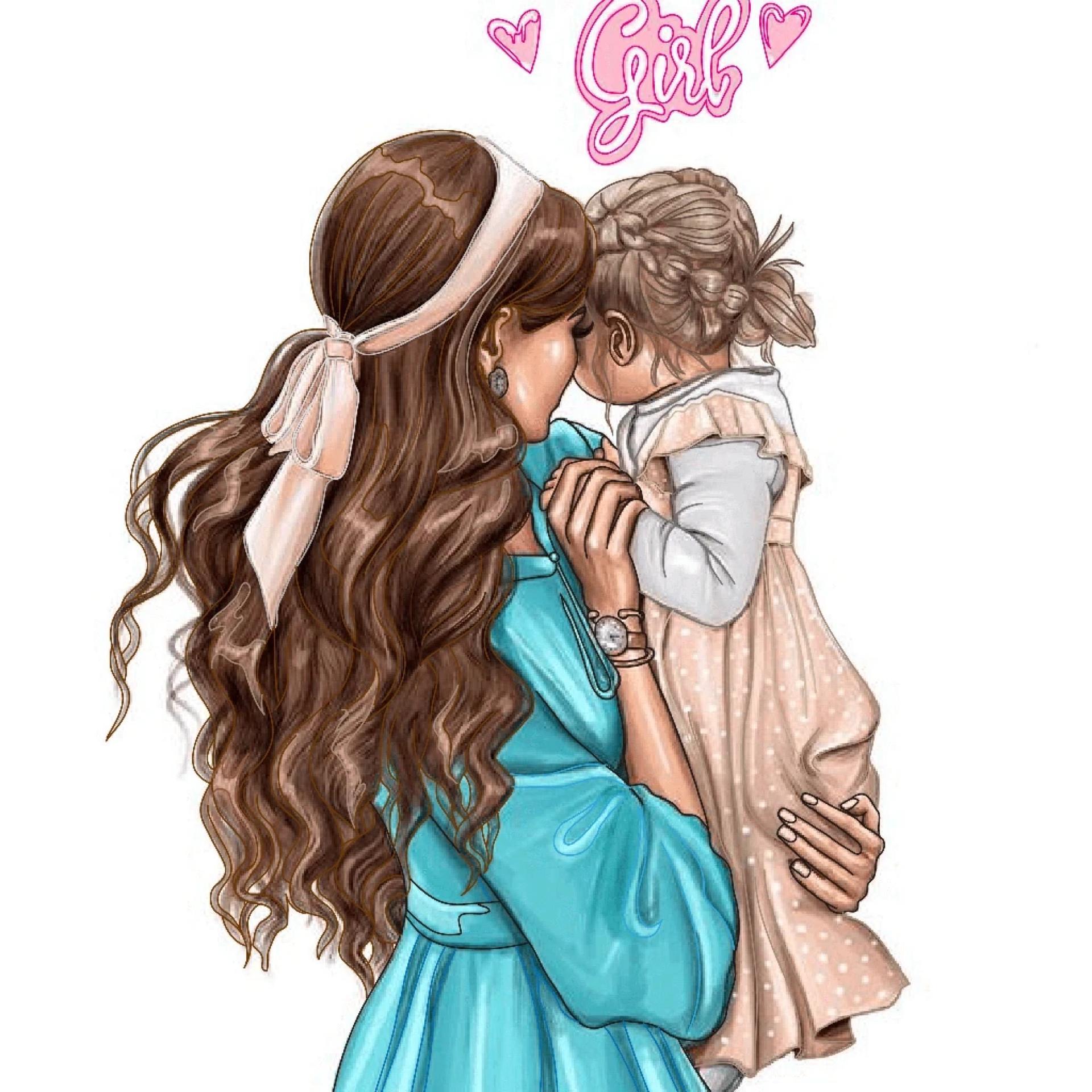 мультяшная девушка с ребенком