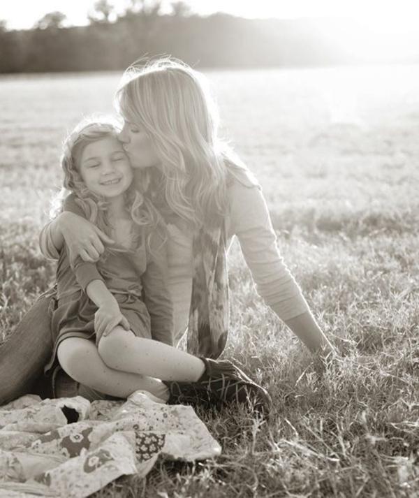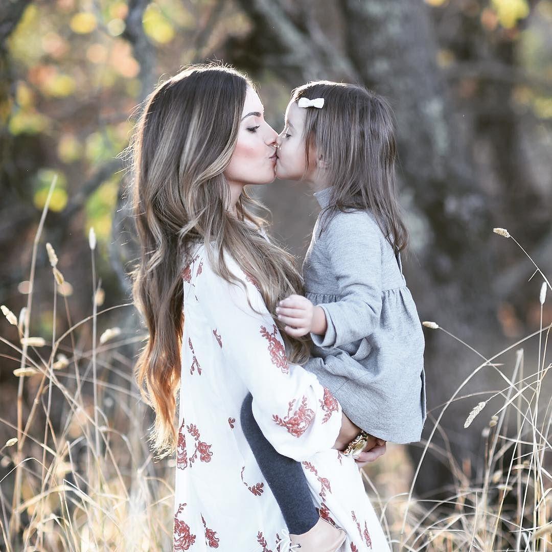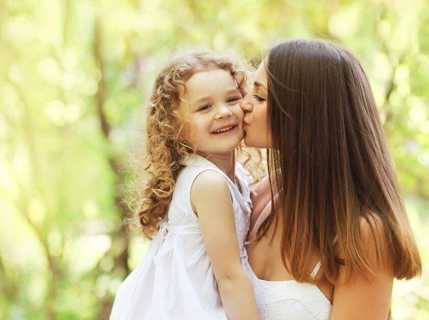 мама целует дочку