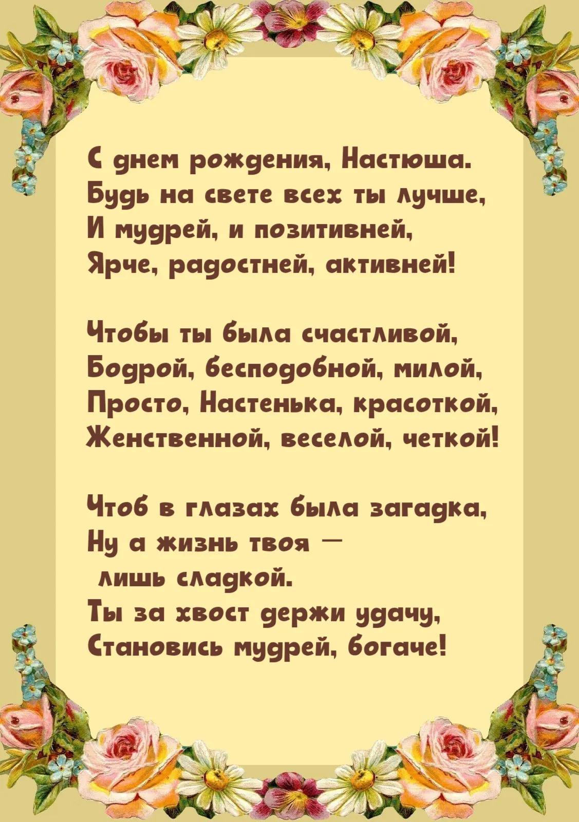 поздравление с днём рождения насте красивые