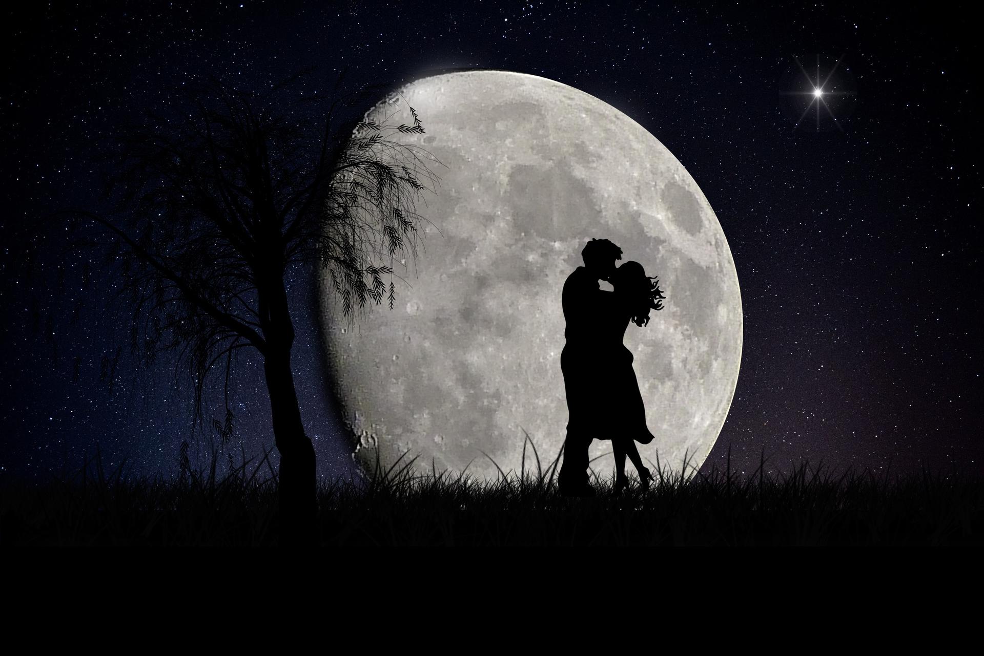 на фоне луны