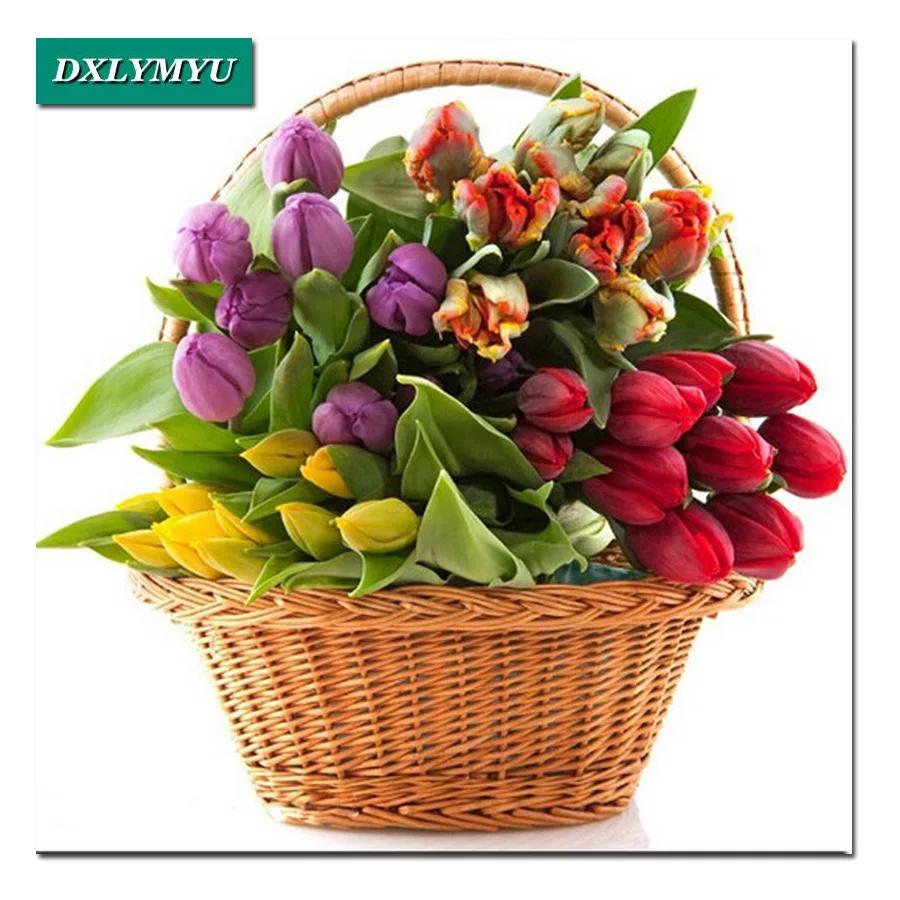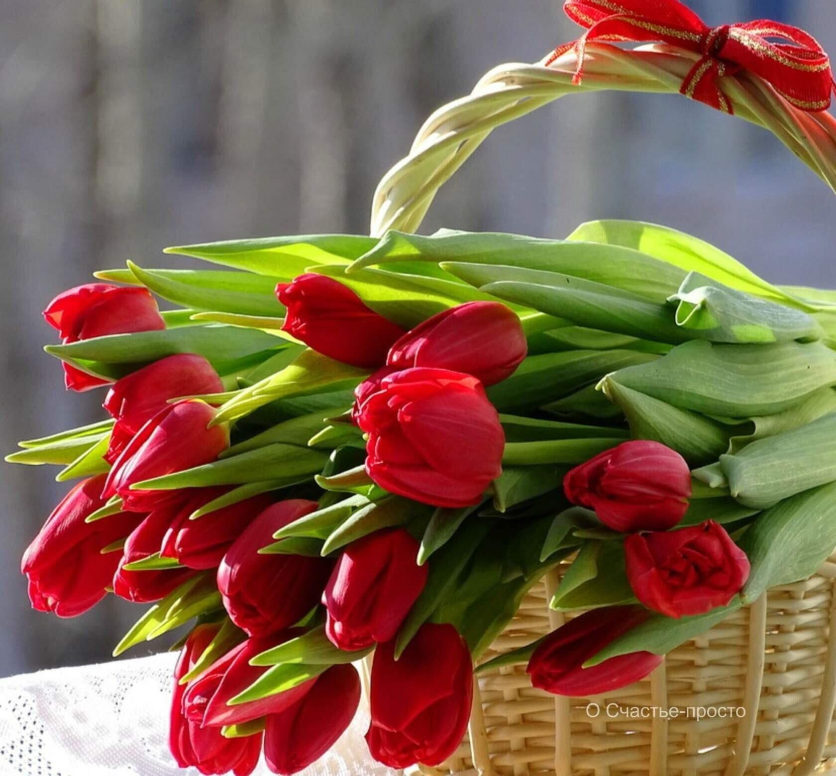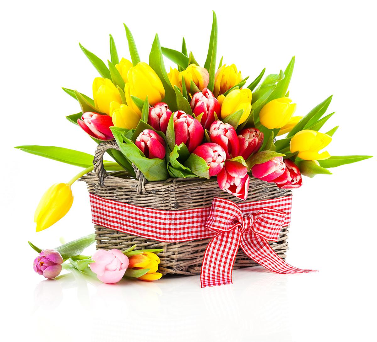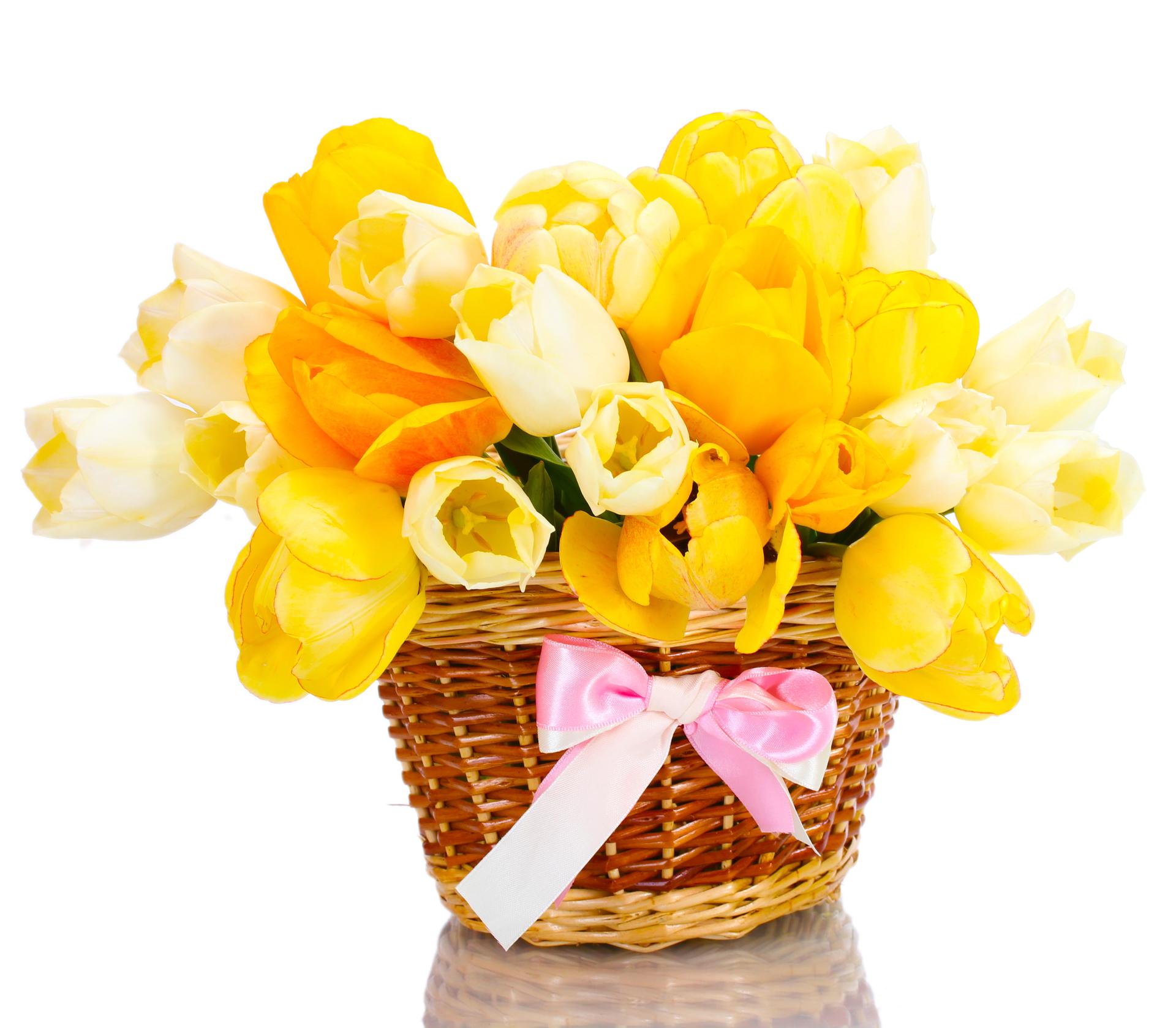тюльпаны в корзинке