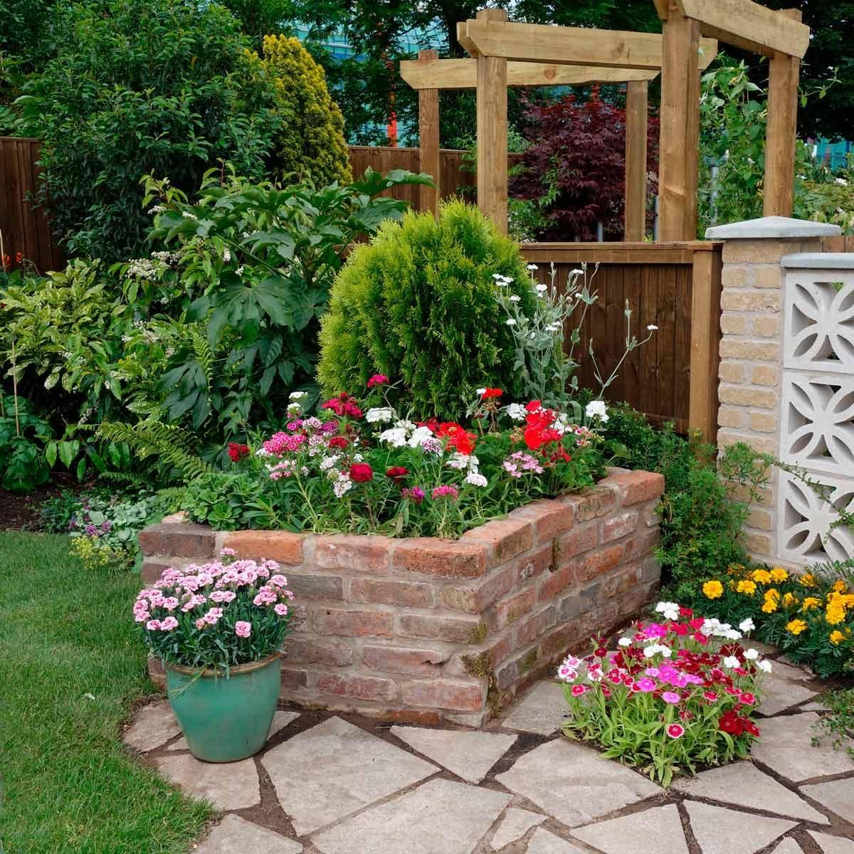 оригинальные клумбы из кирпича