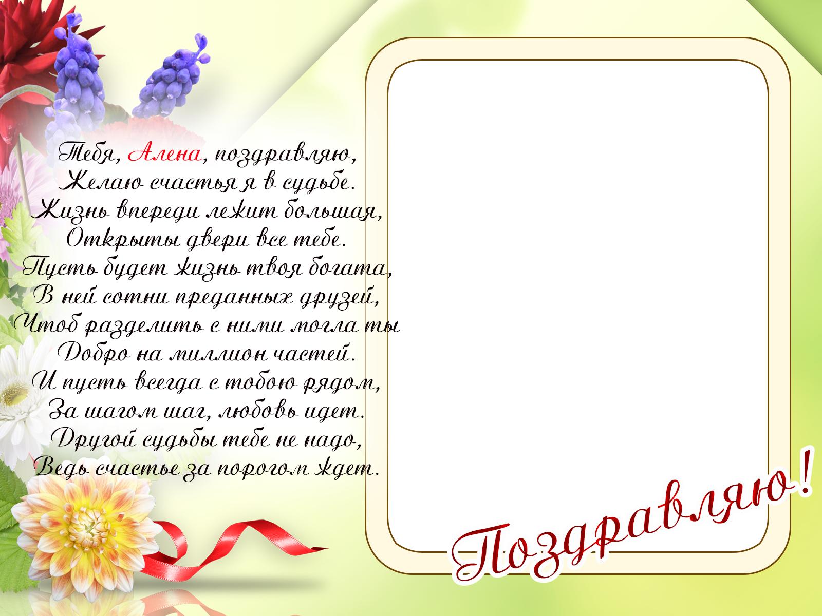 Алена с юбилеем с пожеланиями