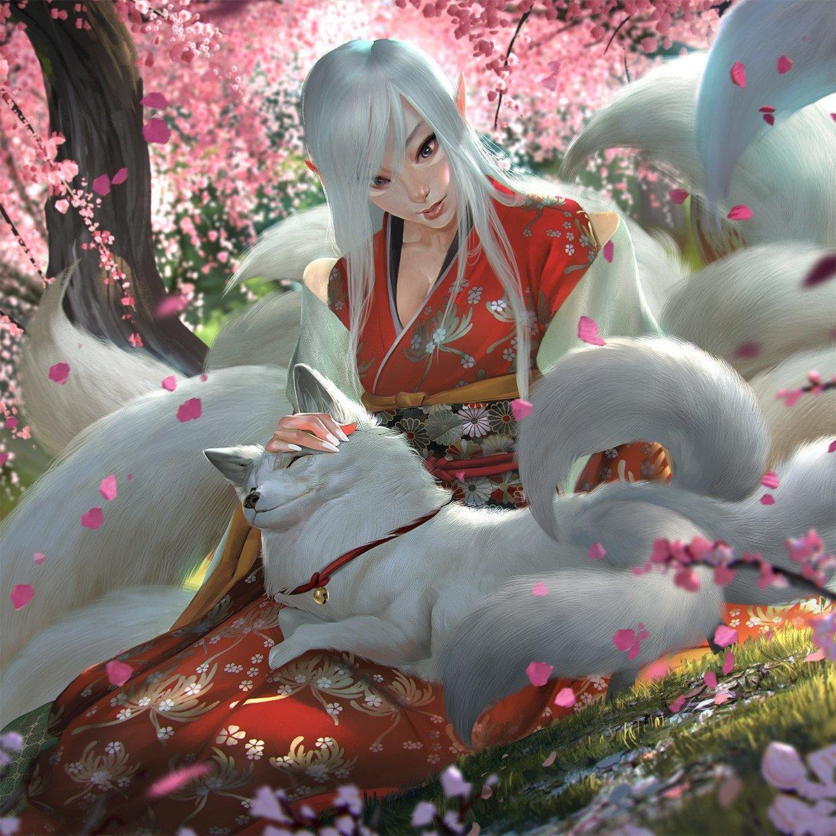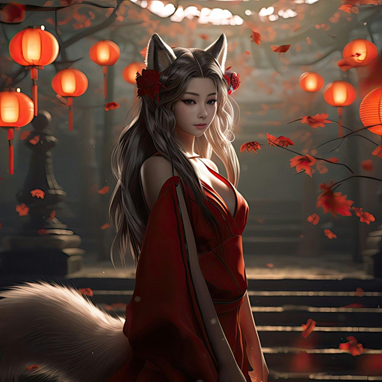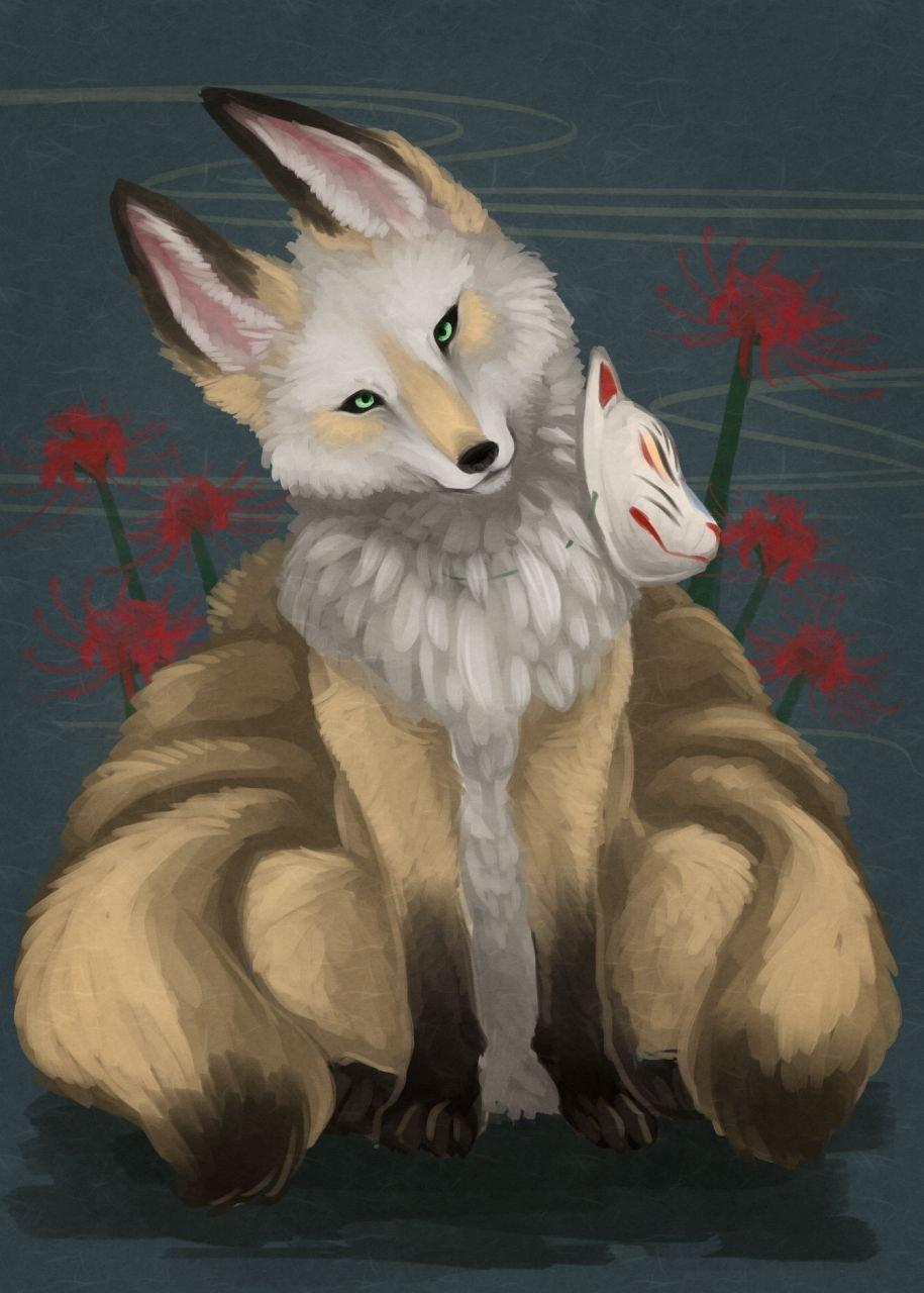 Красивые картинки Кицунэ с надписями