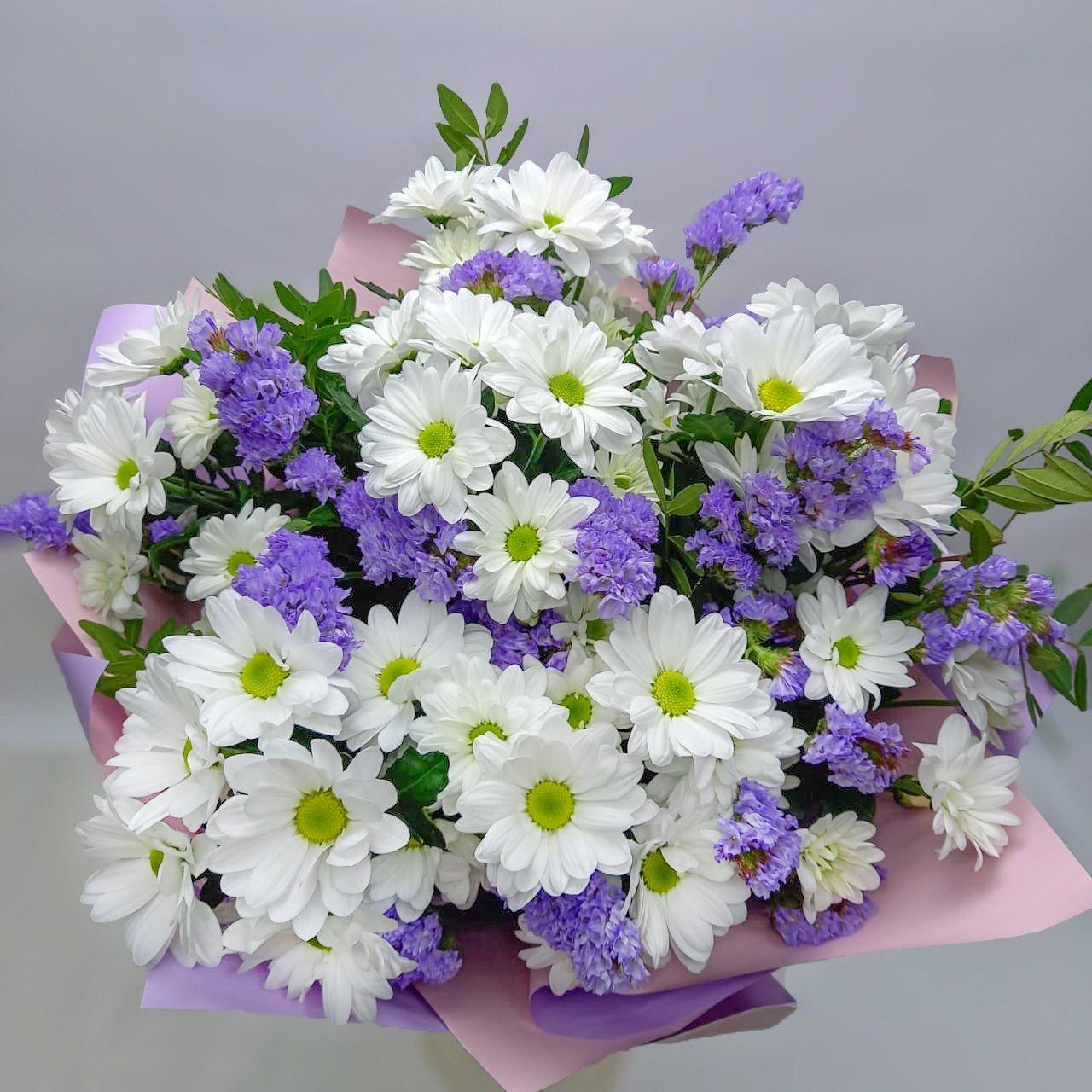 букет из хризантем кустовых белых ромашек
