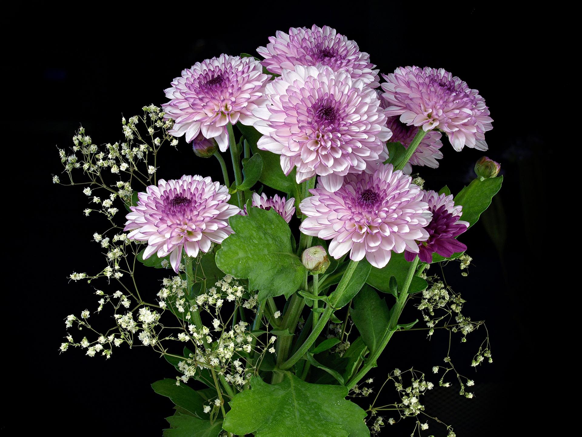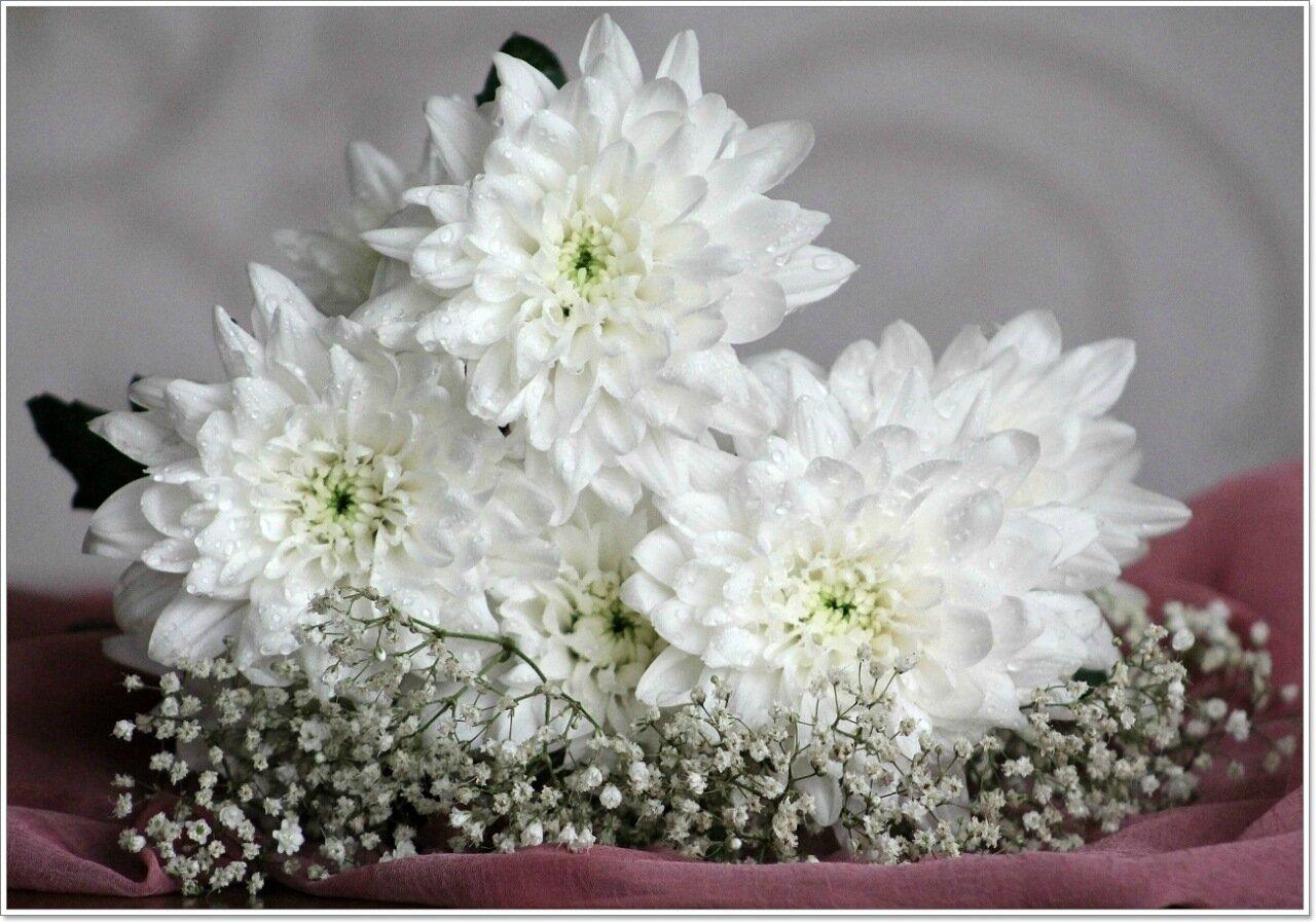 букет хризантем и гипсофилы