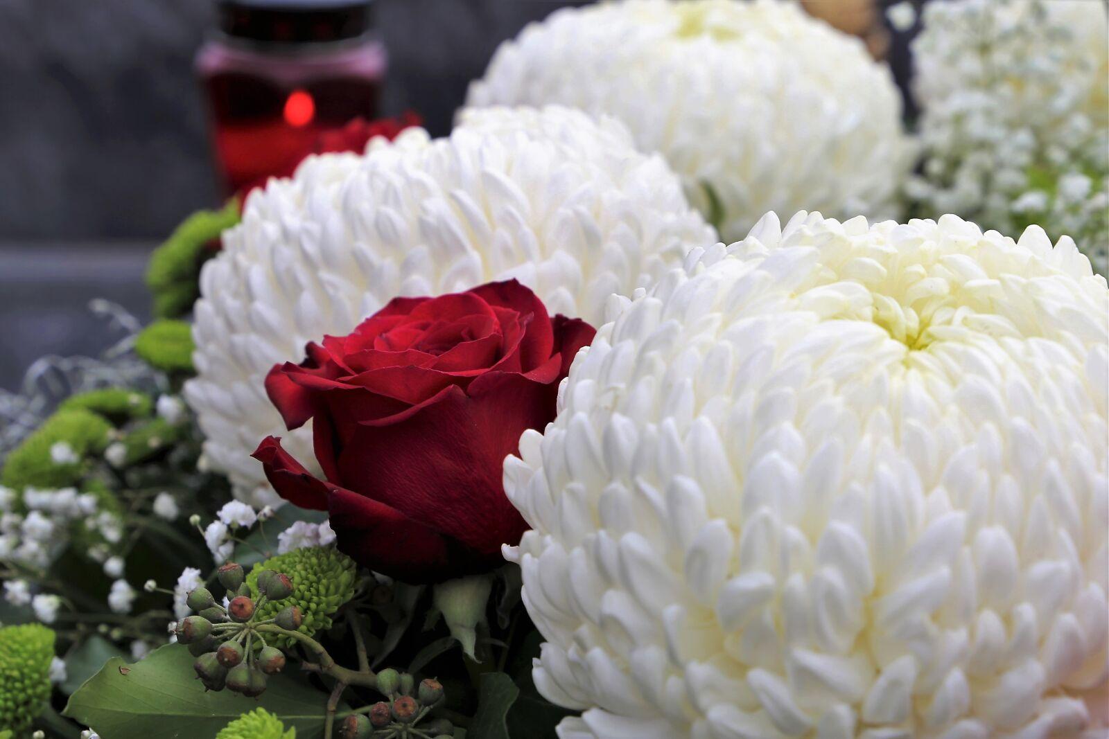 красные розы с белыми хризантемами
