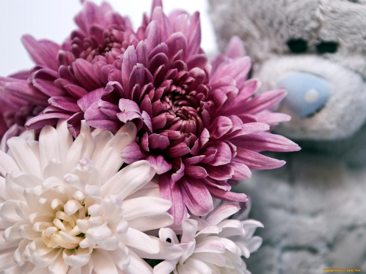 мишка с цветами