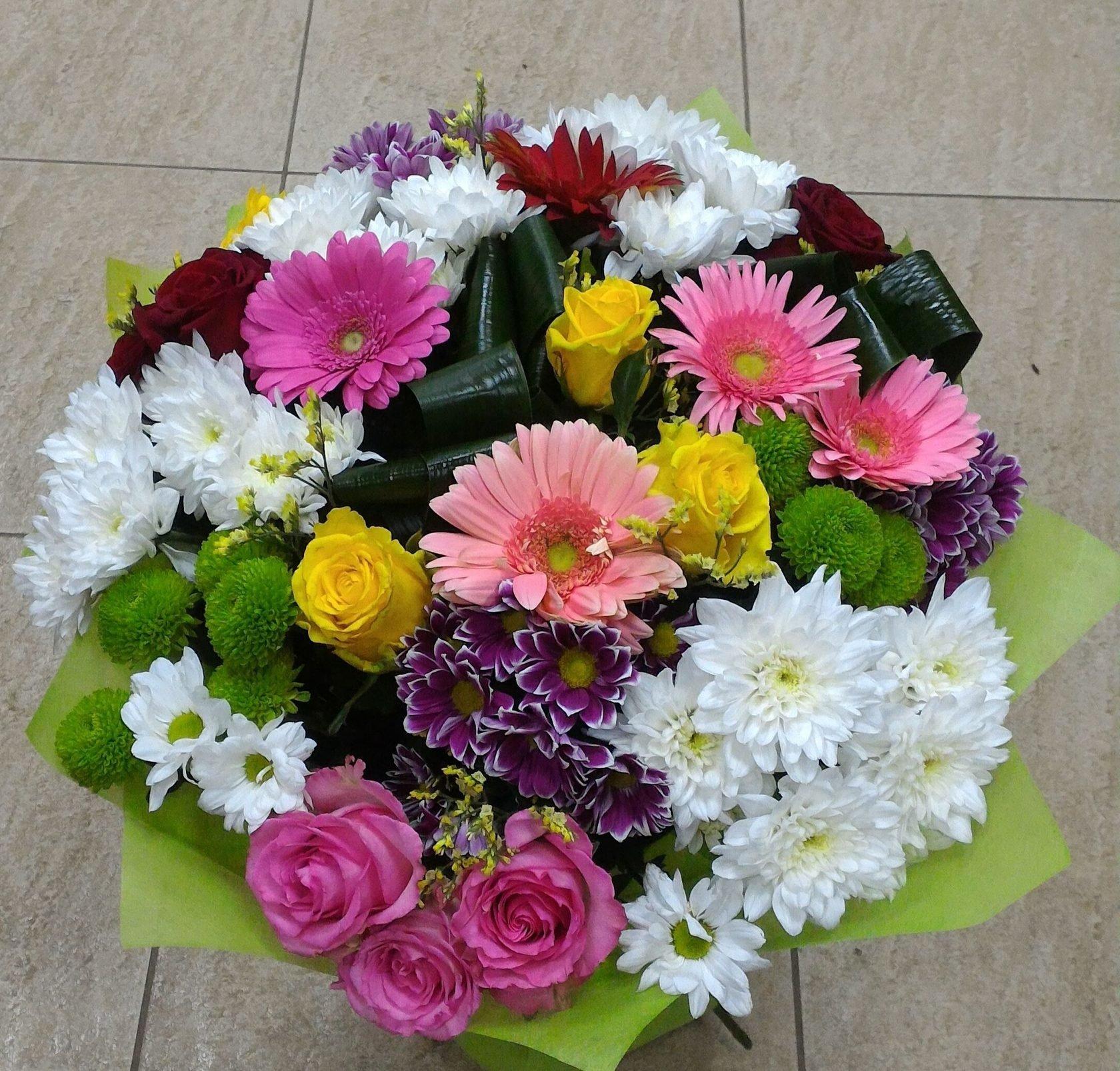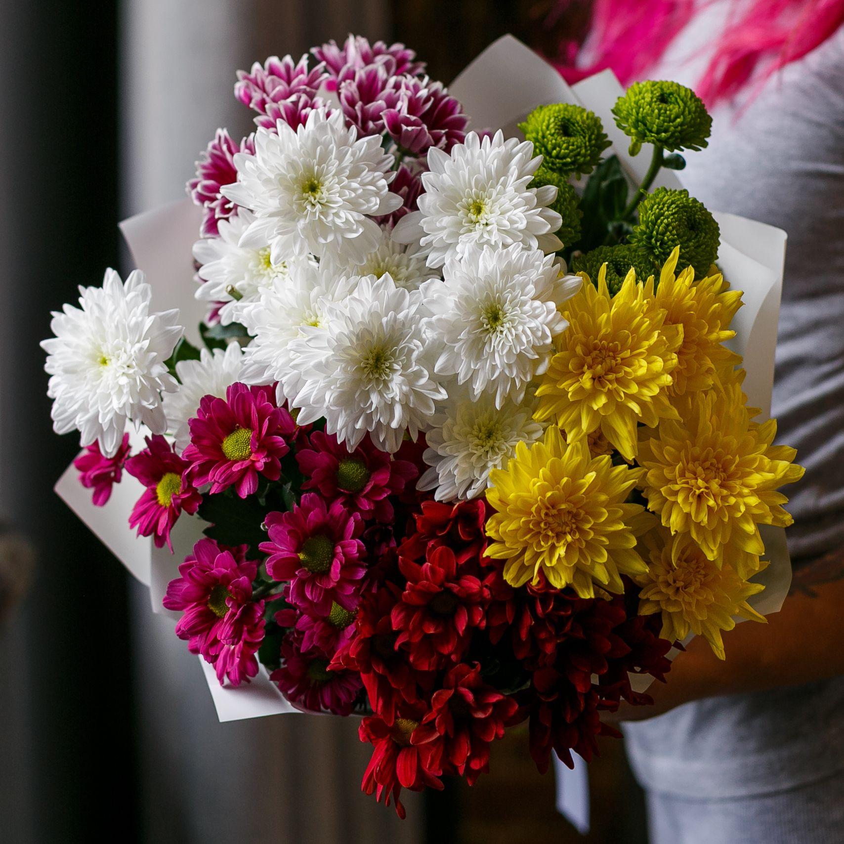 букет из цветных хризантем