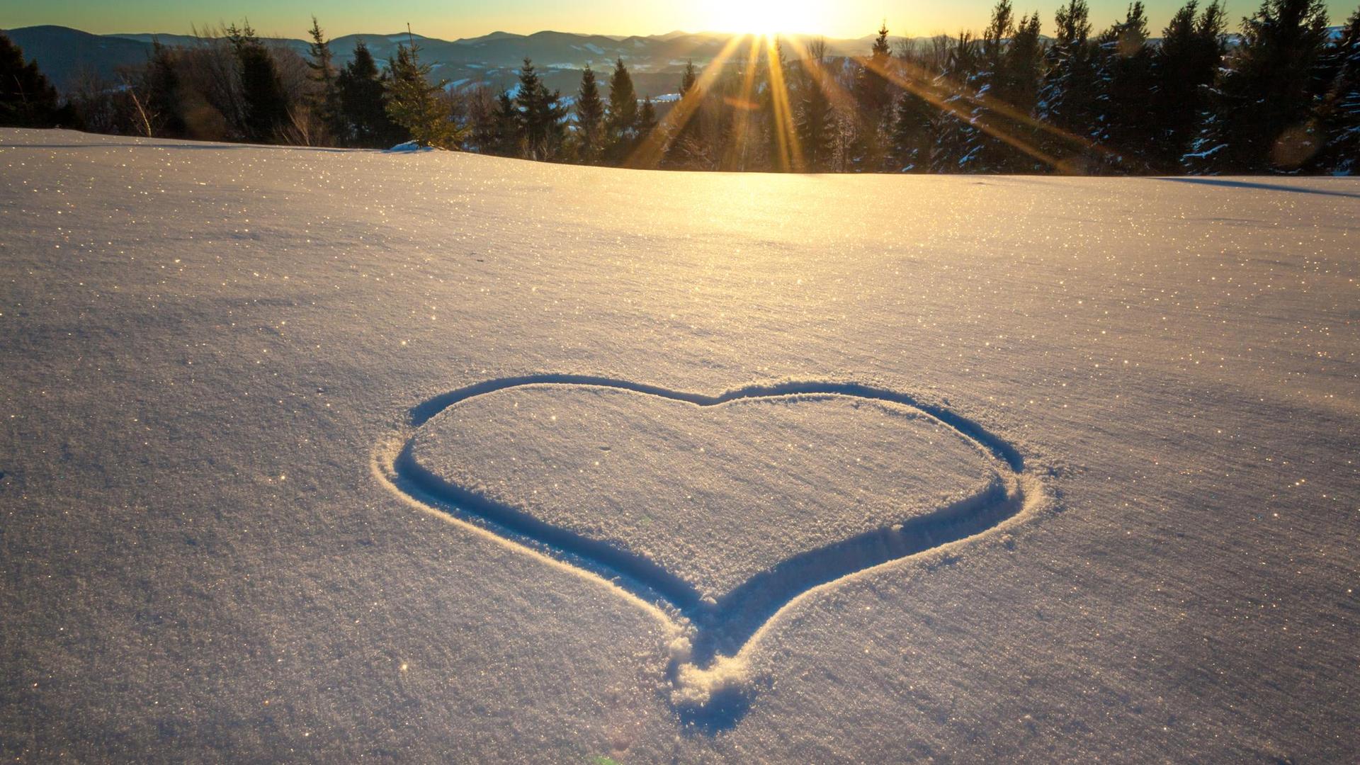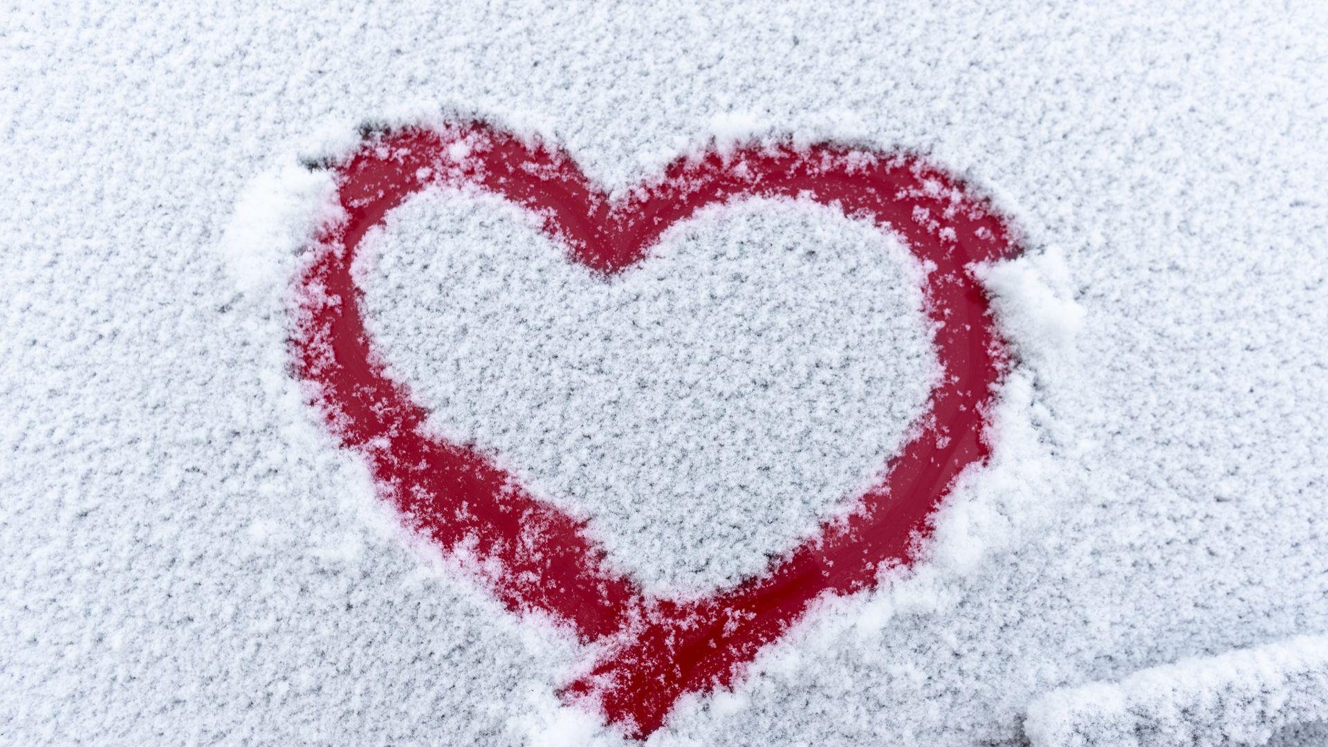 Зима с сердечком на снегу