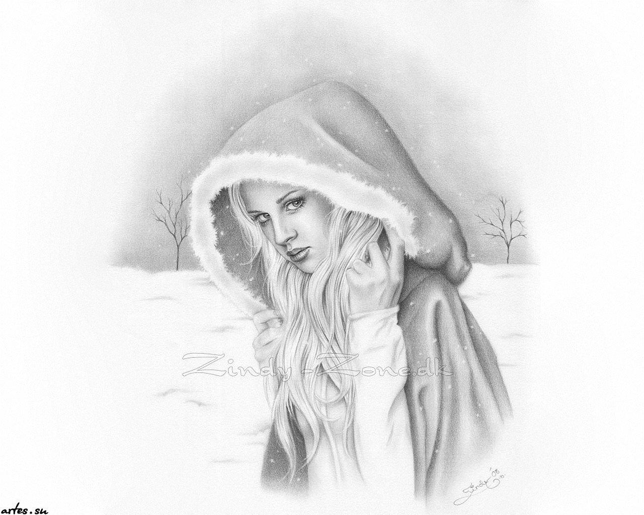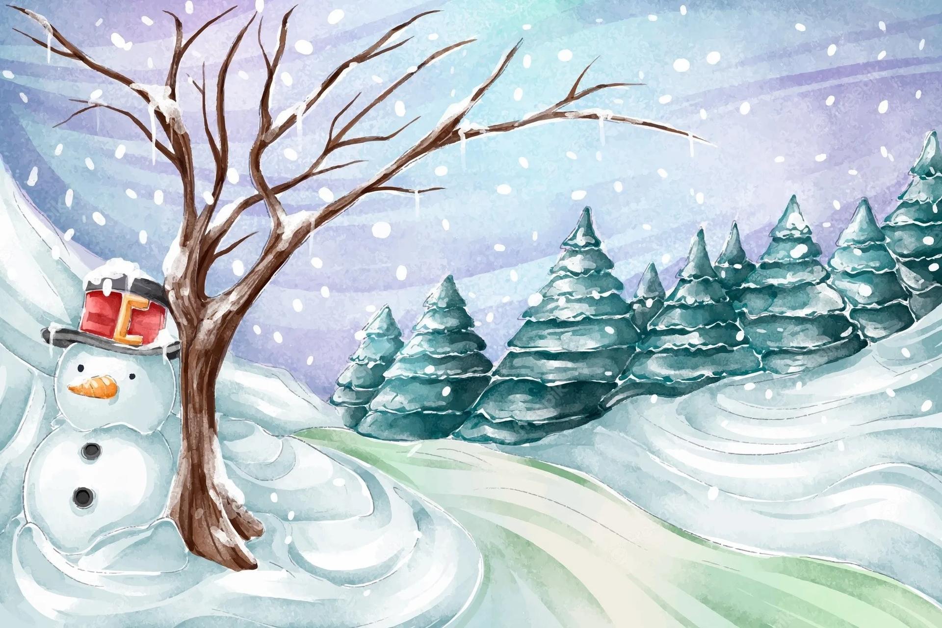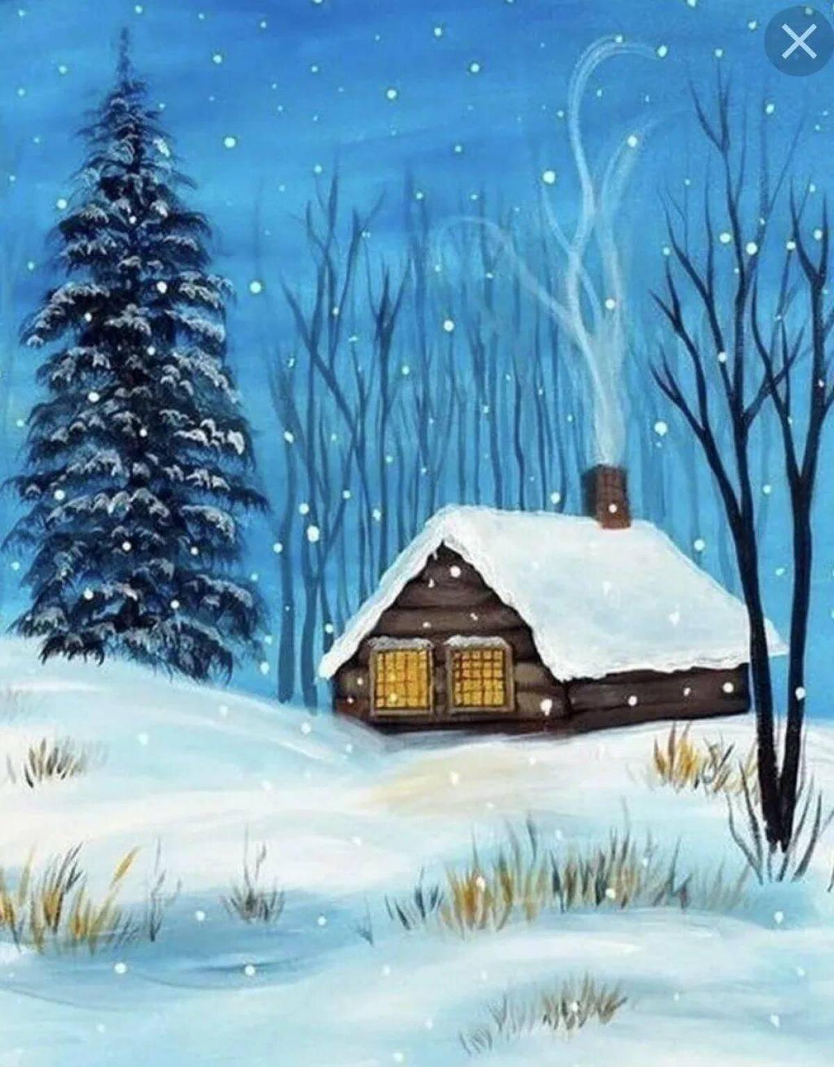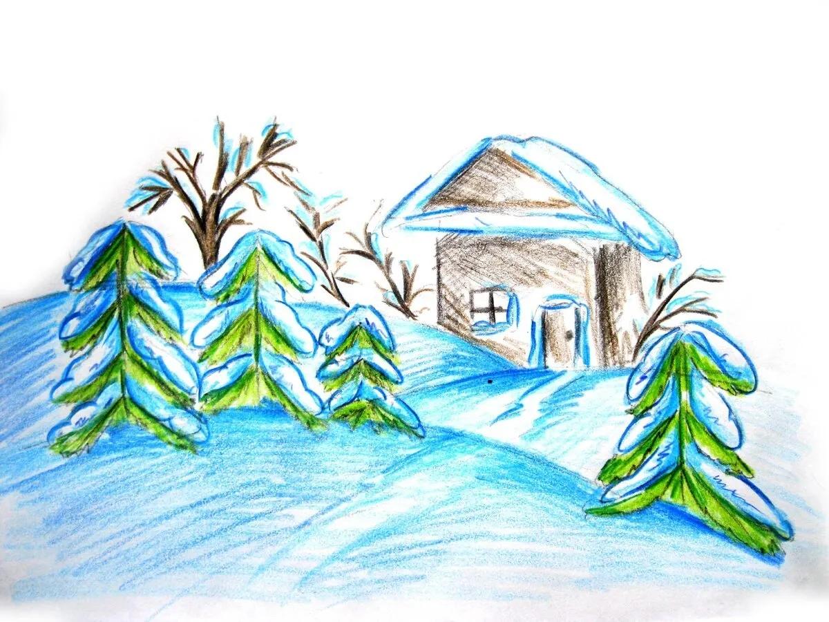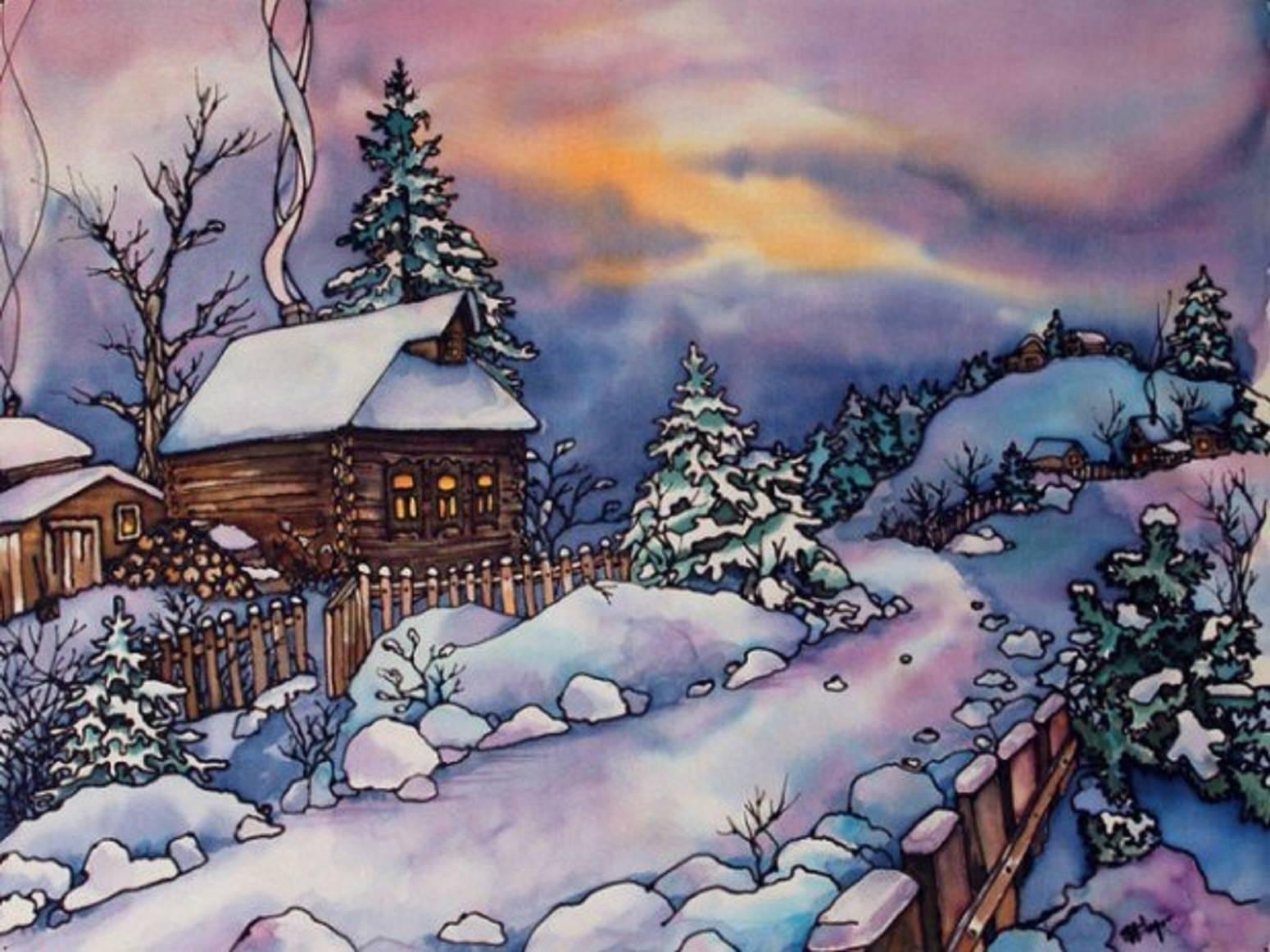 Зима рисованные