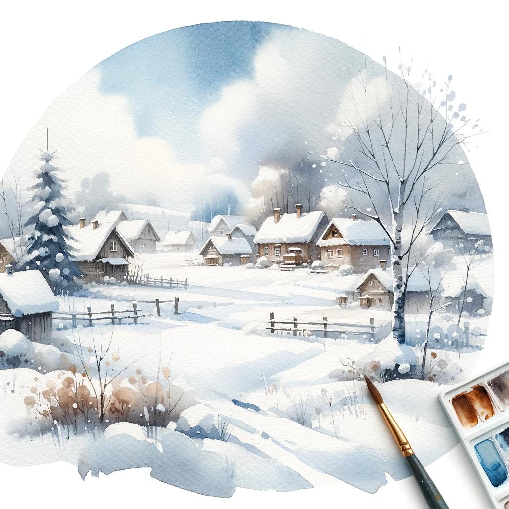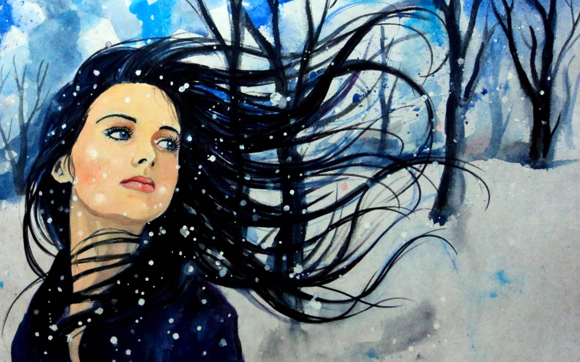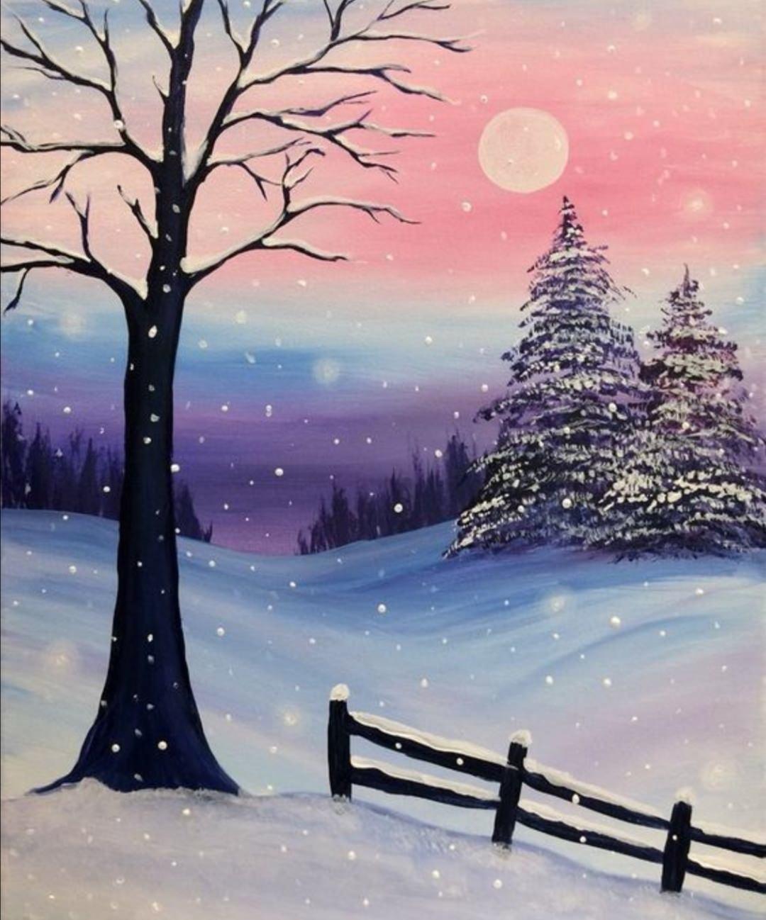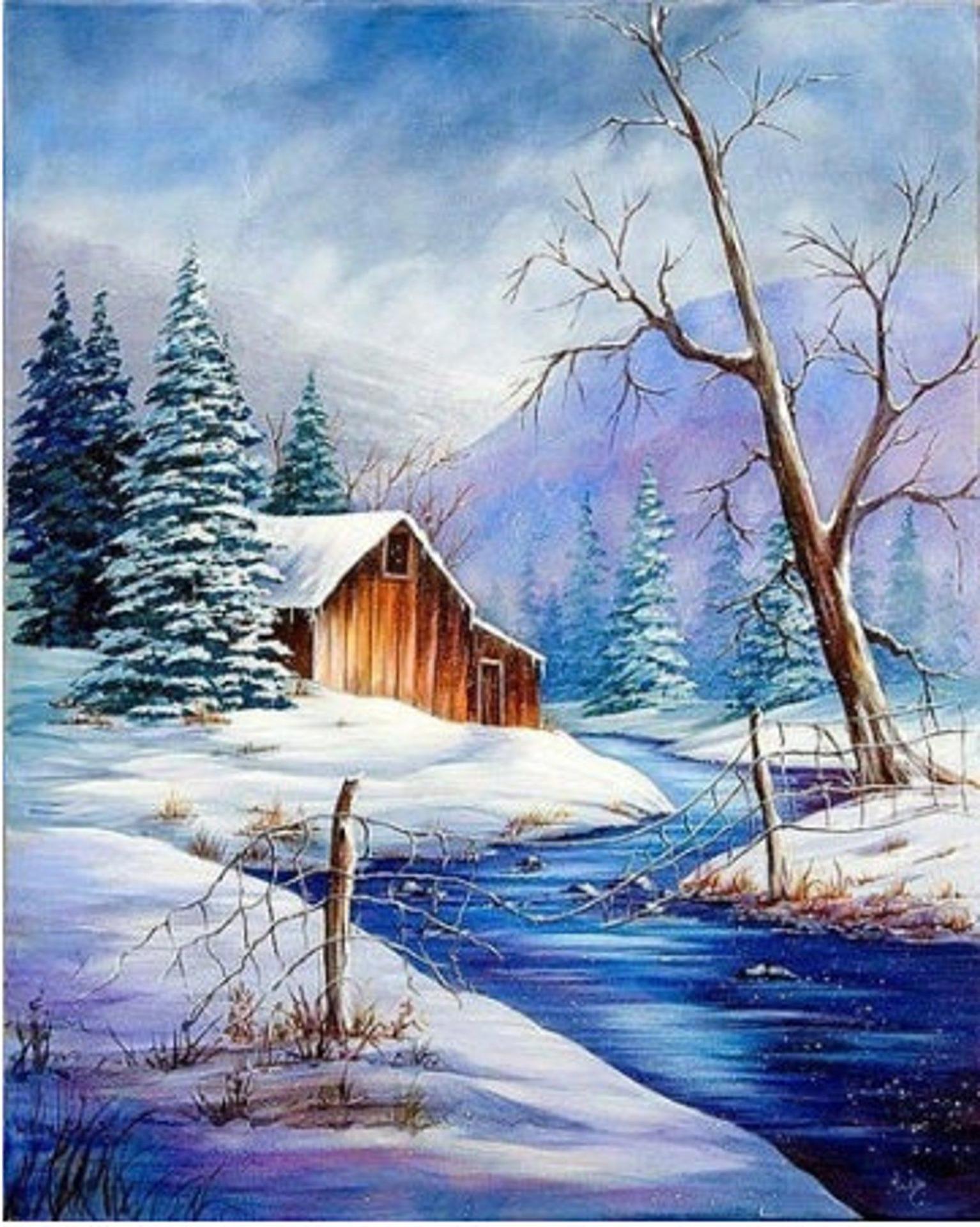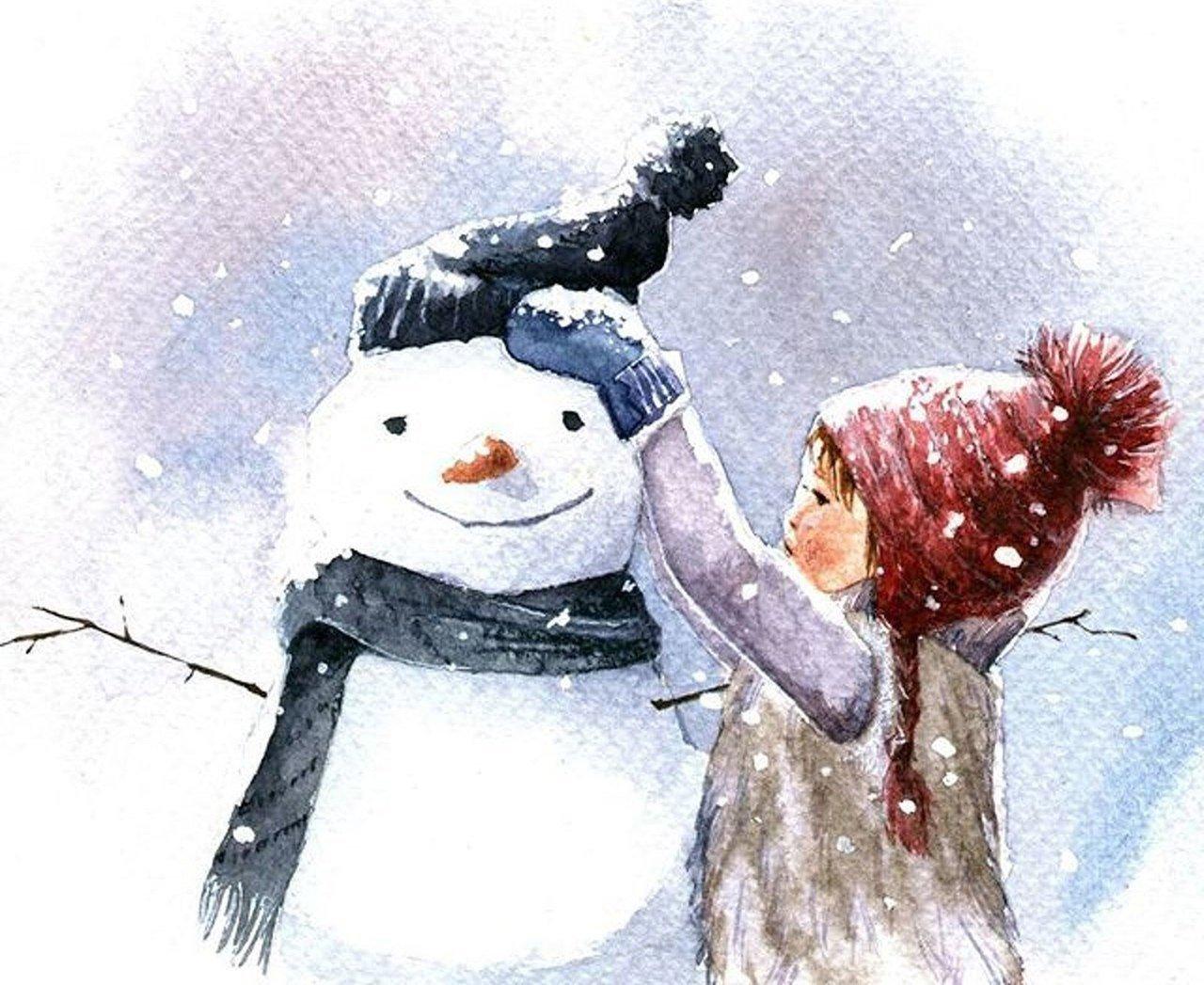 Зима рисованные
