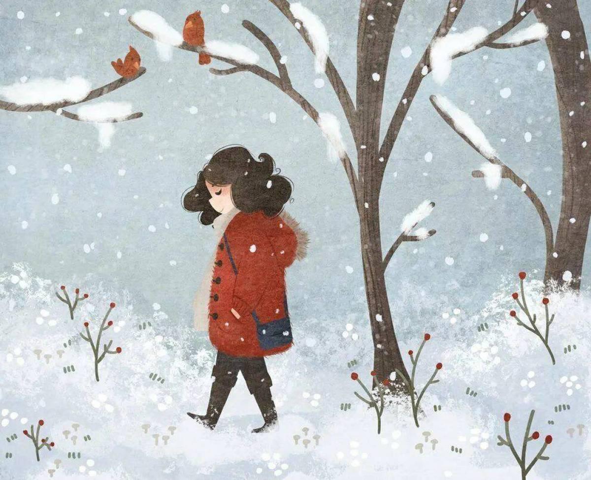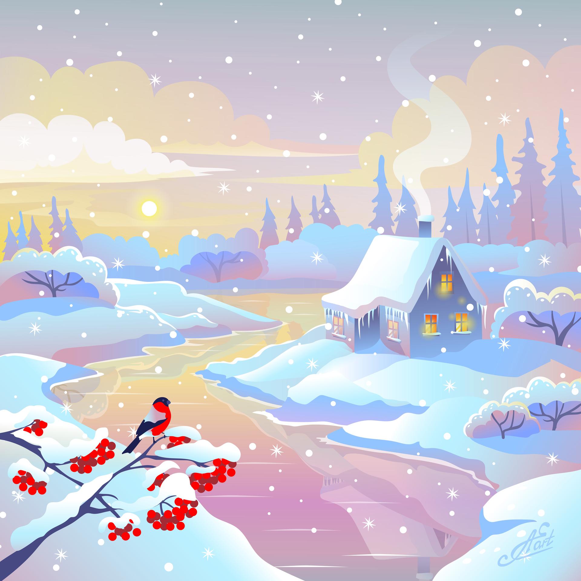 Красивые картинки Зима рисованные с надписями