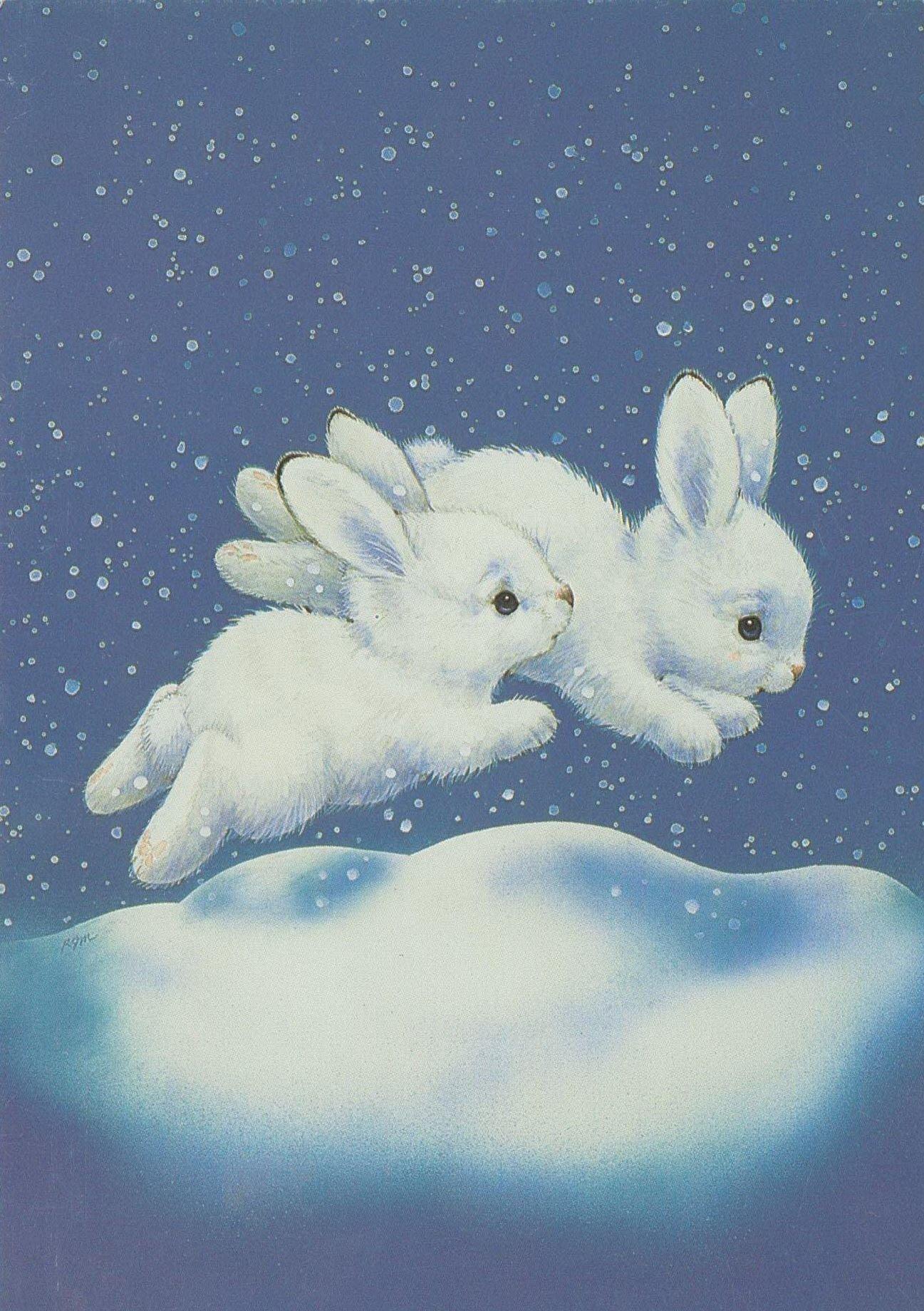 Красивые картинки Зима и зайцы с надписями