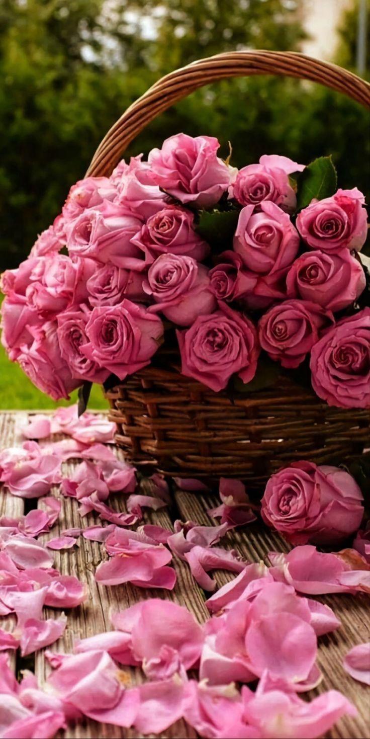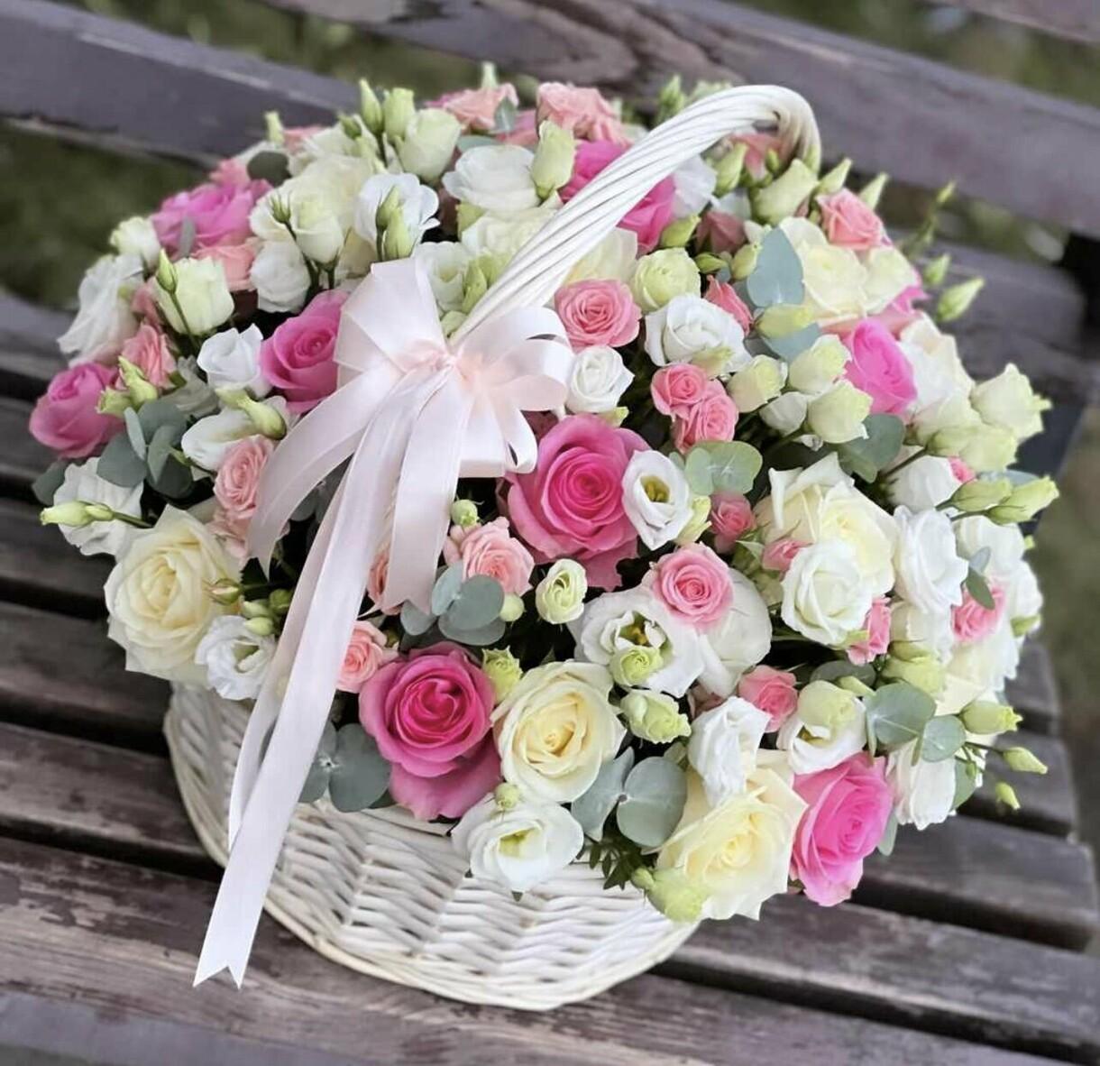 розовые розы в корзине
