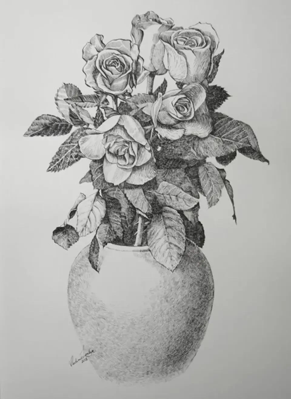 ваза с цветами карандашом