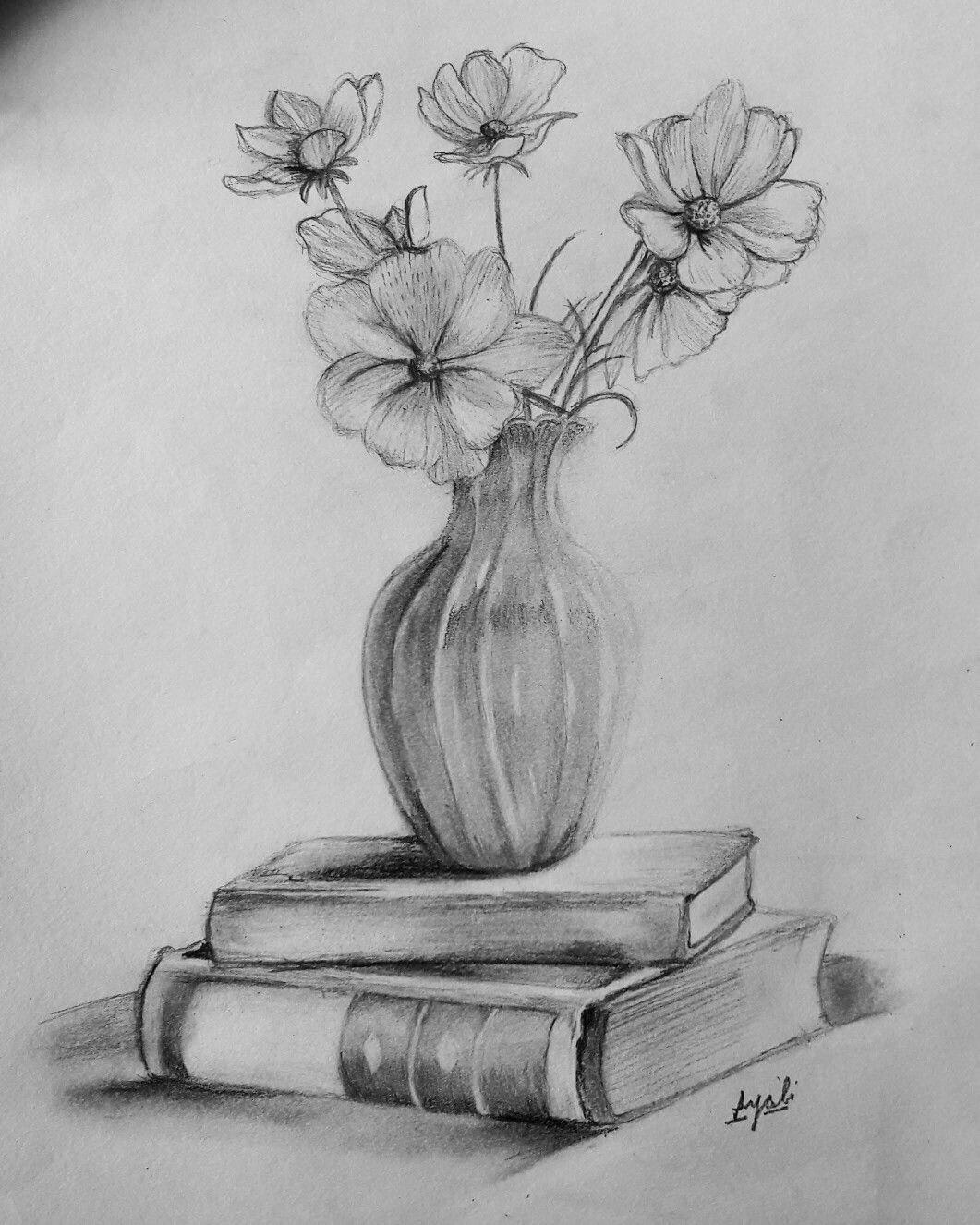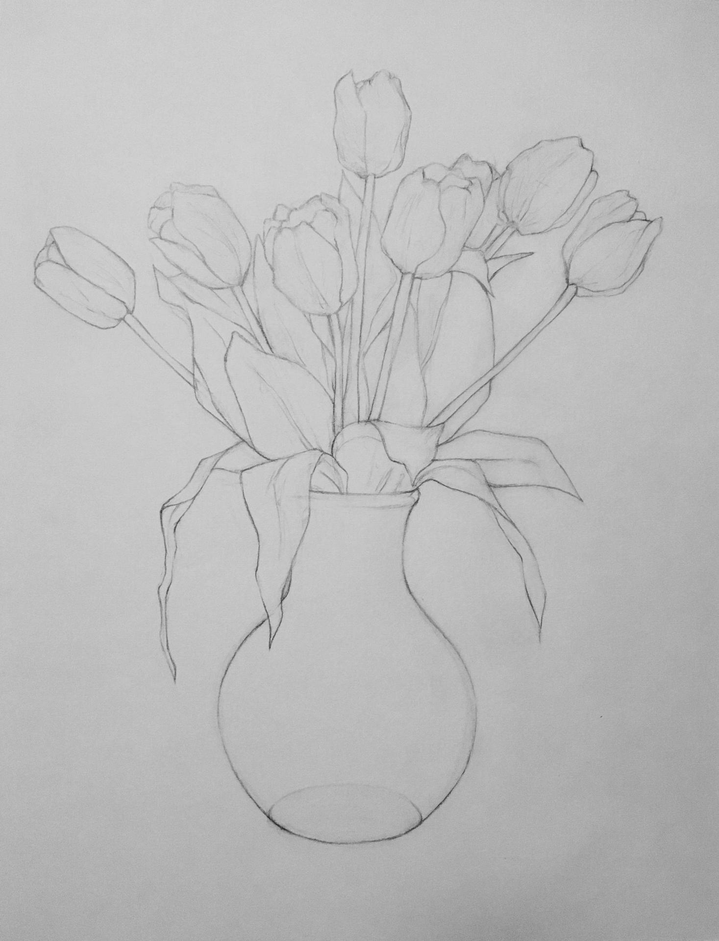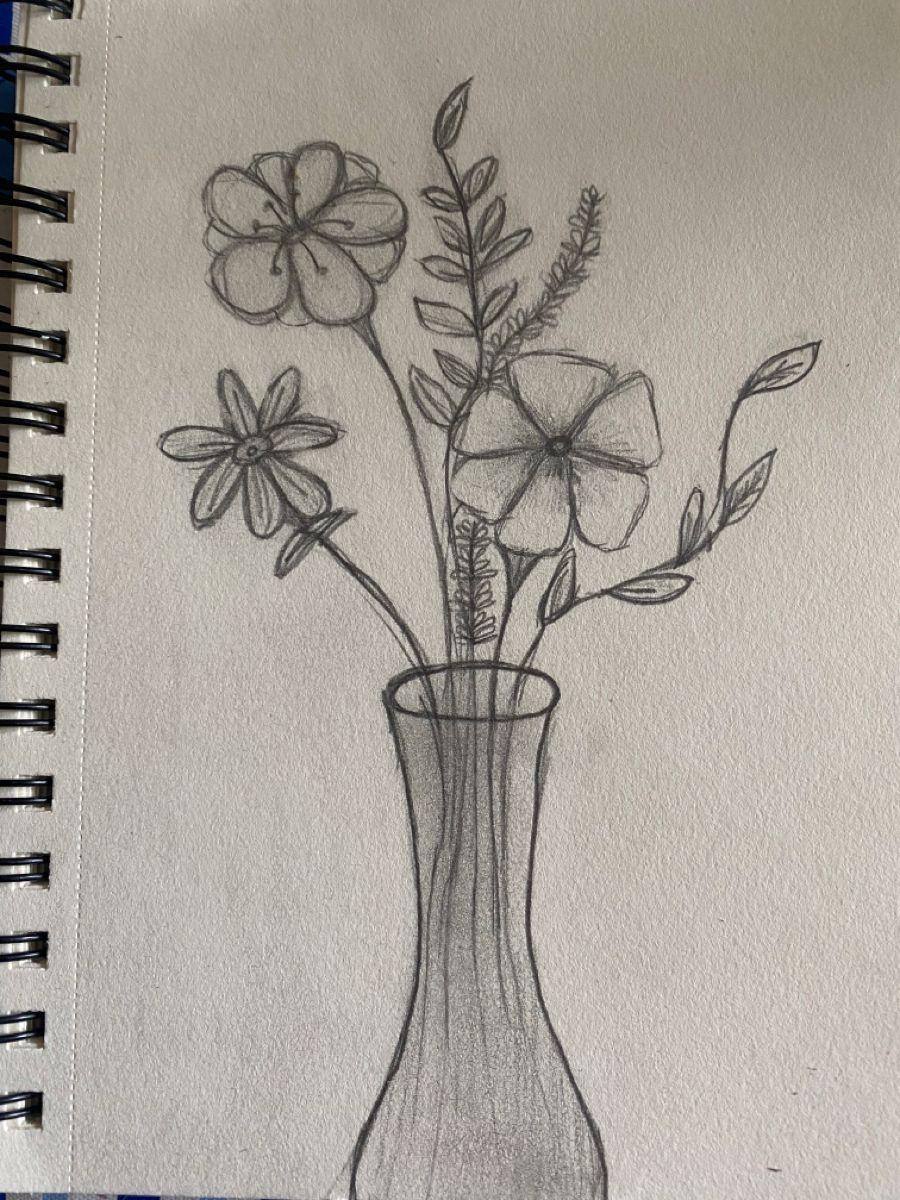 цветы в вазе карандашом
