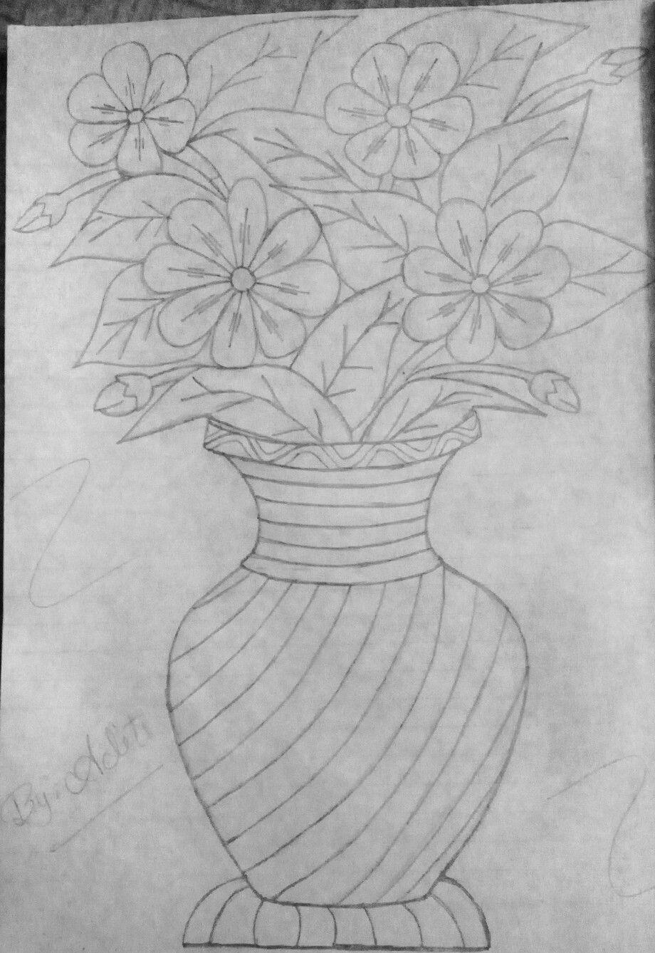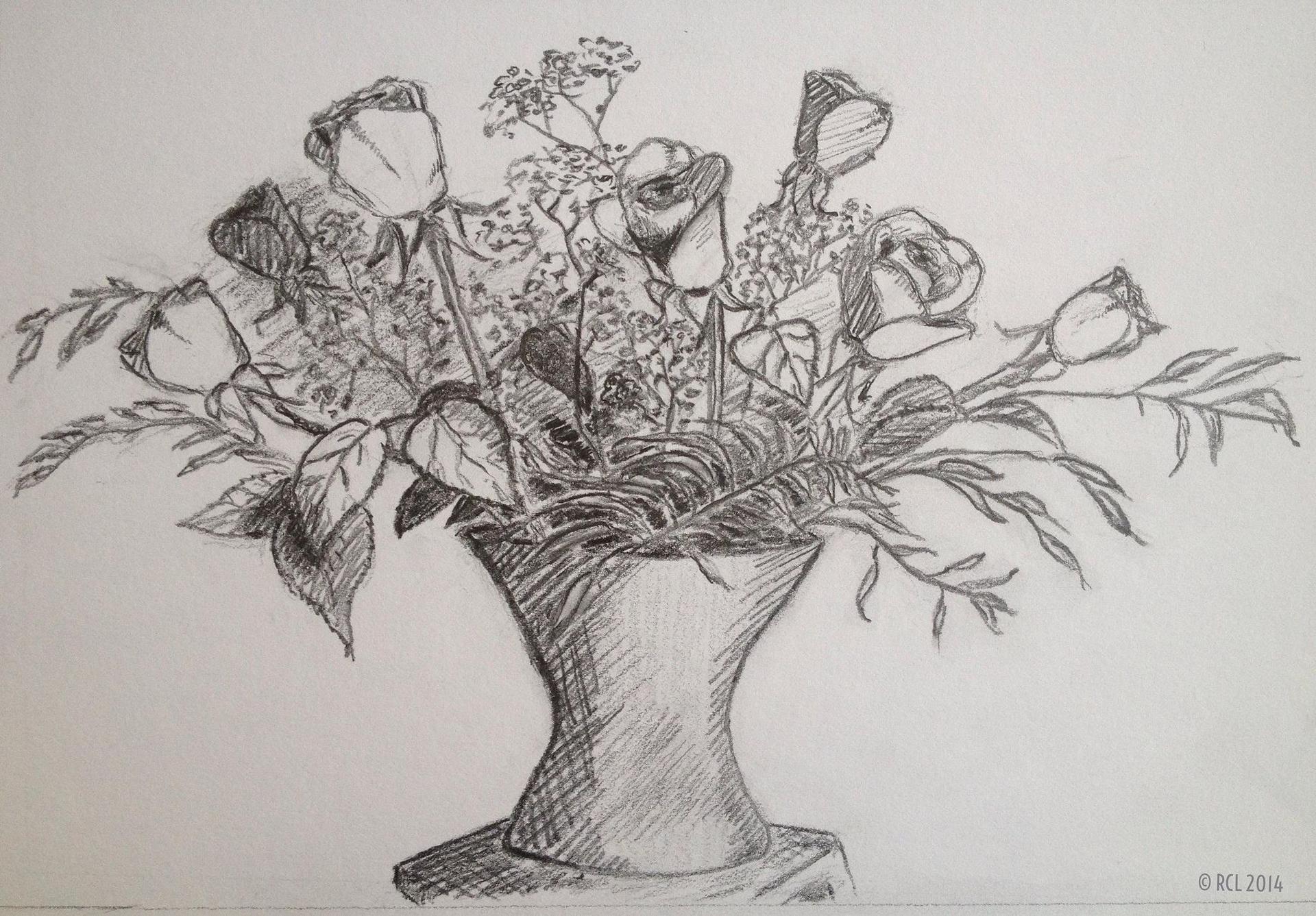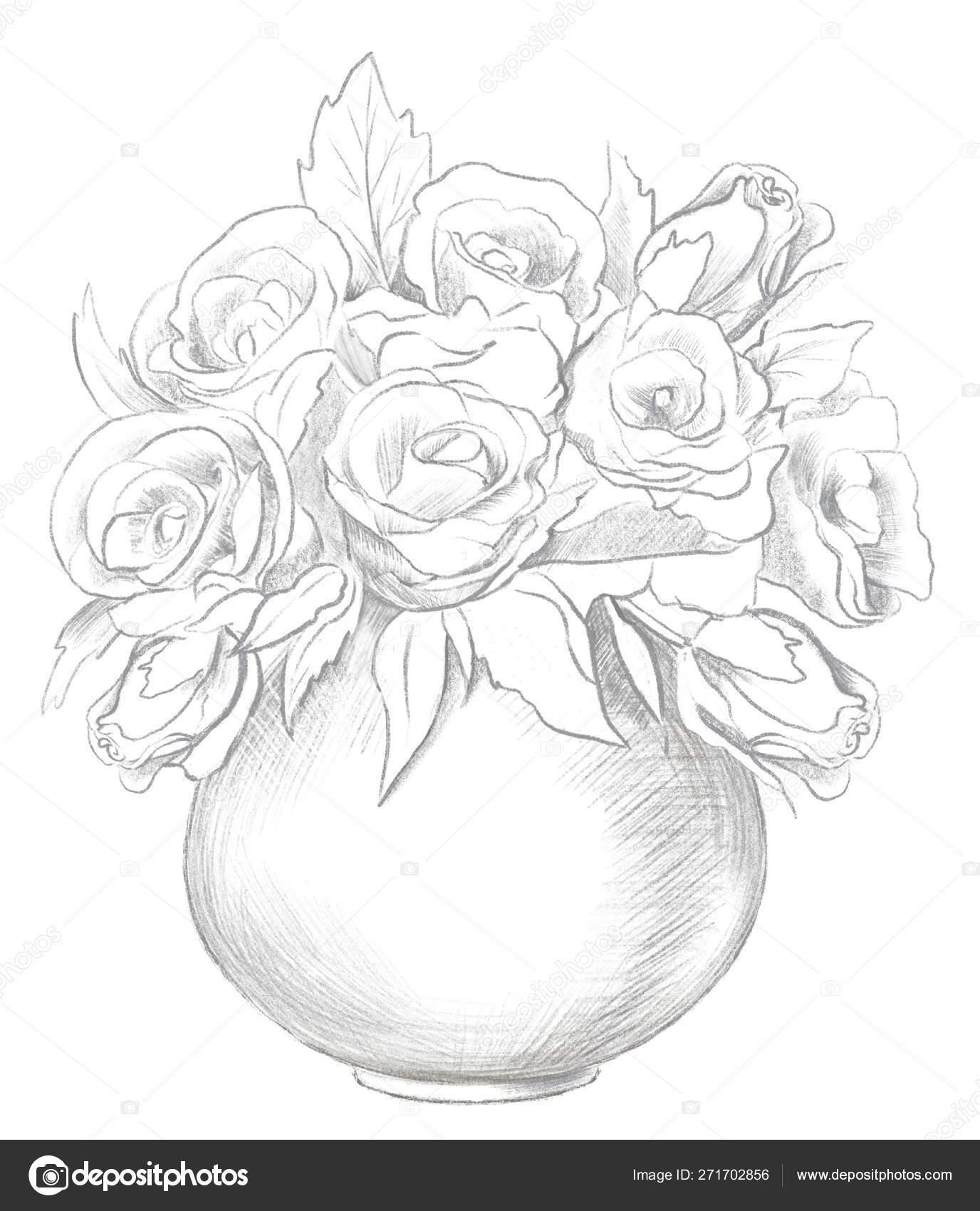 цветы в вазе карандашом