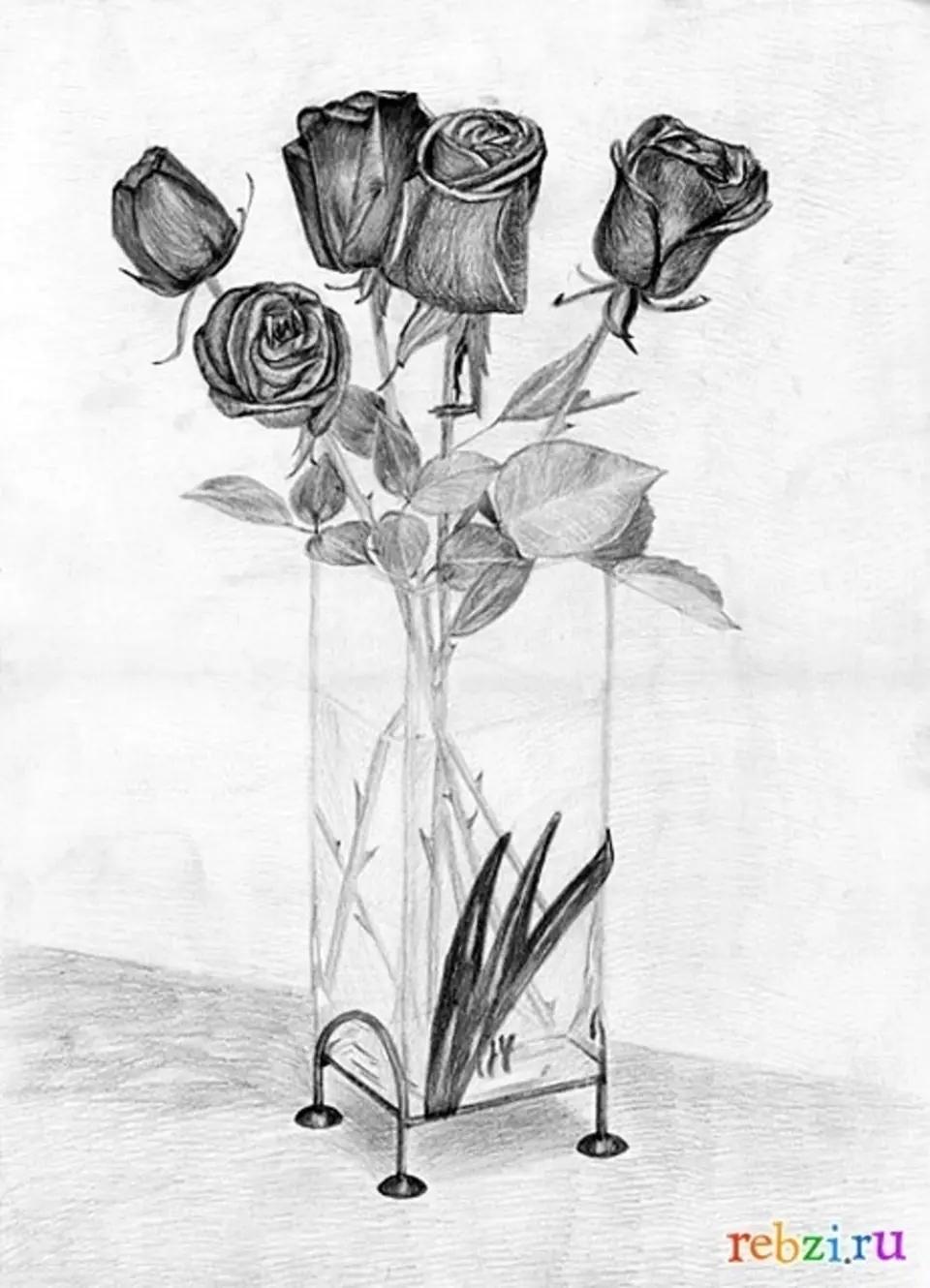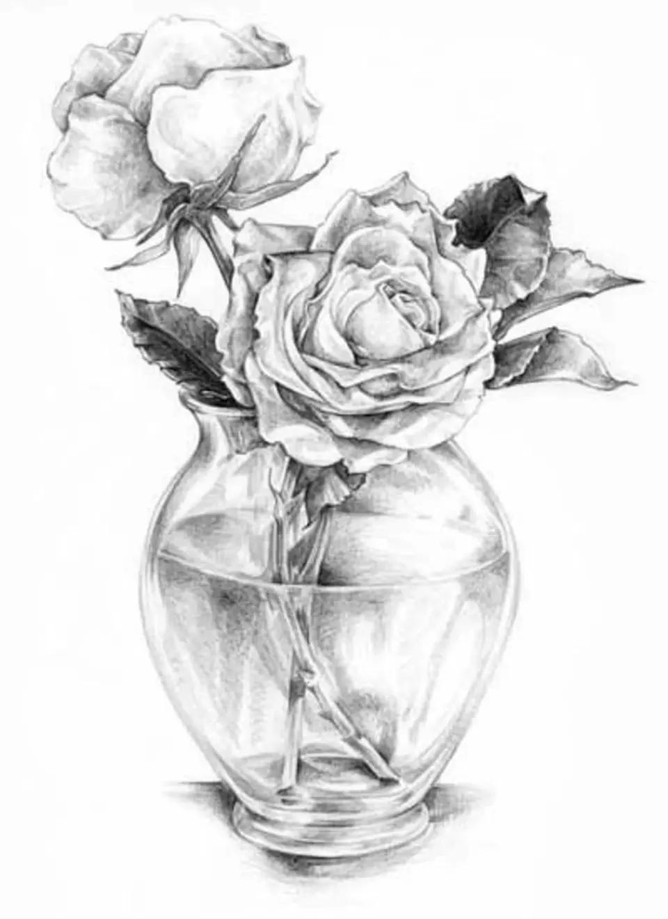 роза в вазе рисунок
