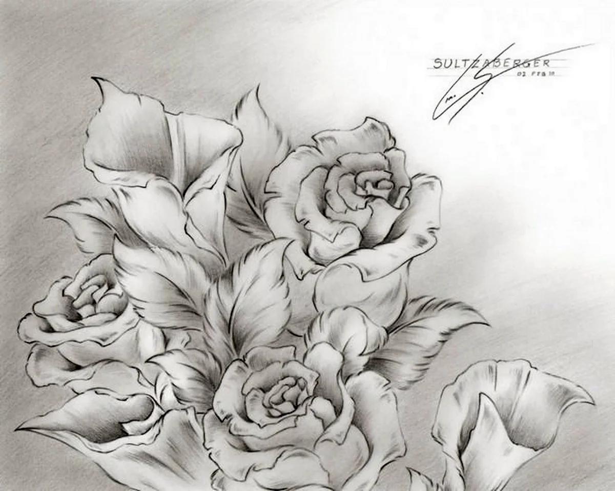 букет роз карандашом
