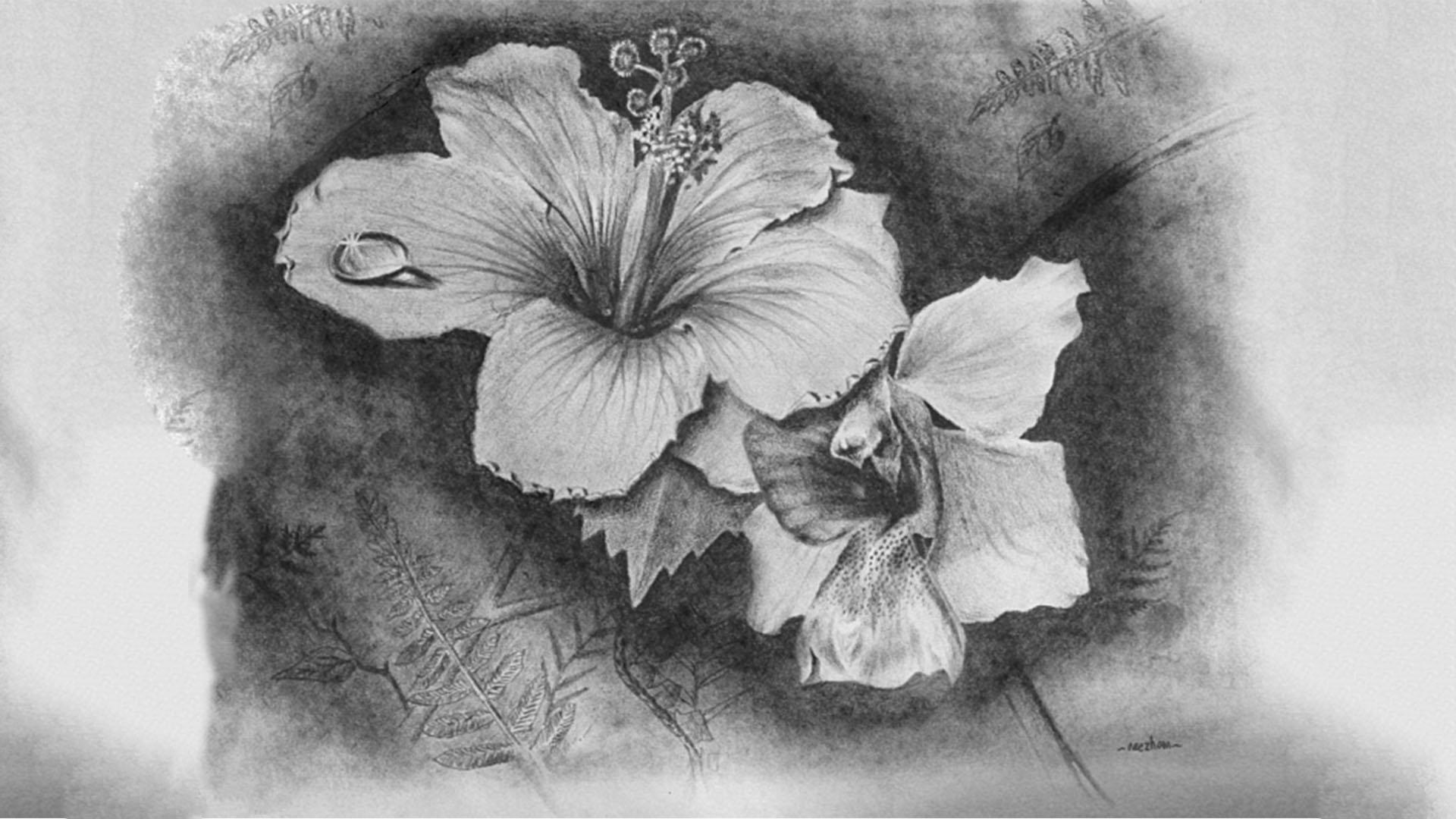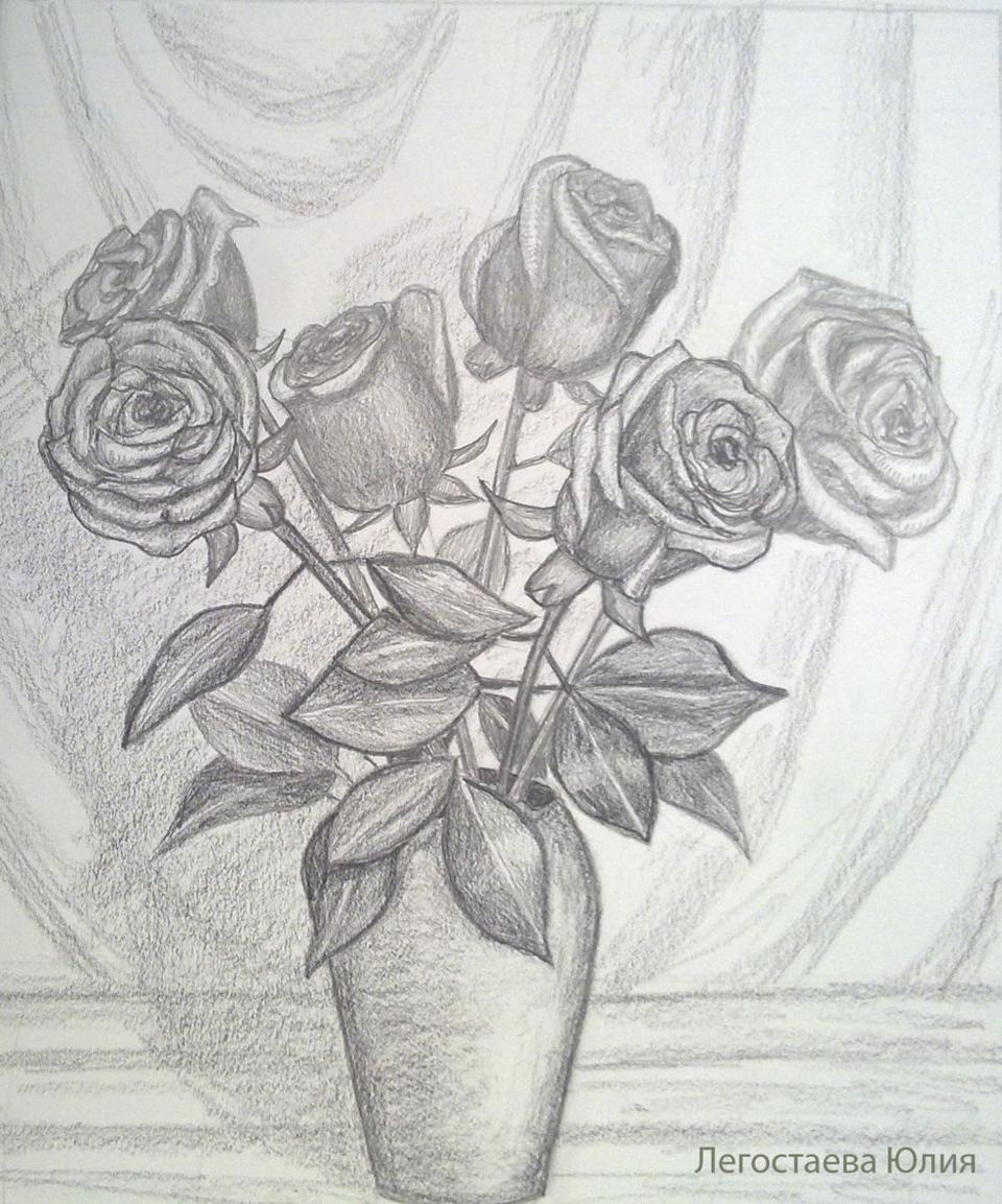 натюрморт с цветами карандашом