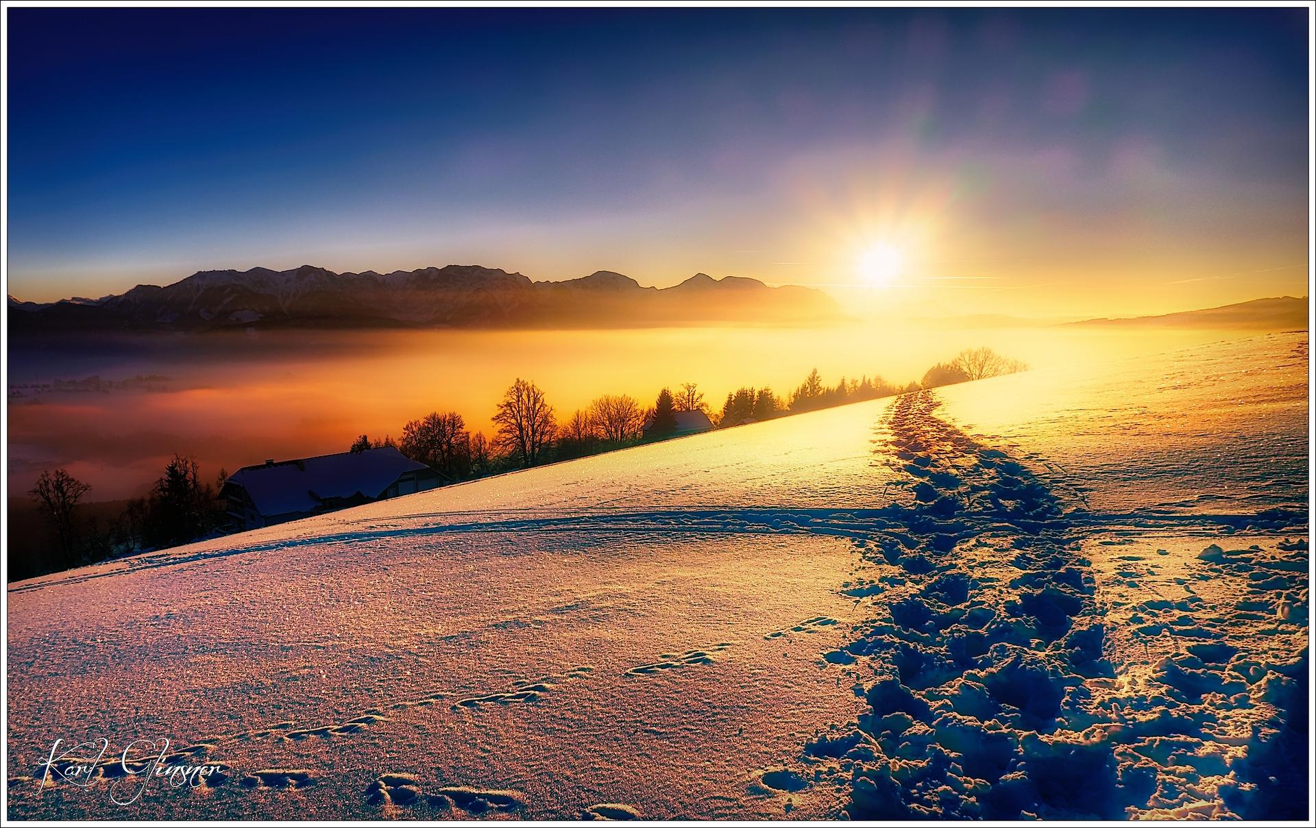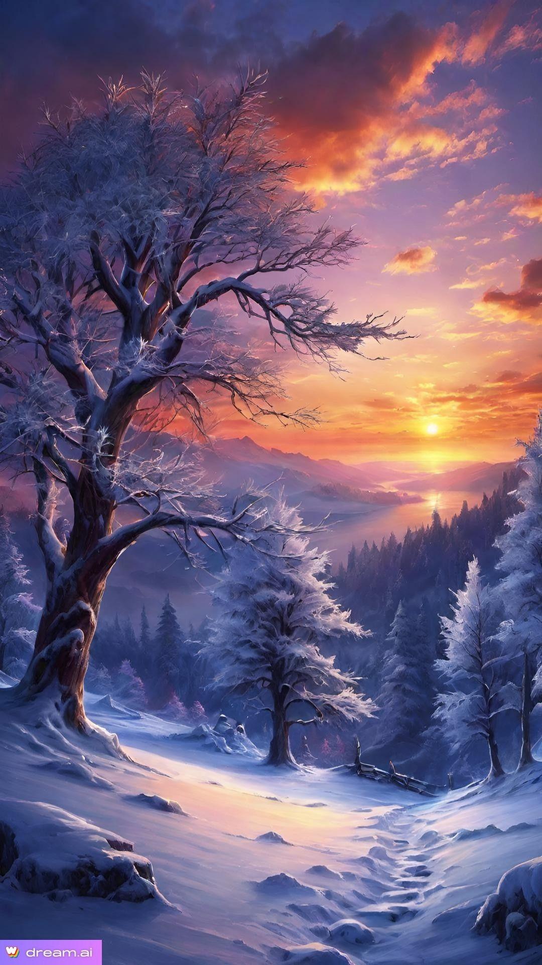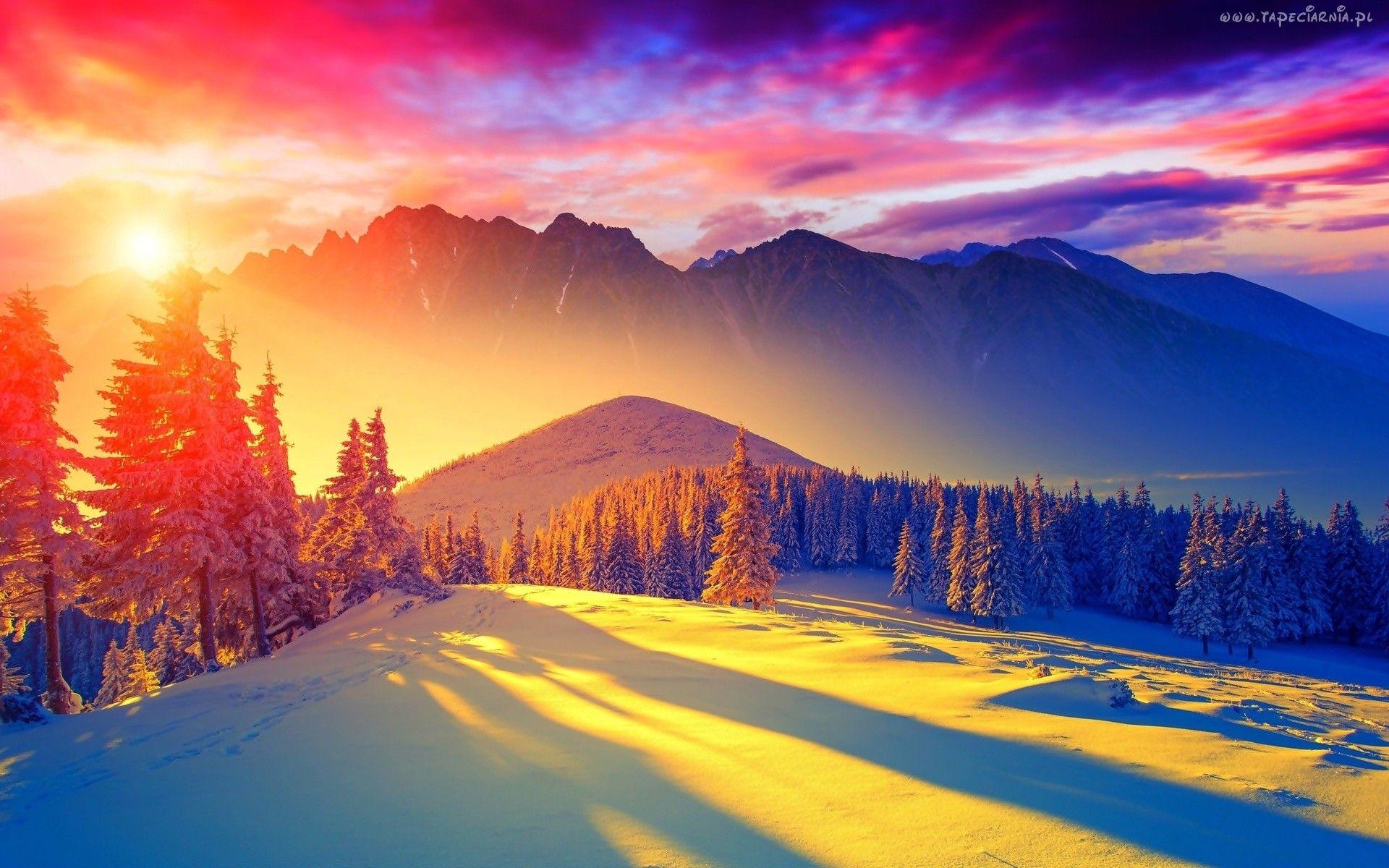 Красивые картинки Зима восход с надписями