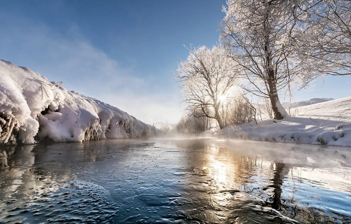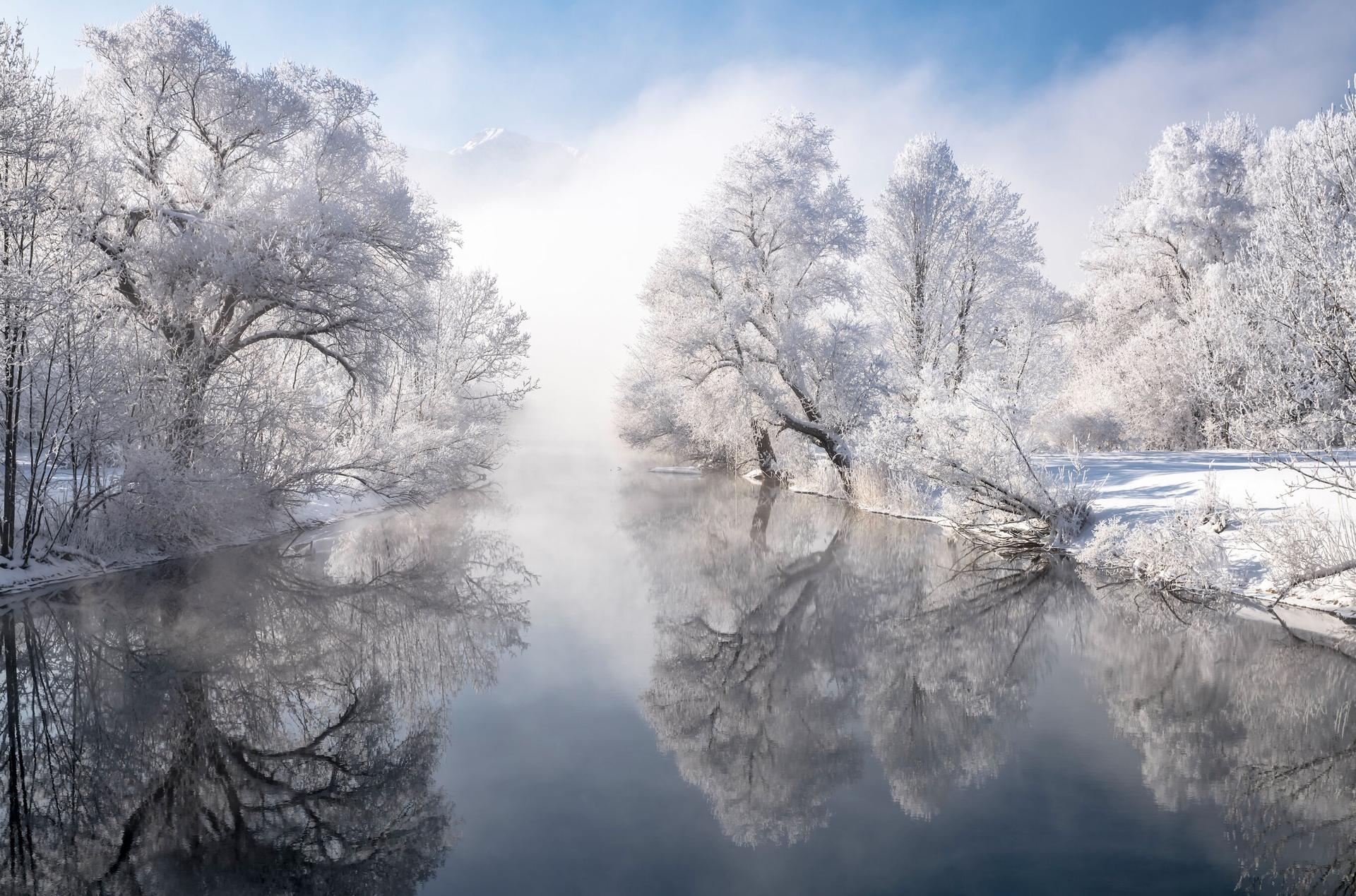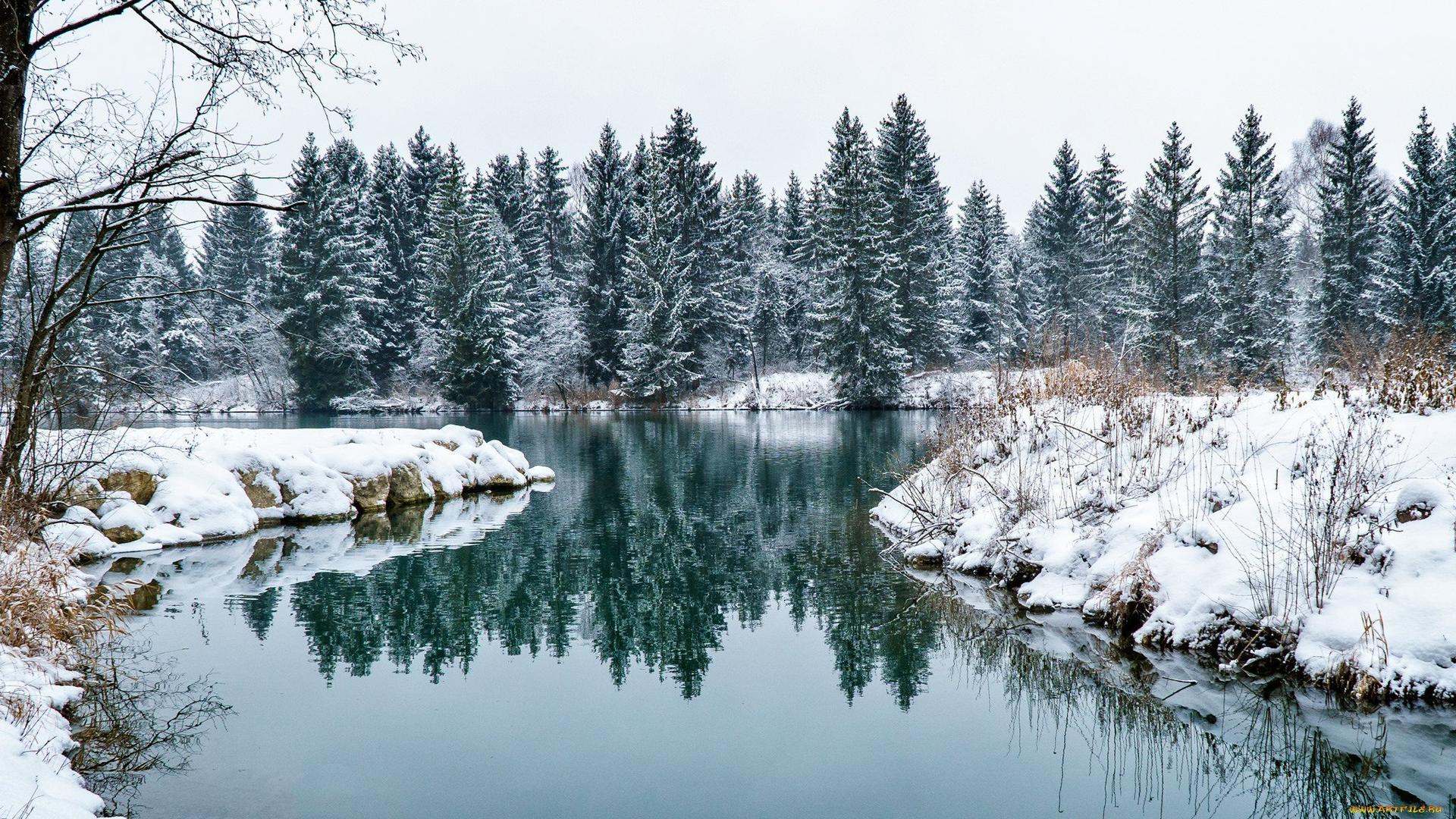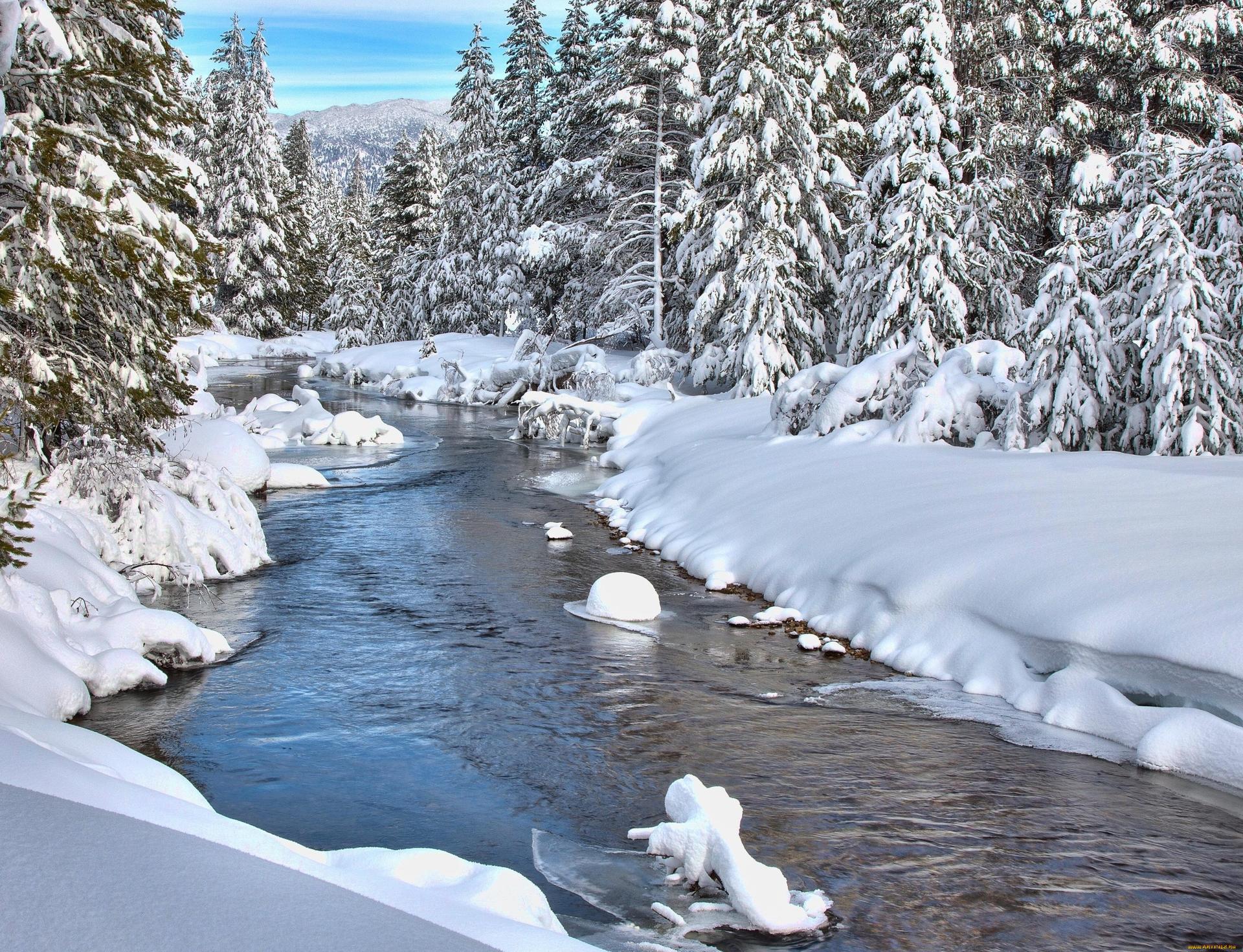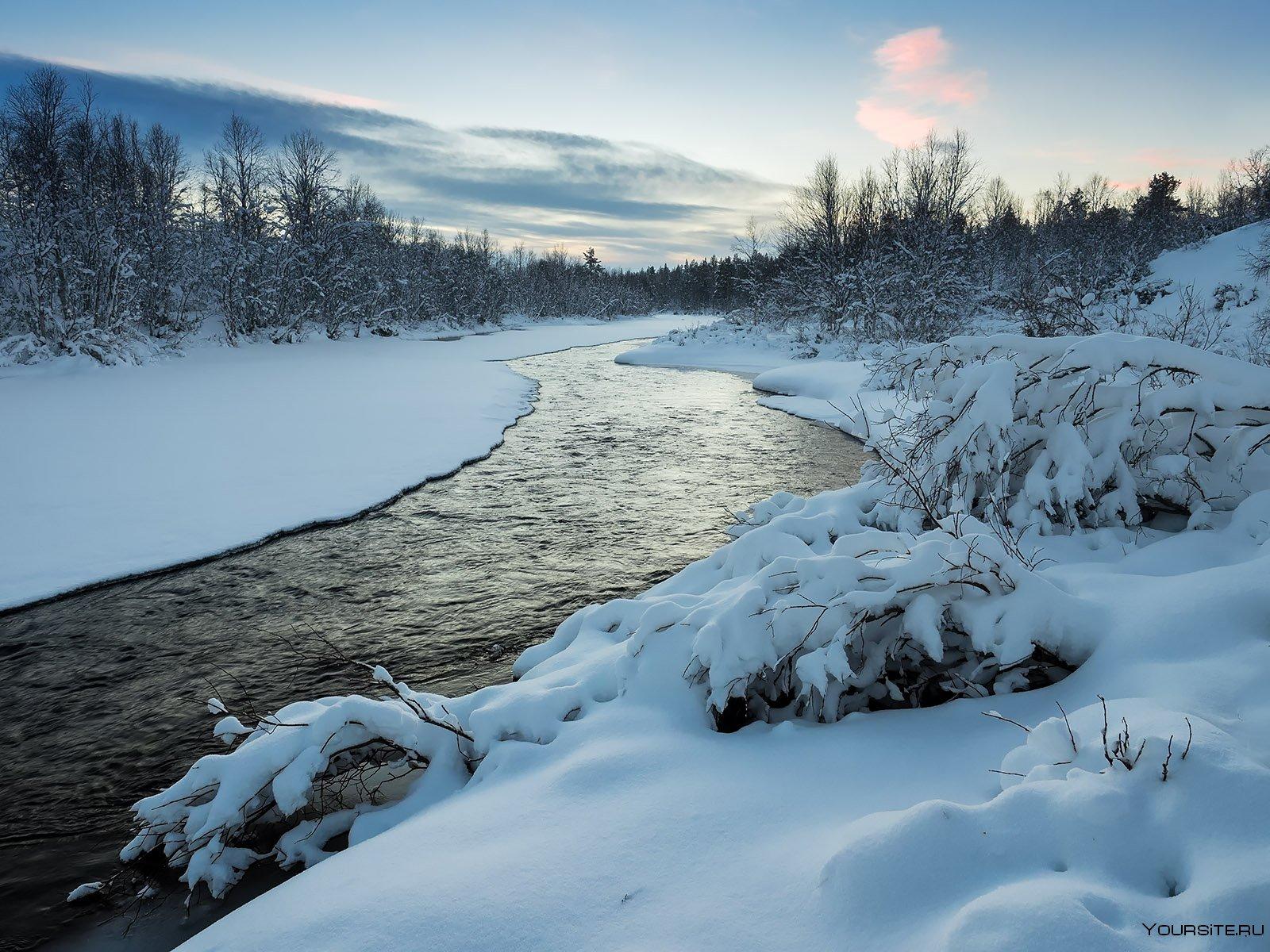 Красивые картинки Зима река с надписями