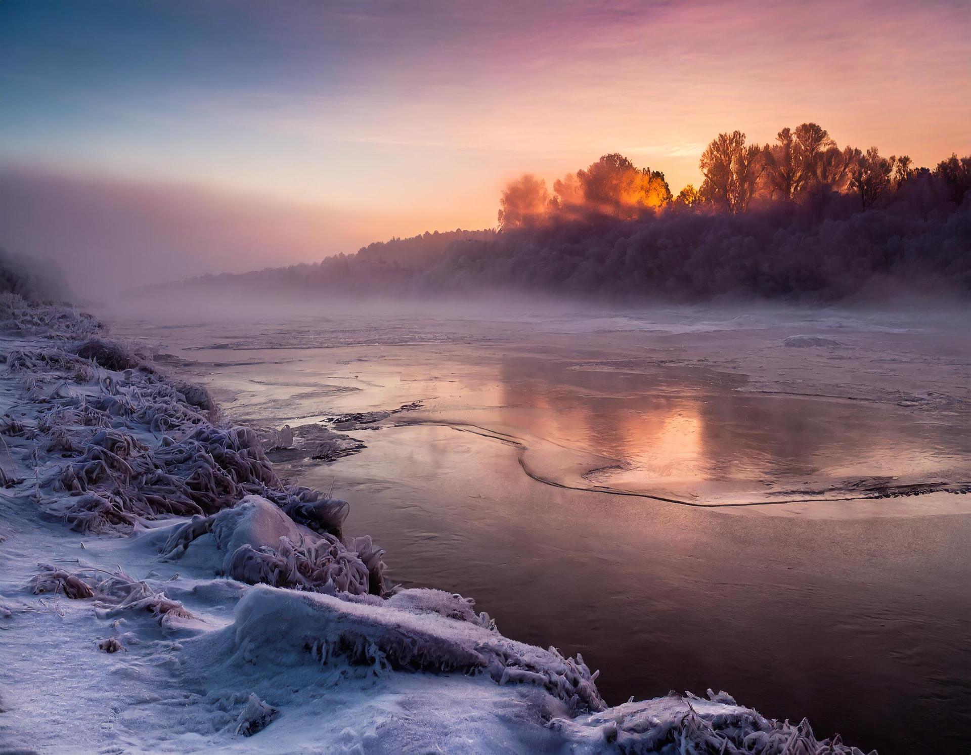 Зима река