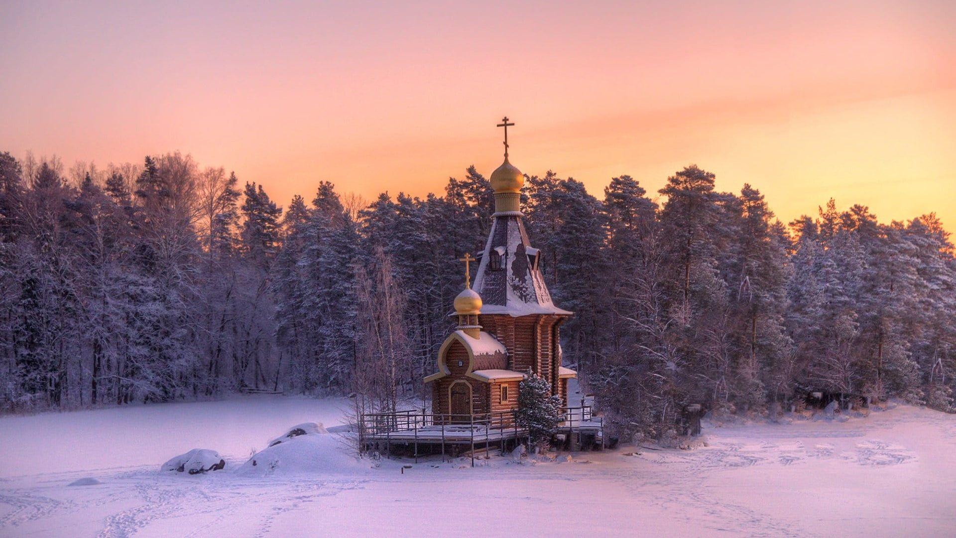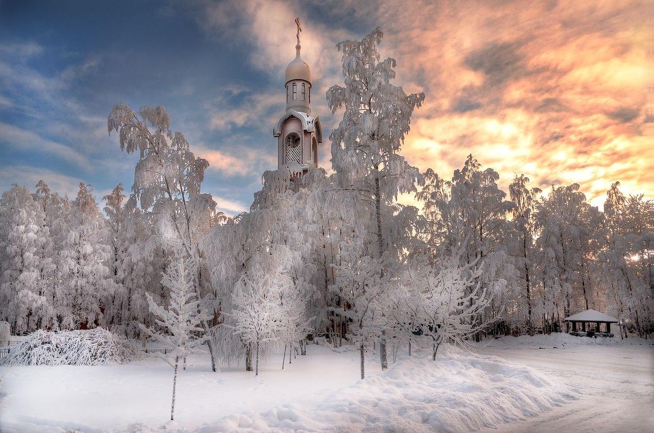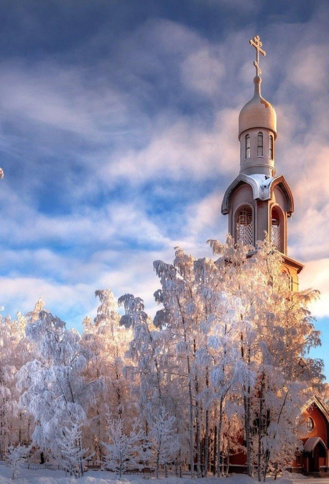 Красивые картинки Зима и храм с надписями