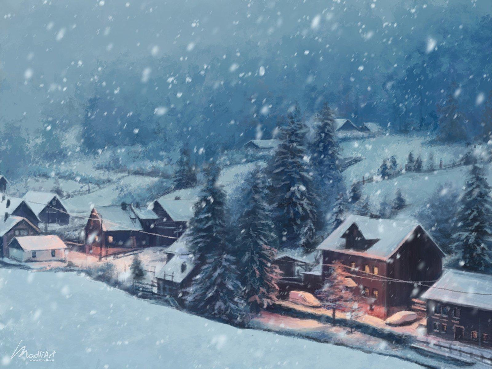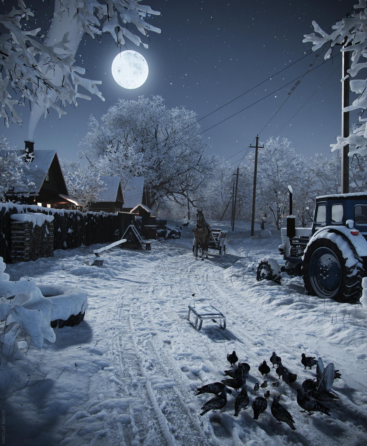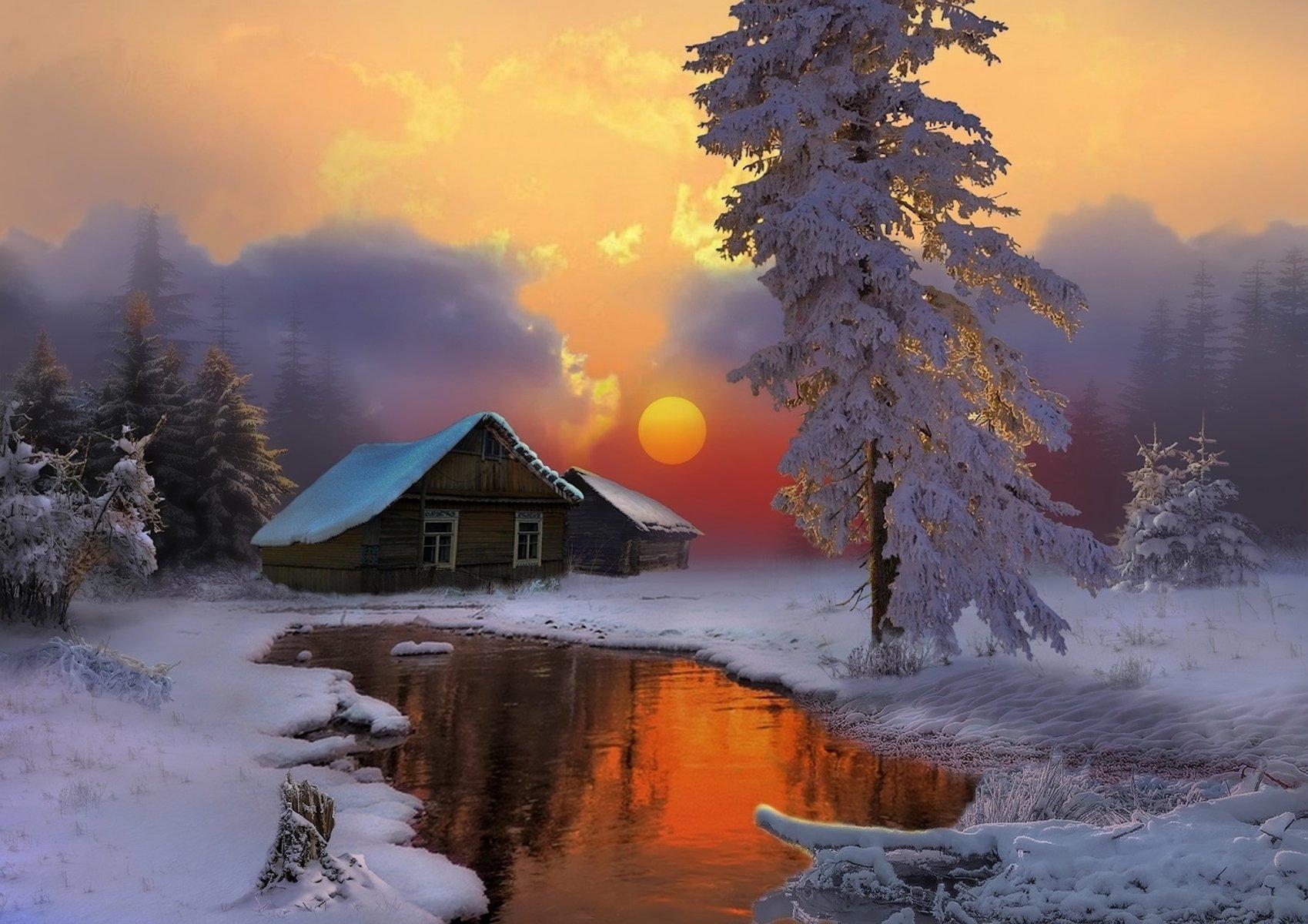 Зима деревня пейзажи