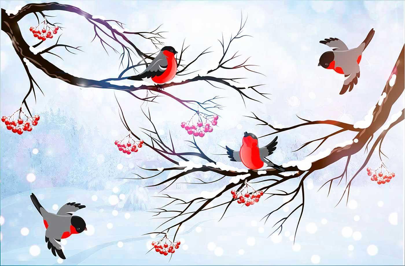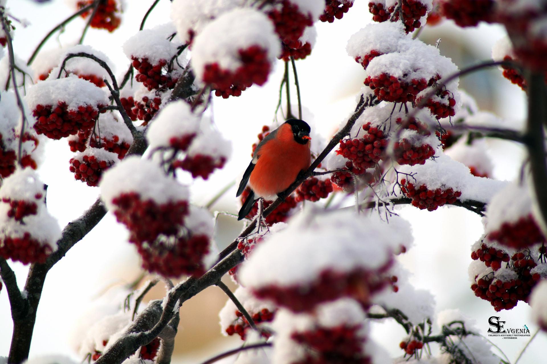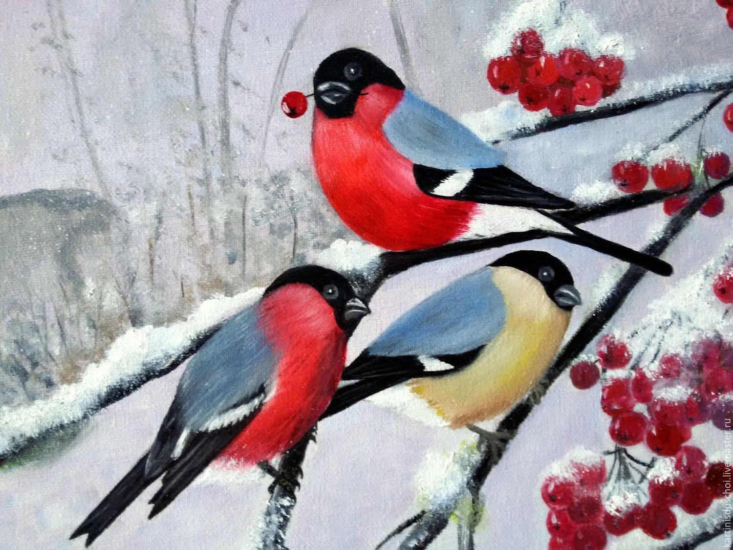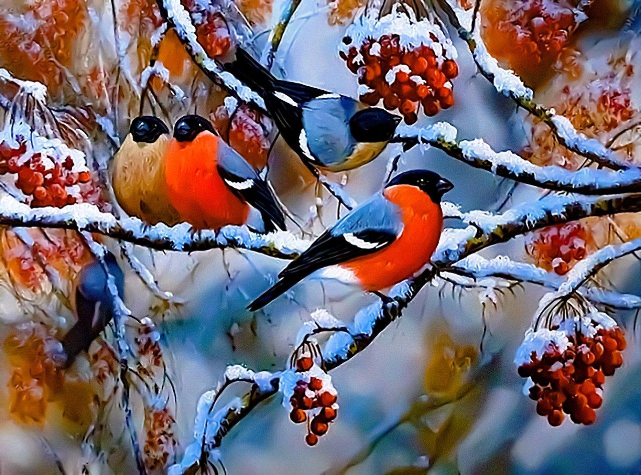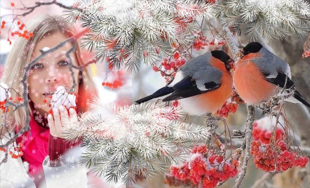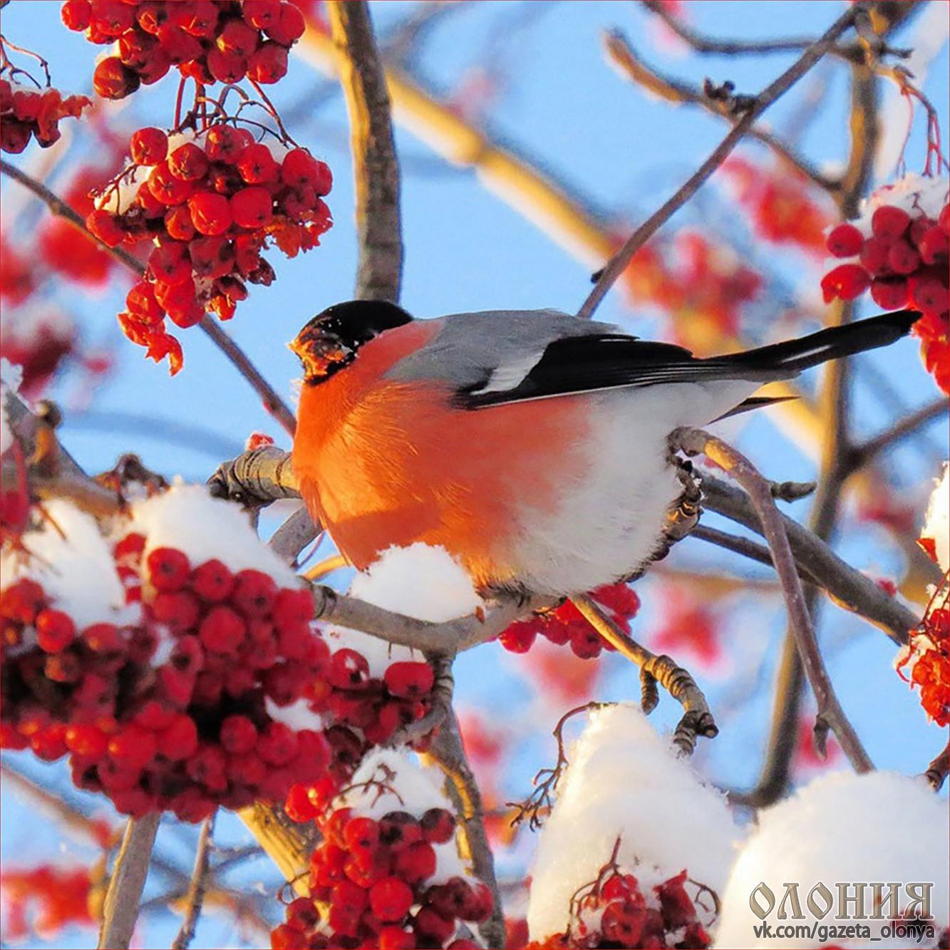 Красивые картинки Зима рябина снегири с надписями
