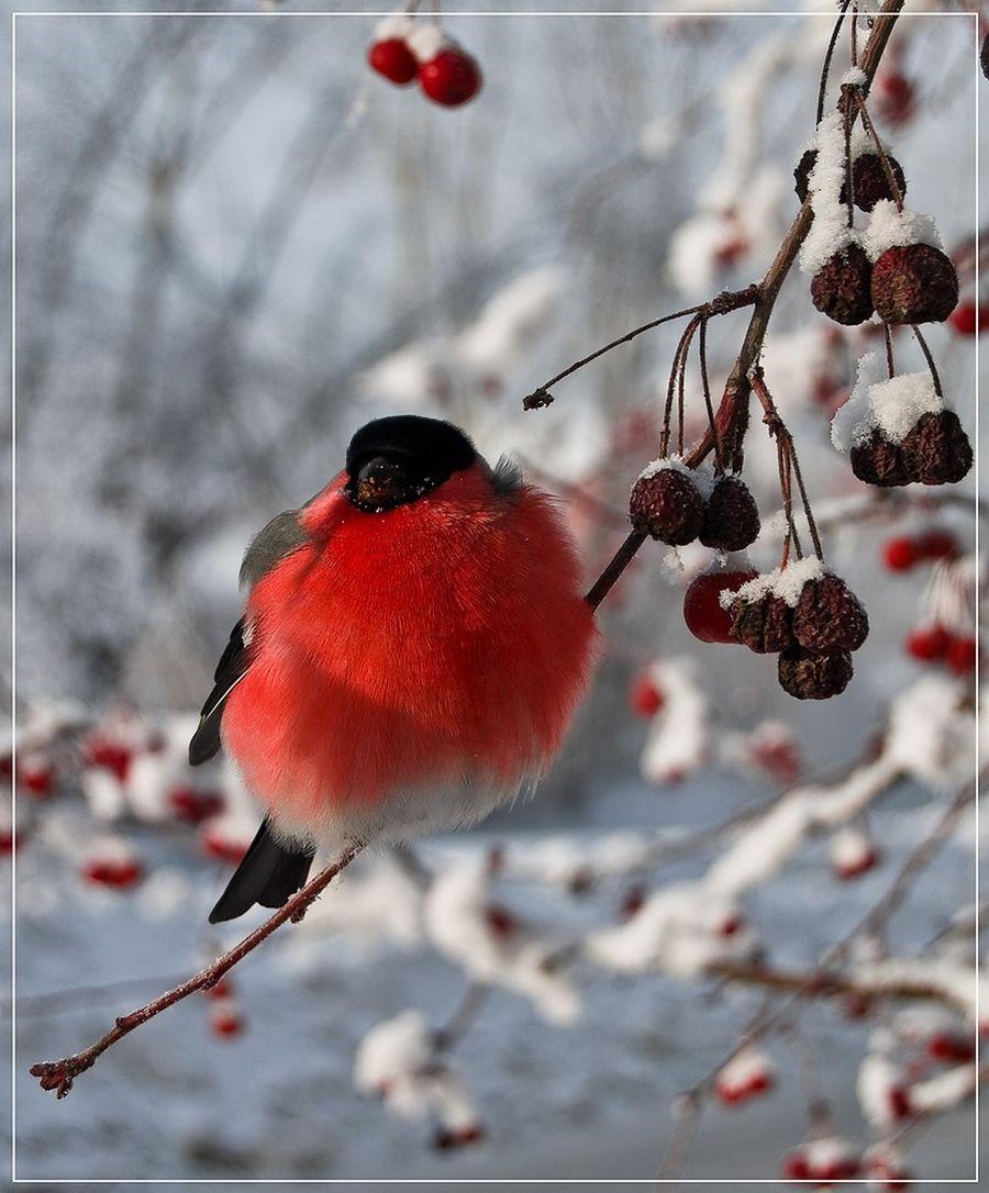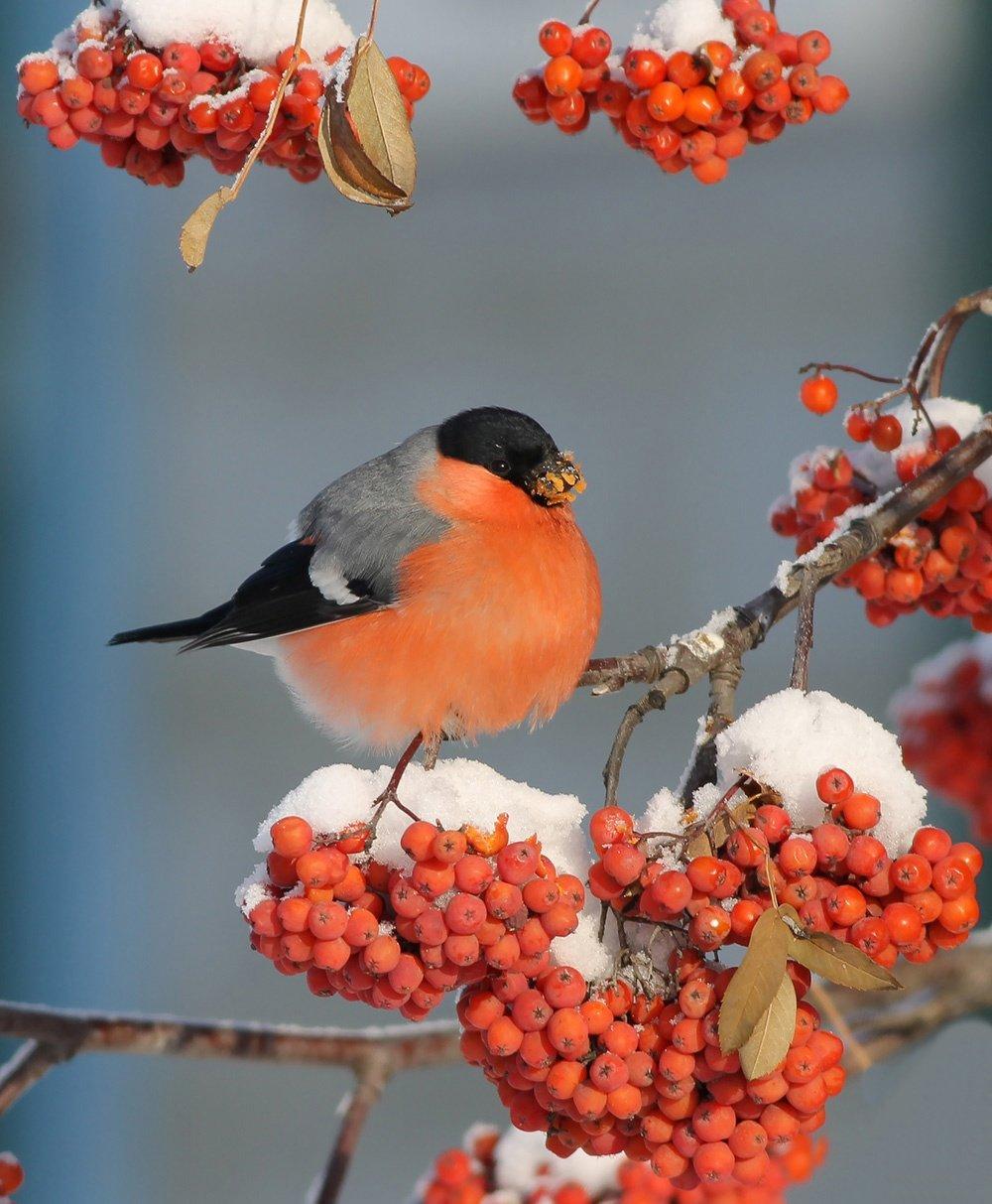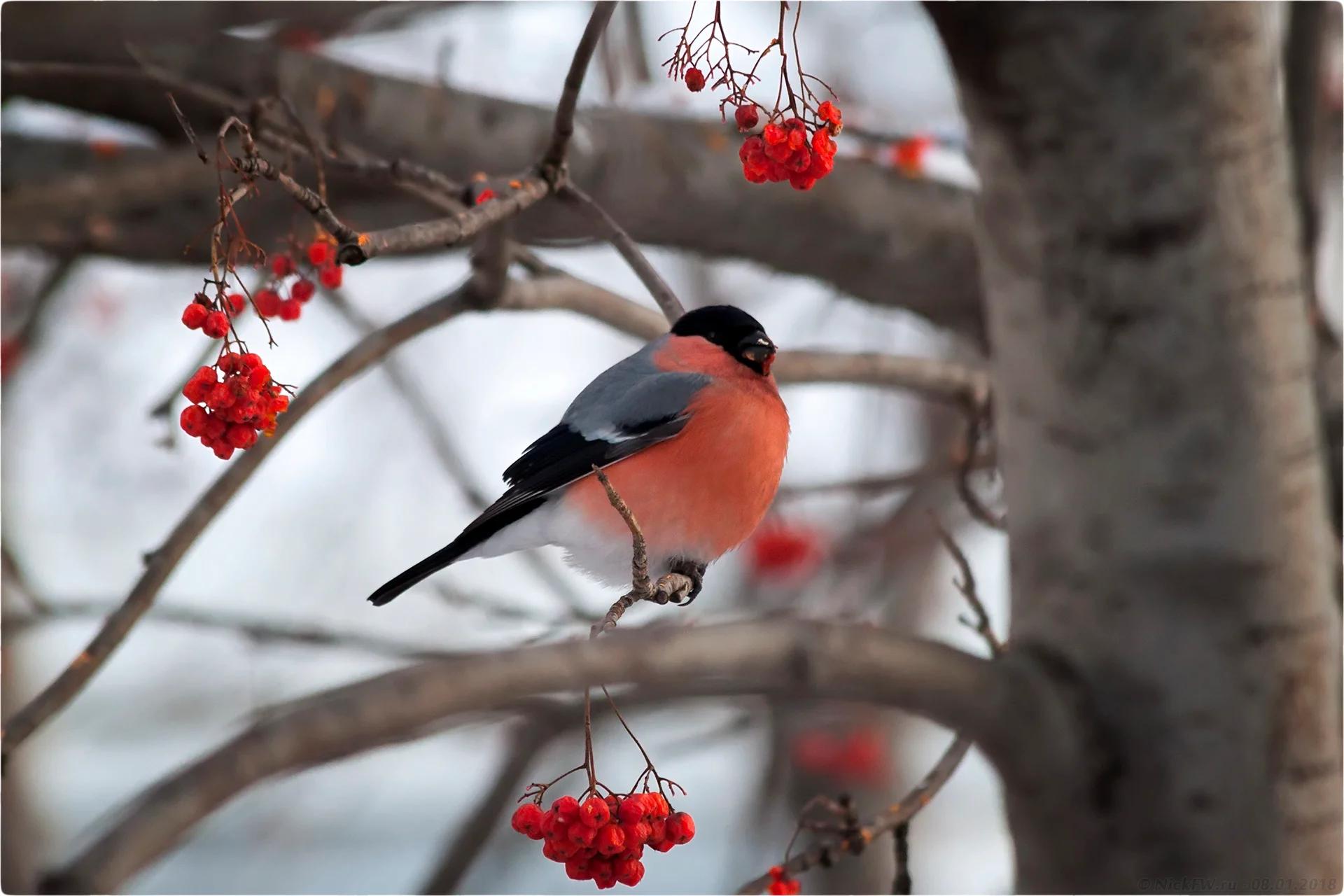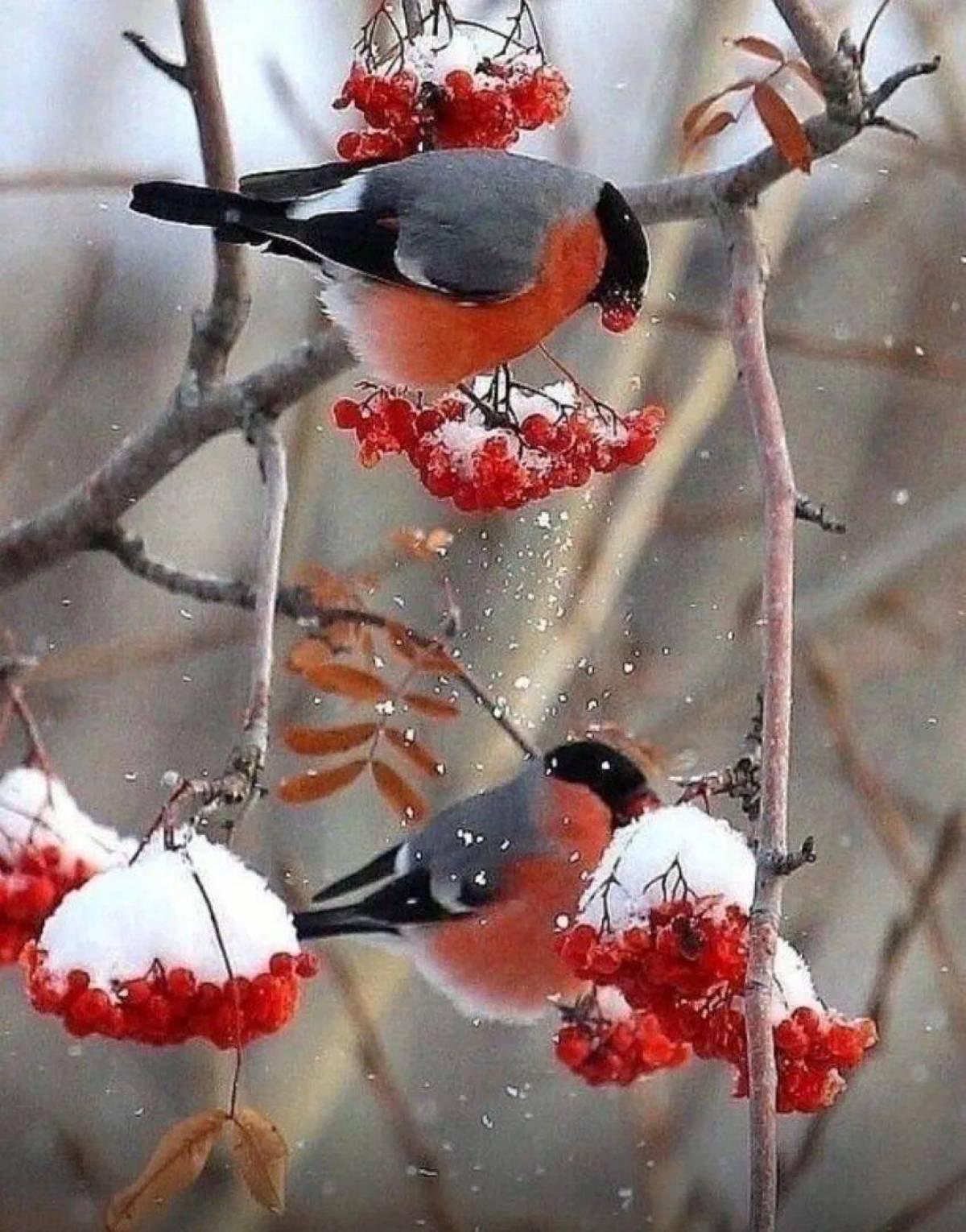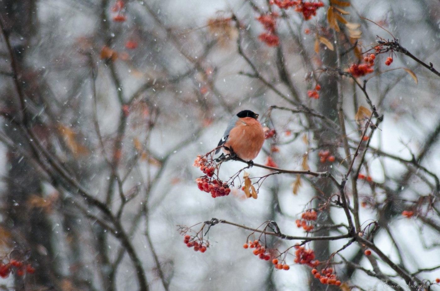 Красивые картинки Зима рябина снегири с надписями
