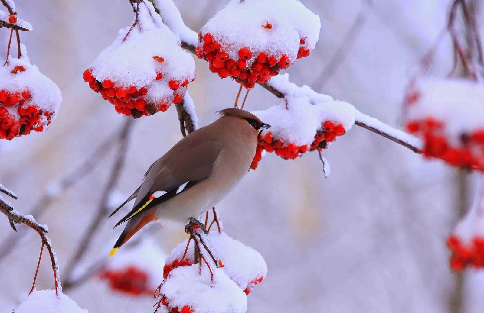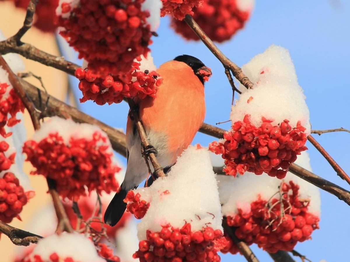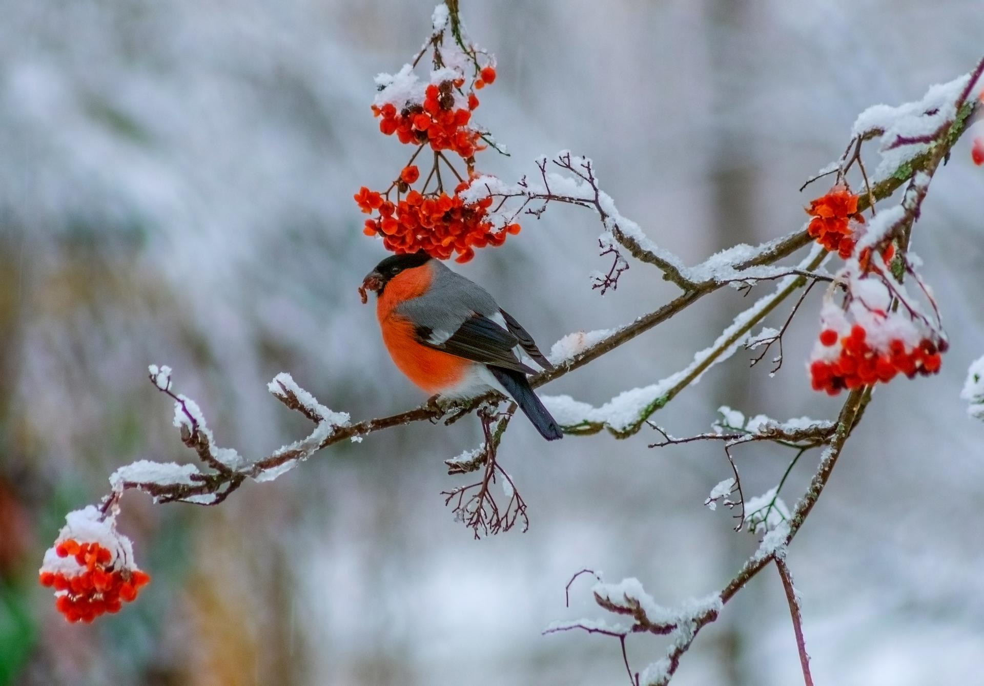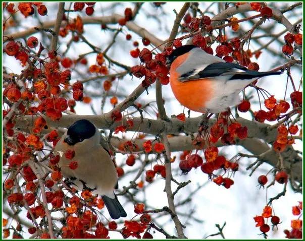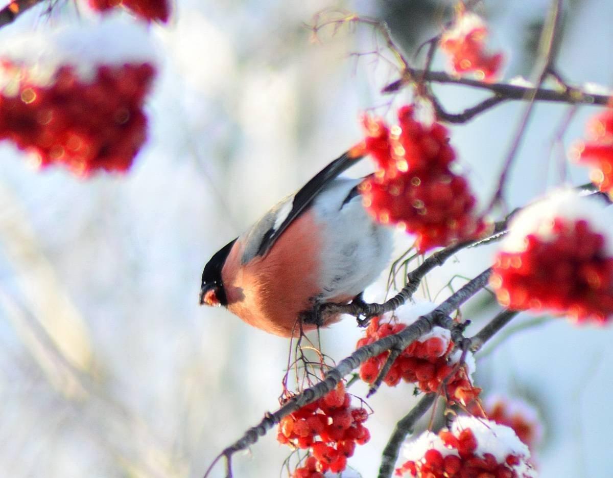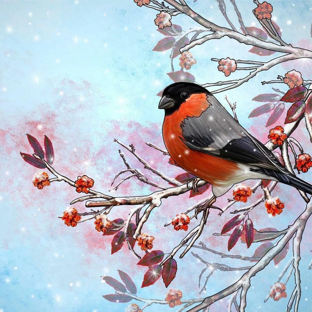 Красивые картинки Зима рябина снегири с надписями