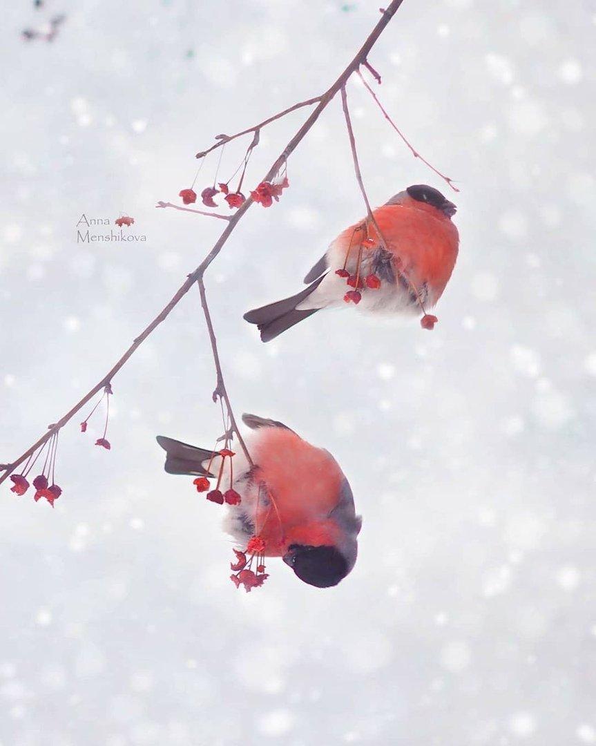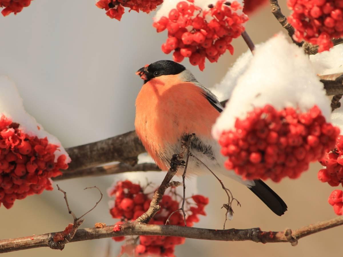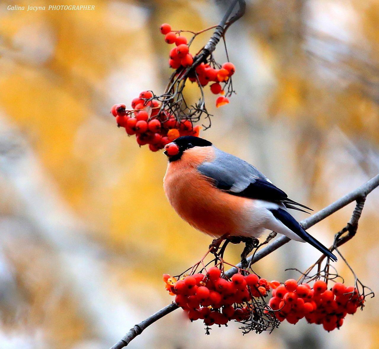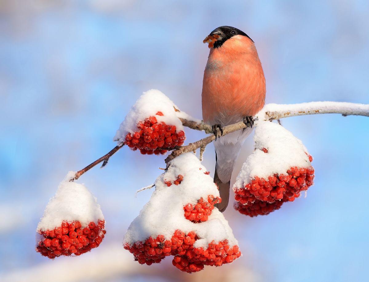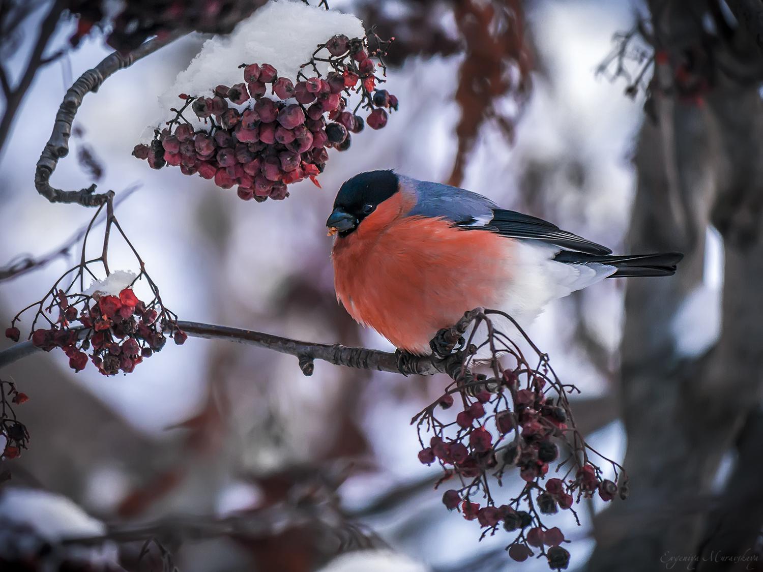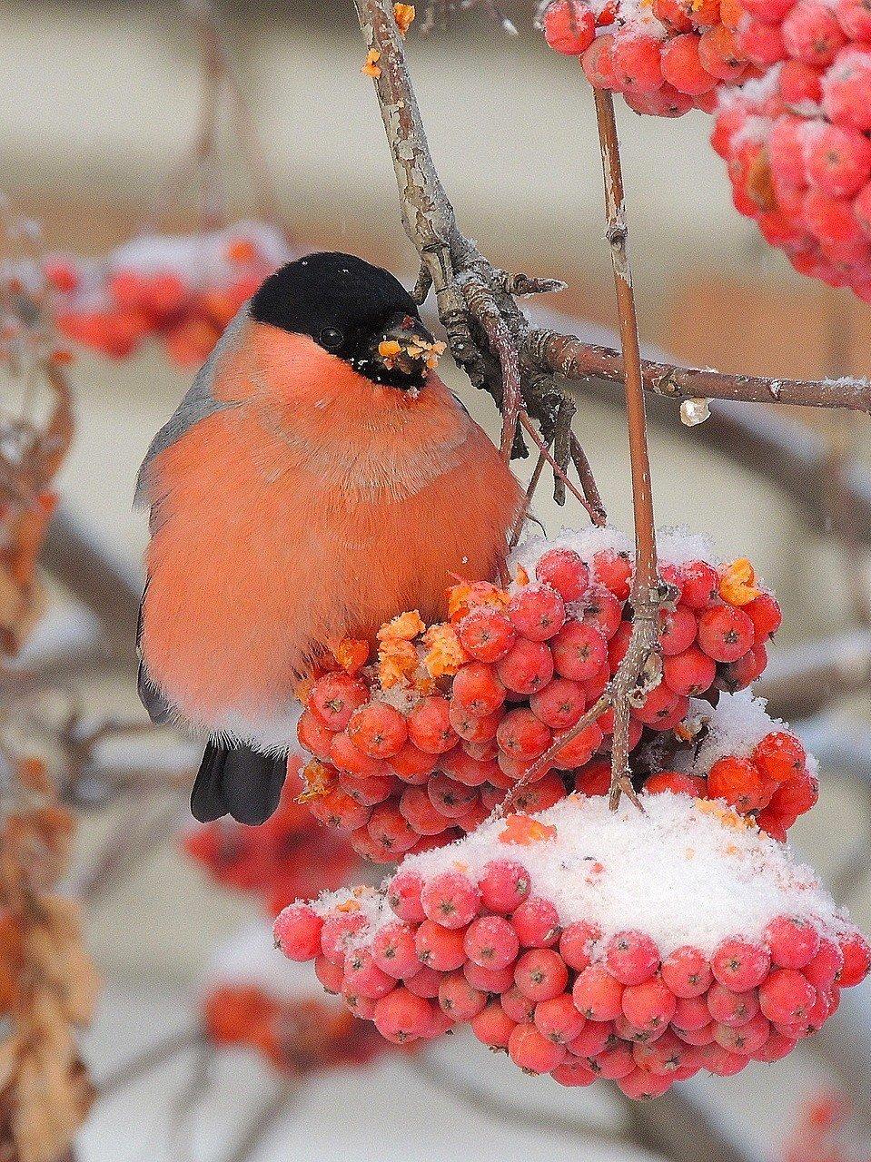 Красивые картинки Зима рябина снегири с надписями