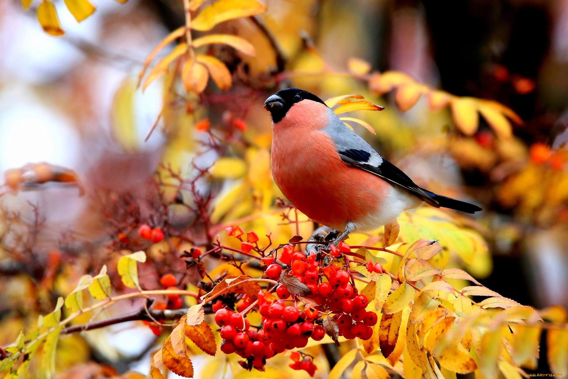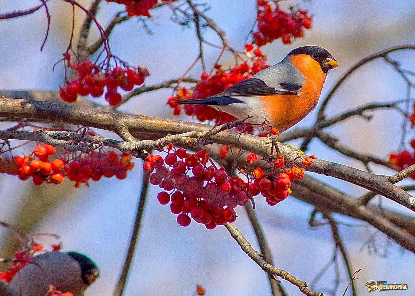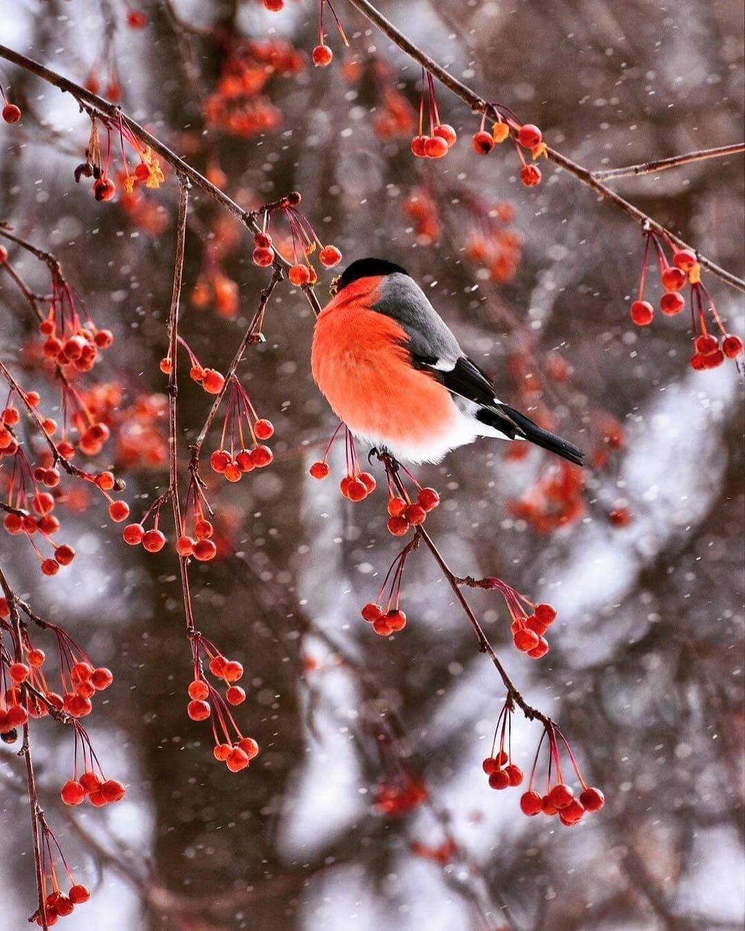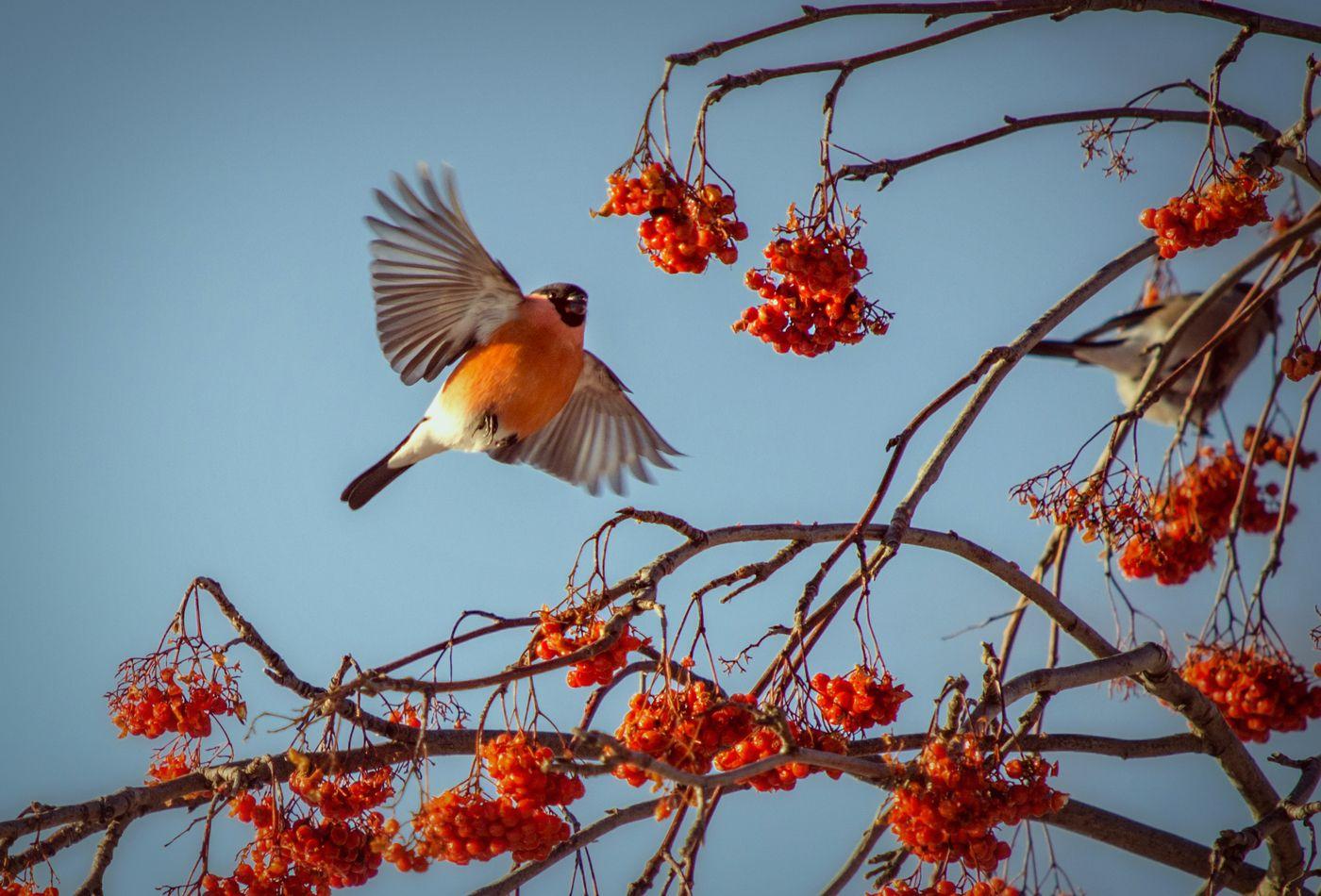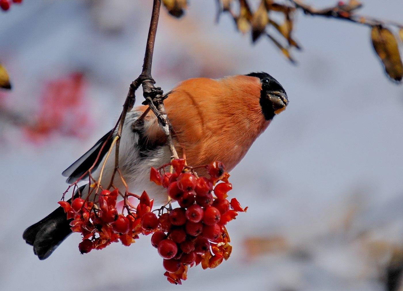 Красивые картинки Зима рябина снегири с надписями