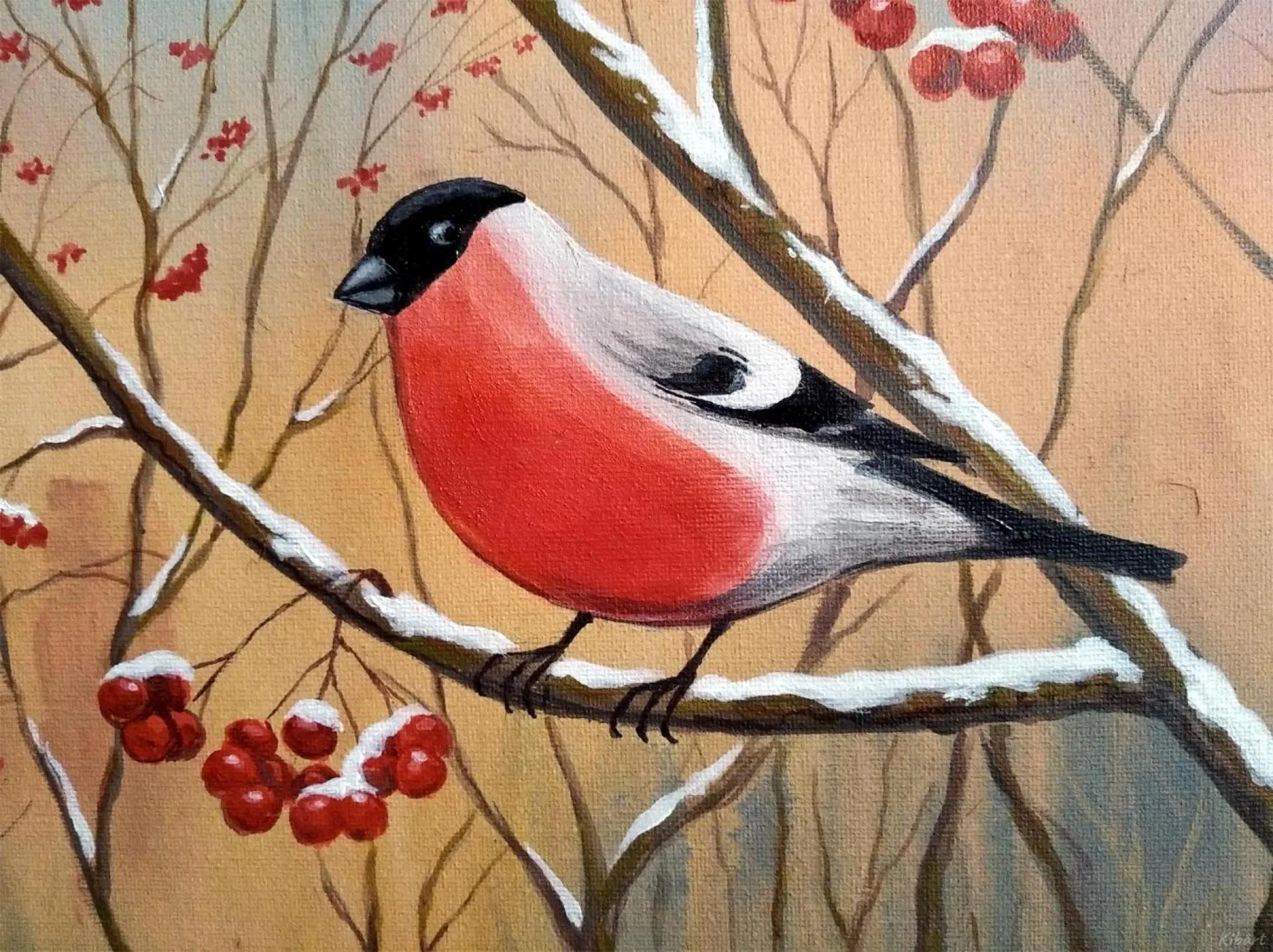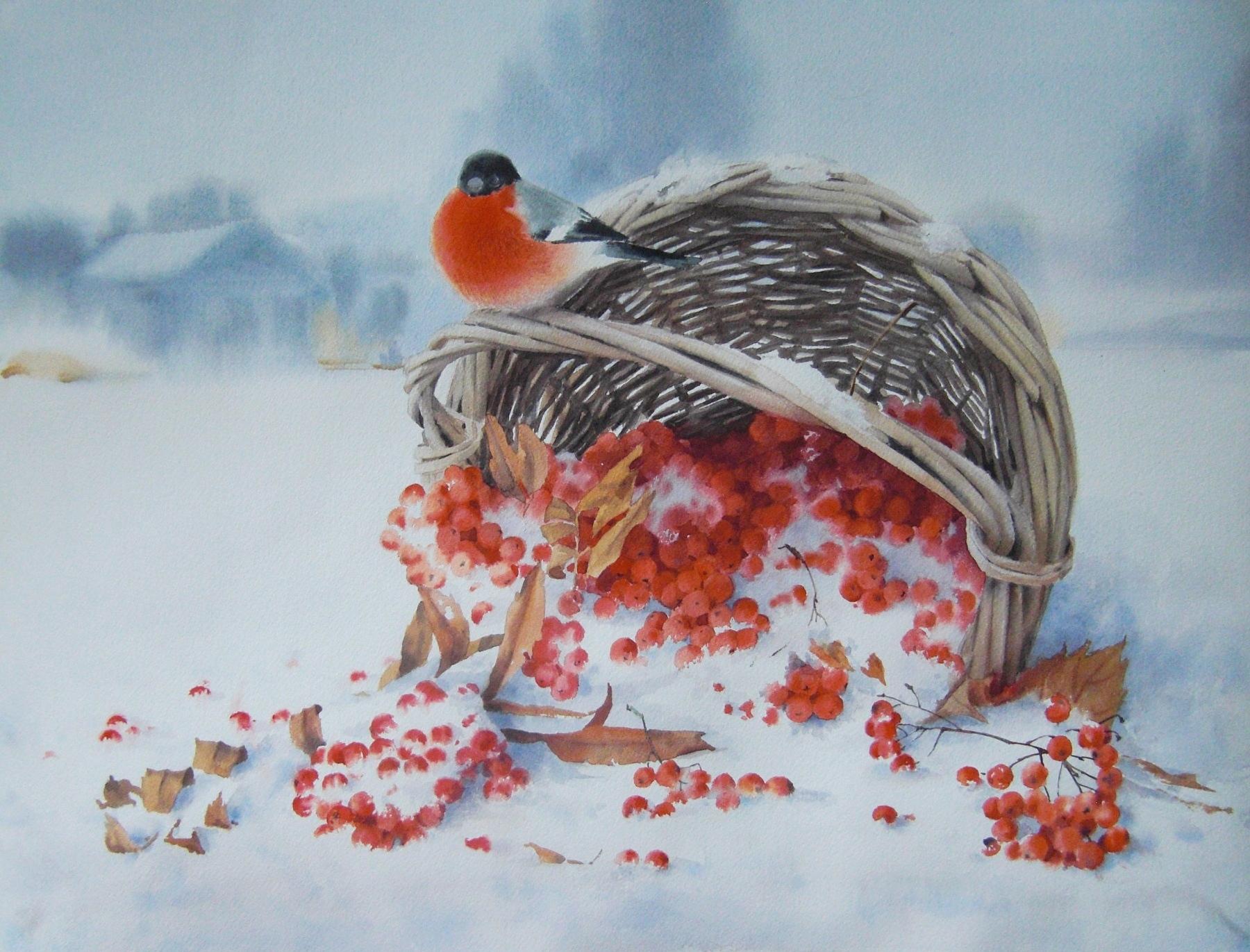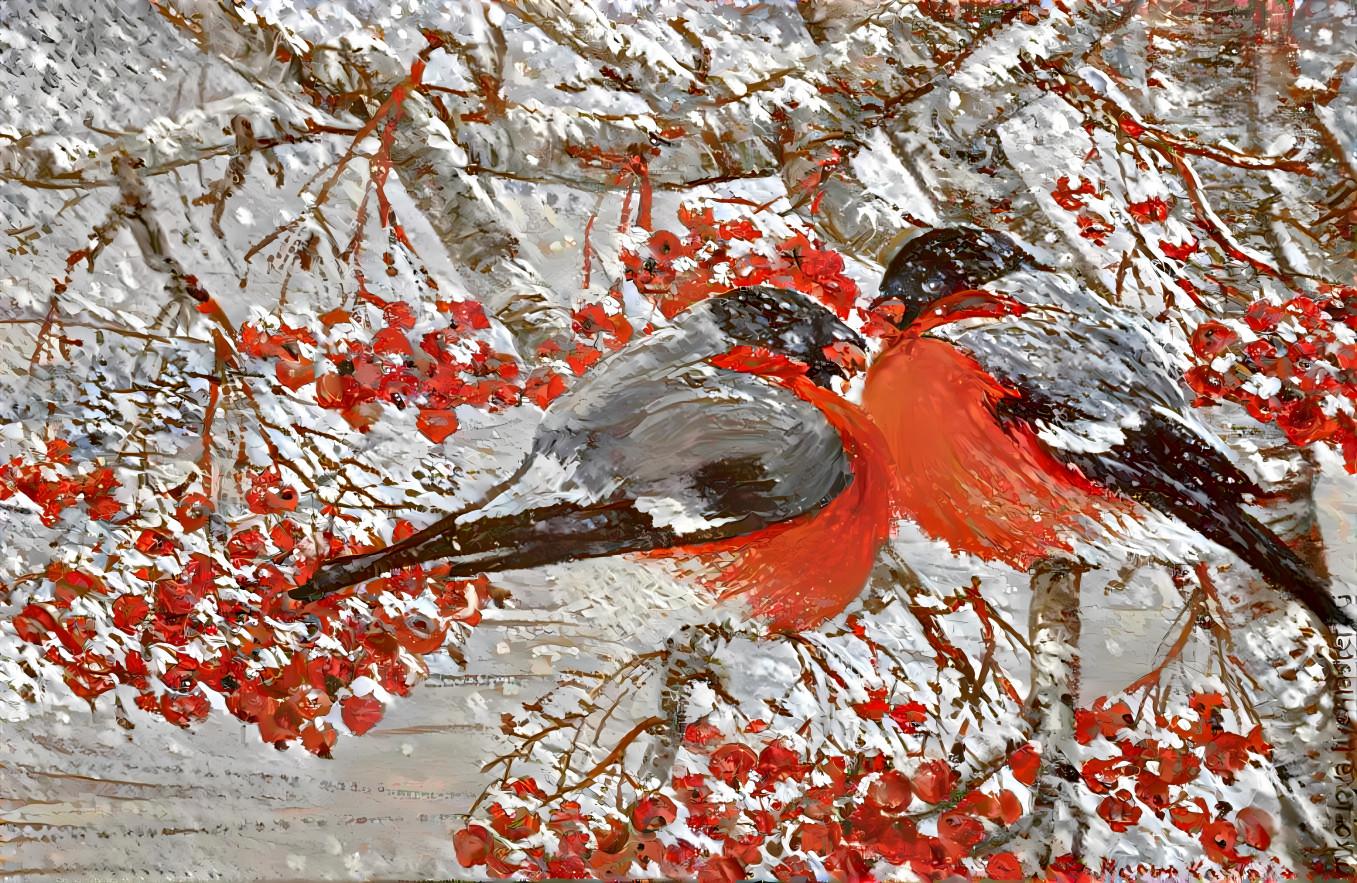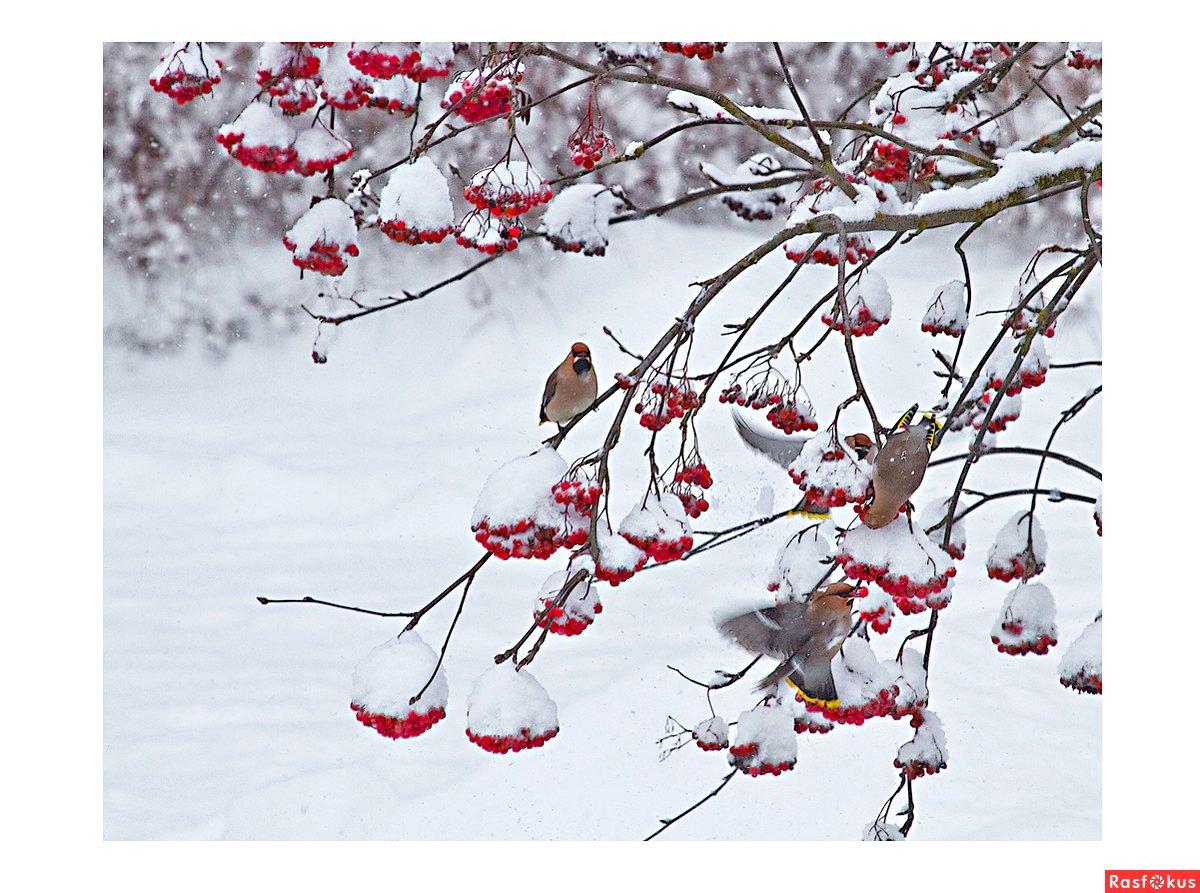 Зима рябина снегири