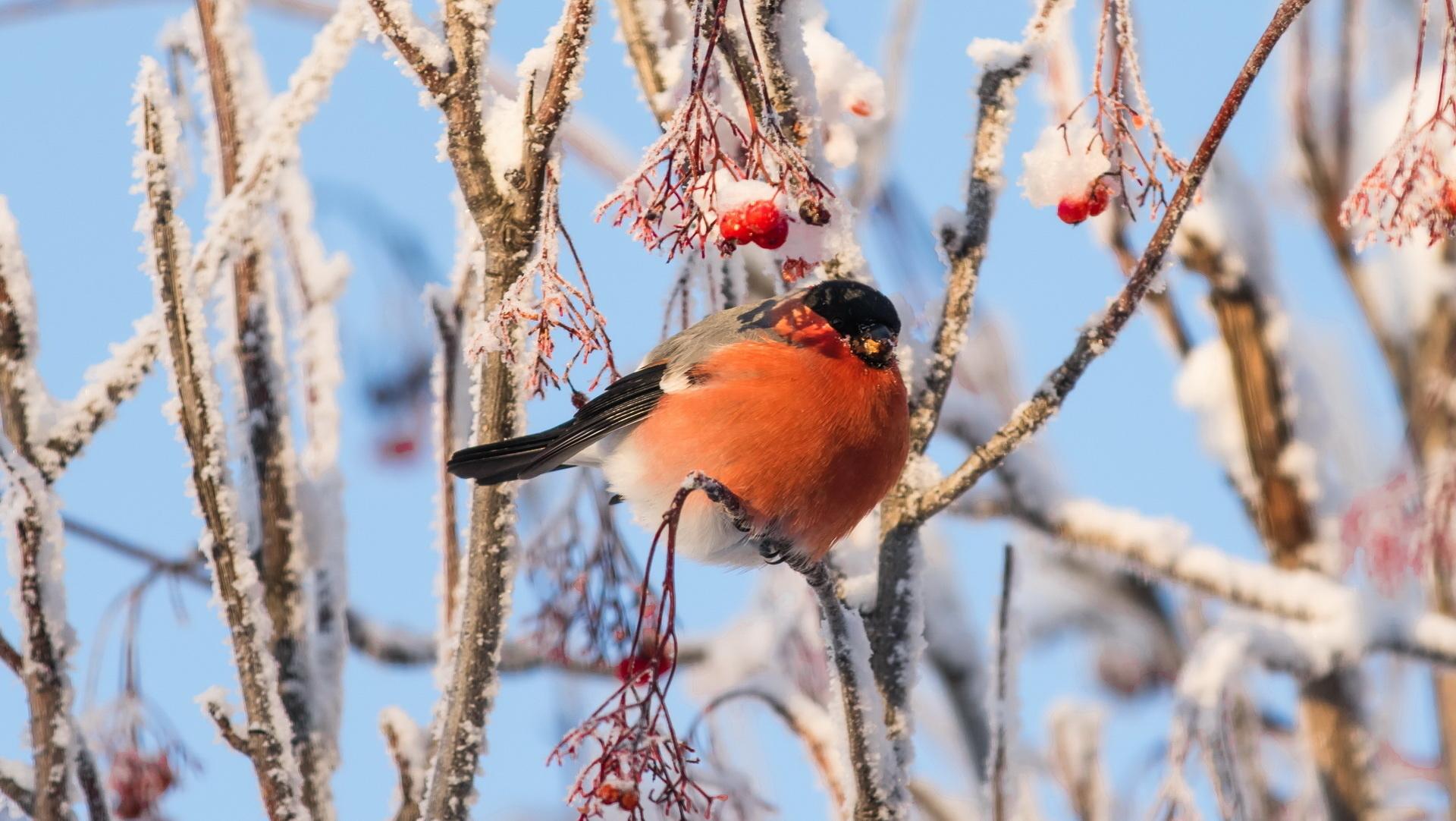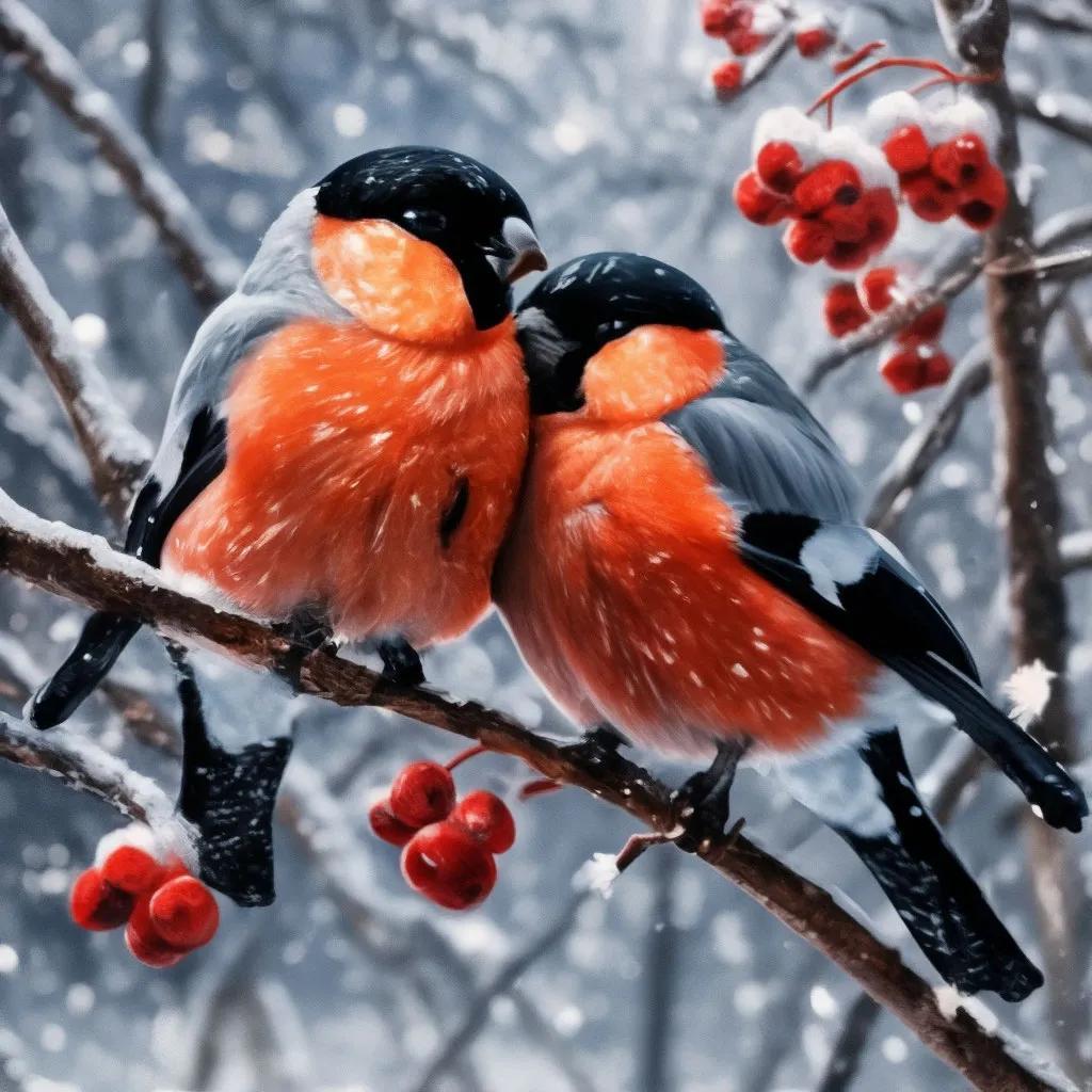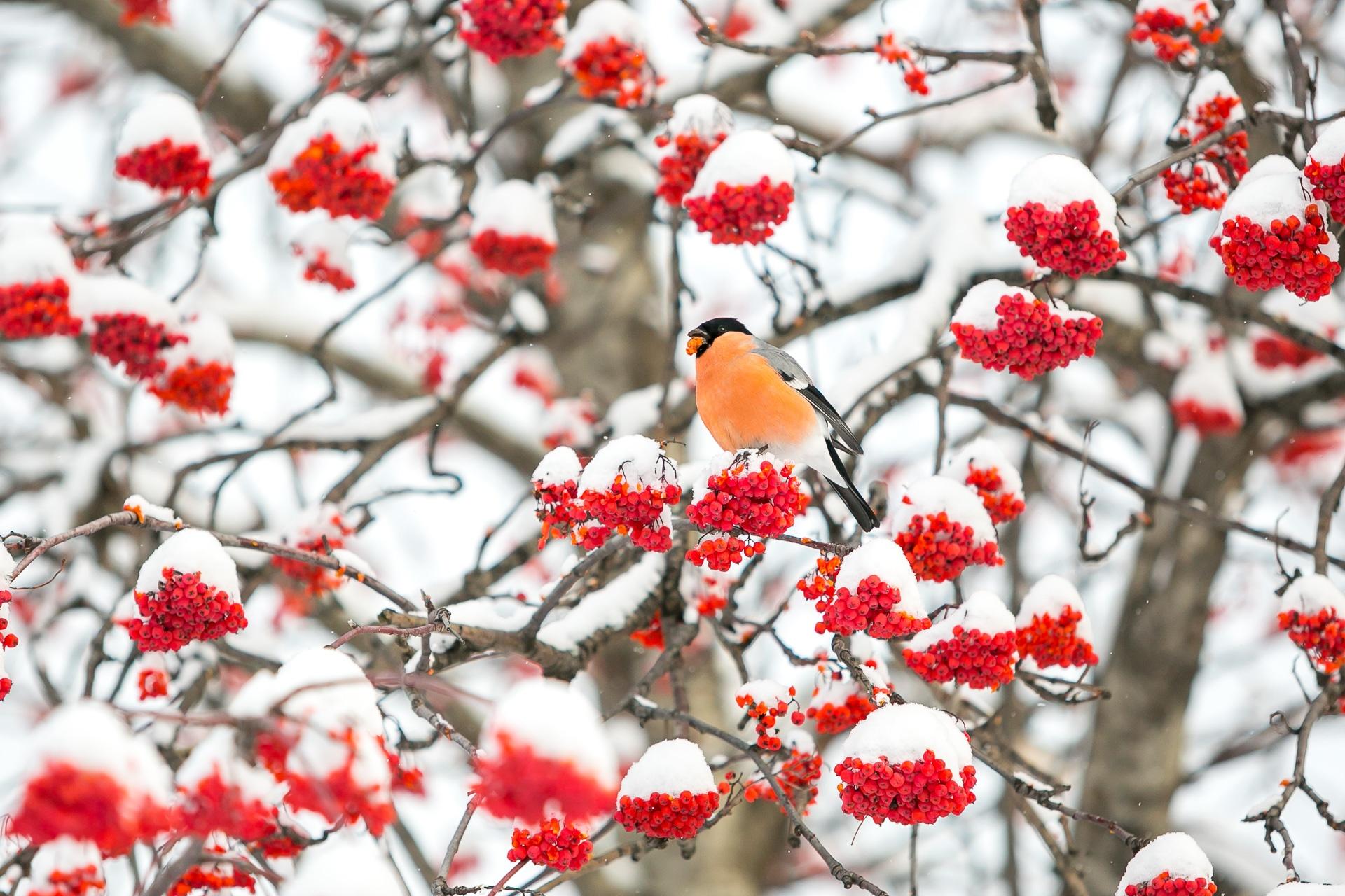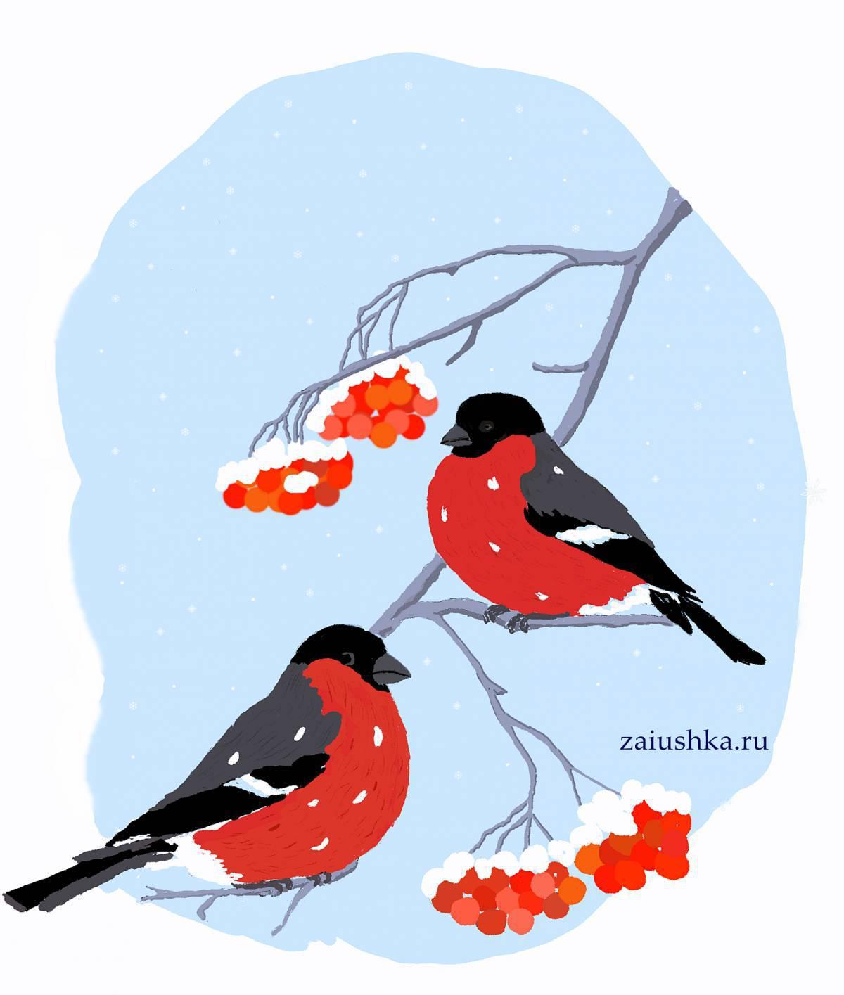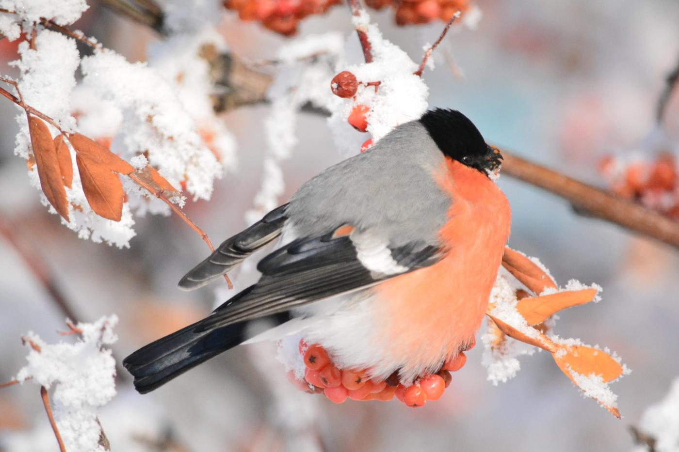 Зима рябина снегири
