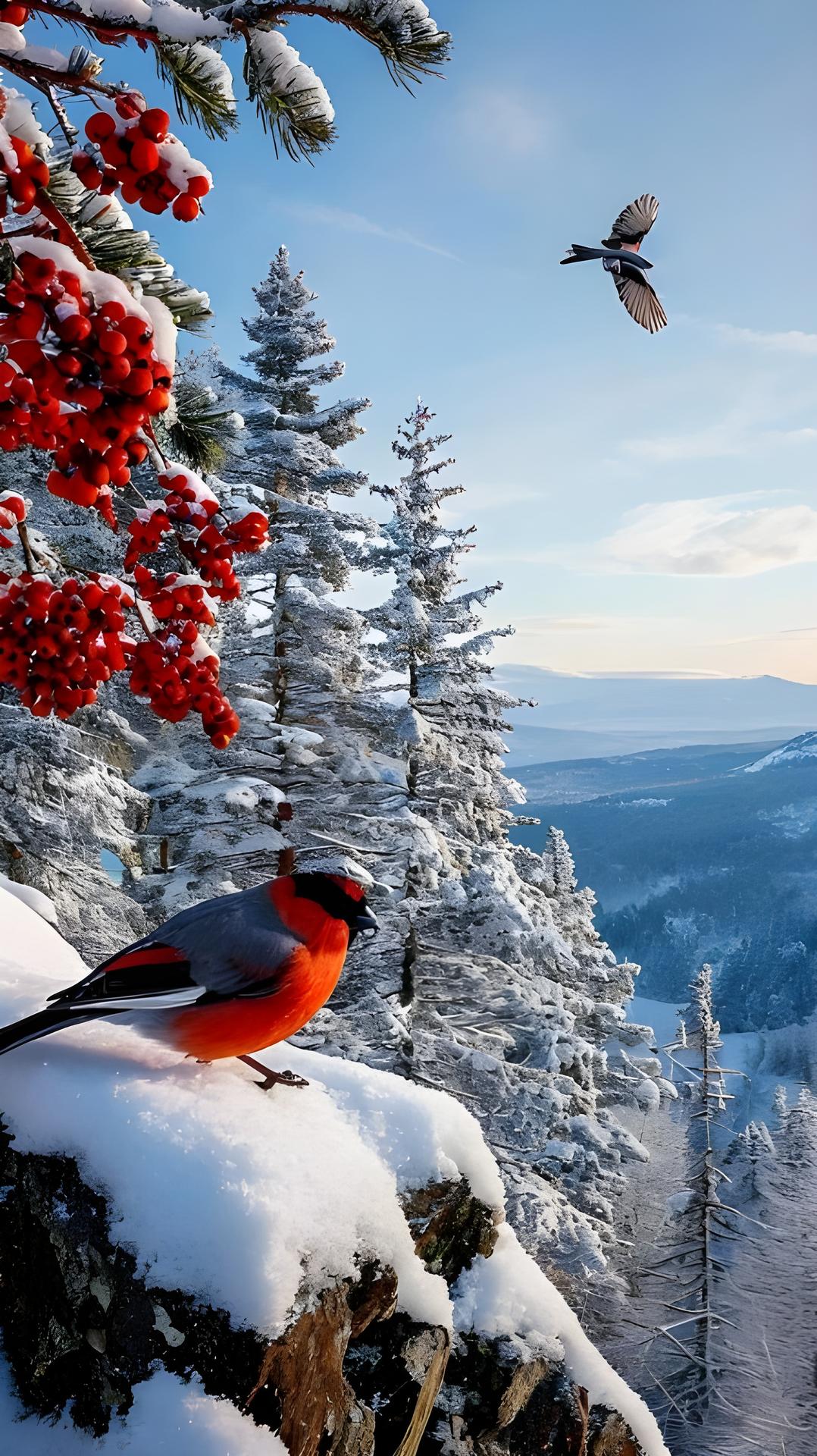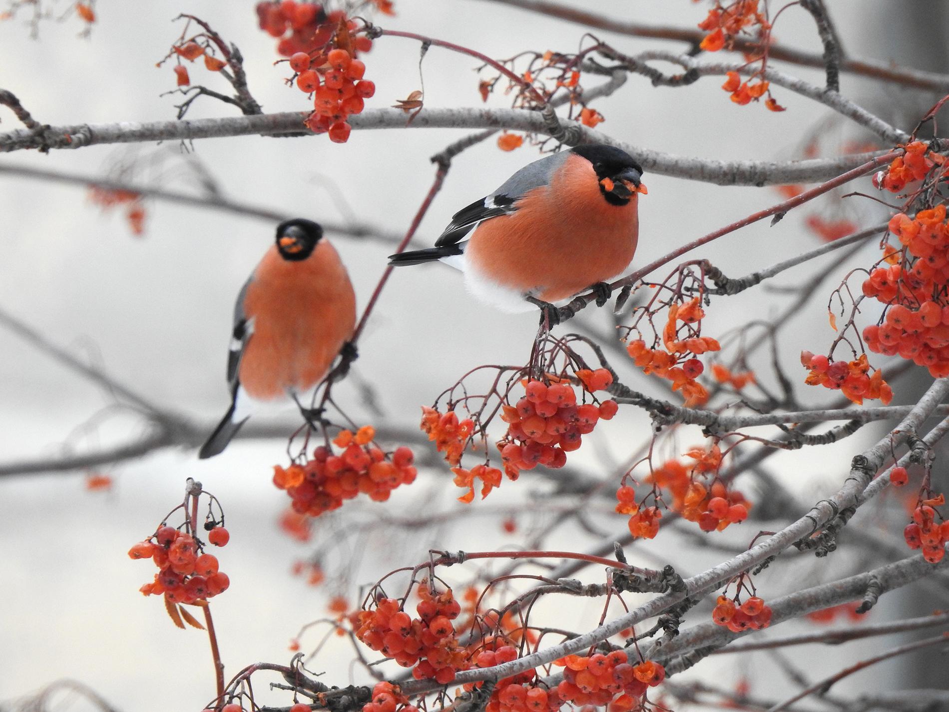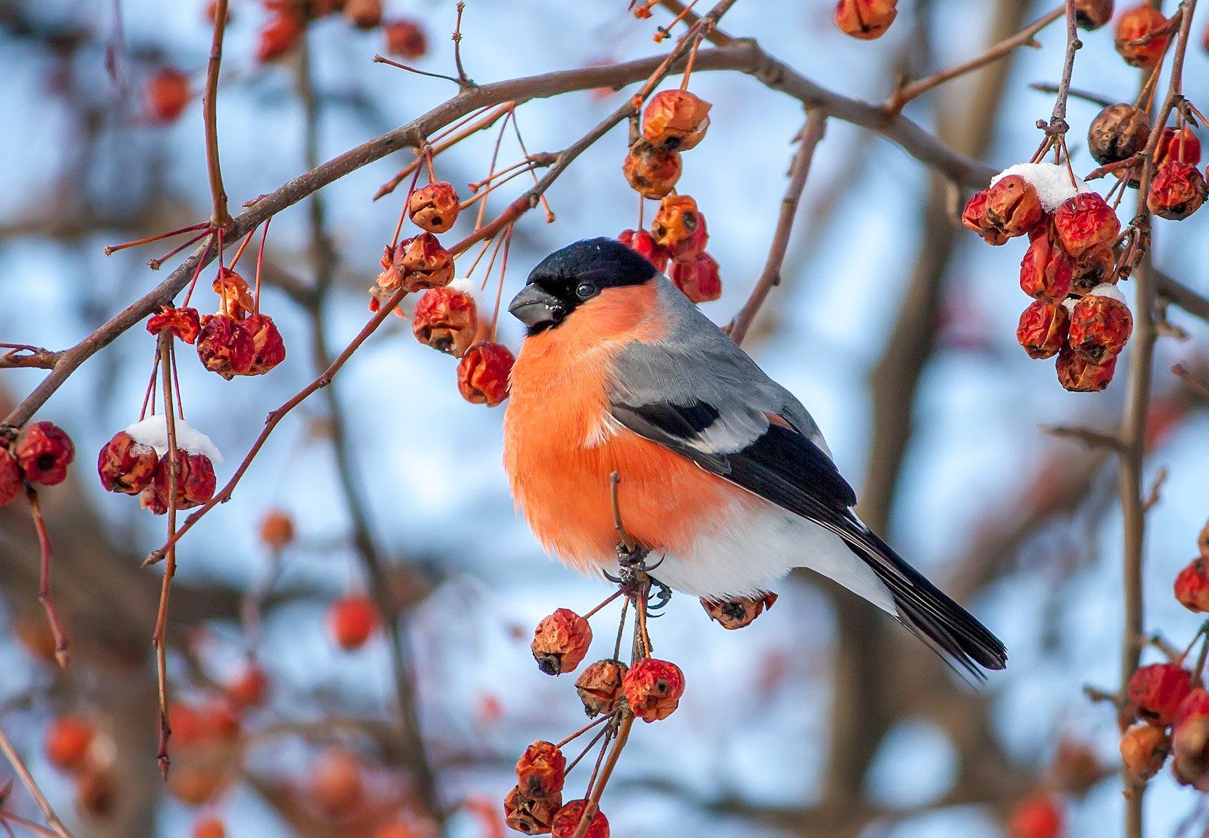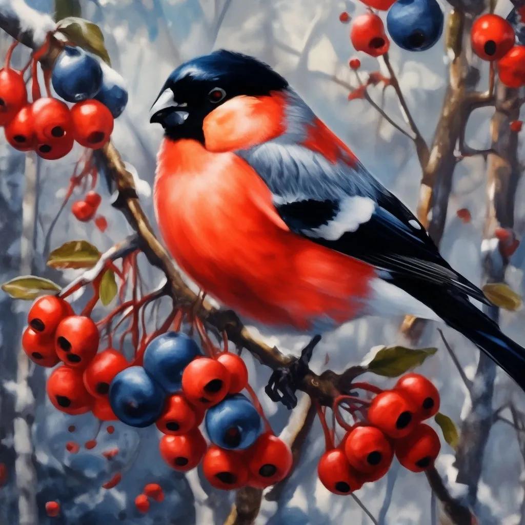 Зима рябина снегири