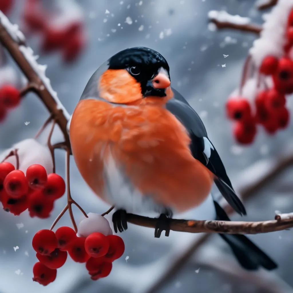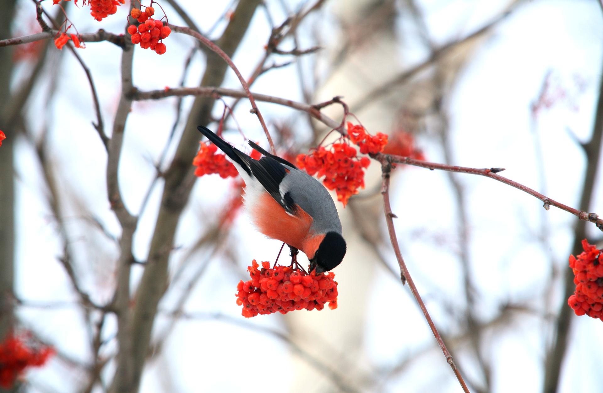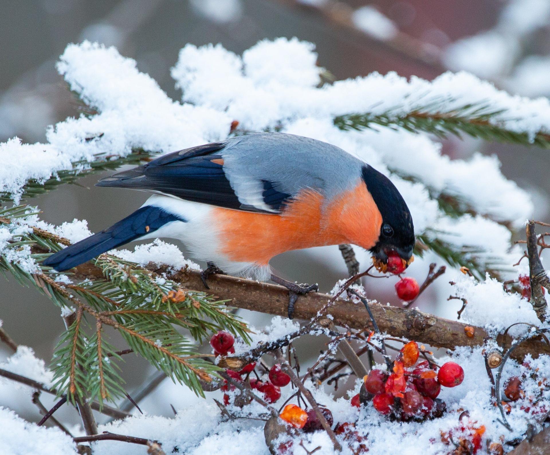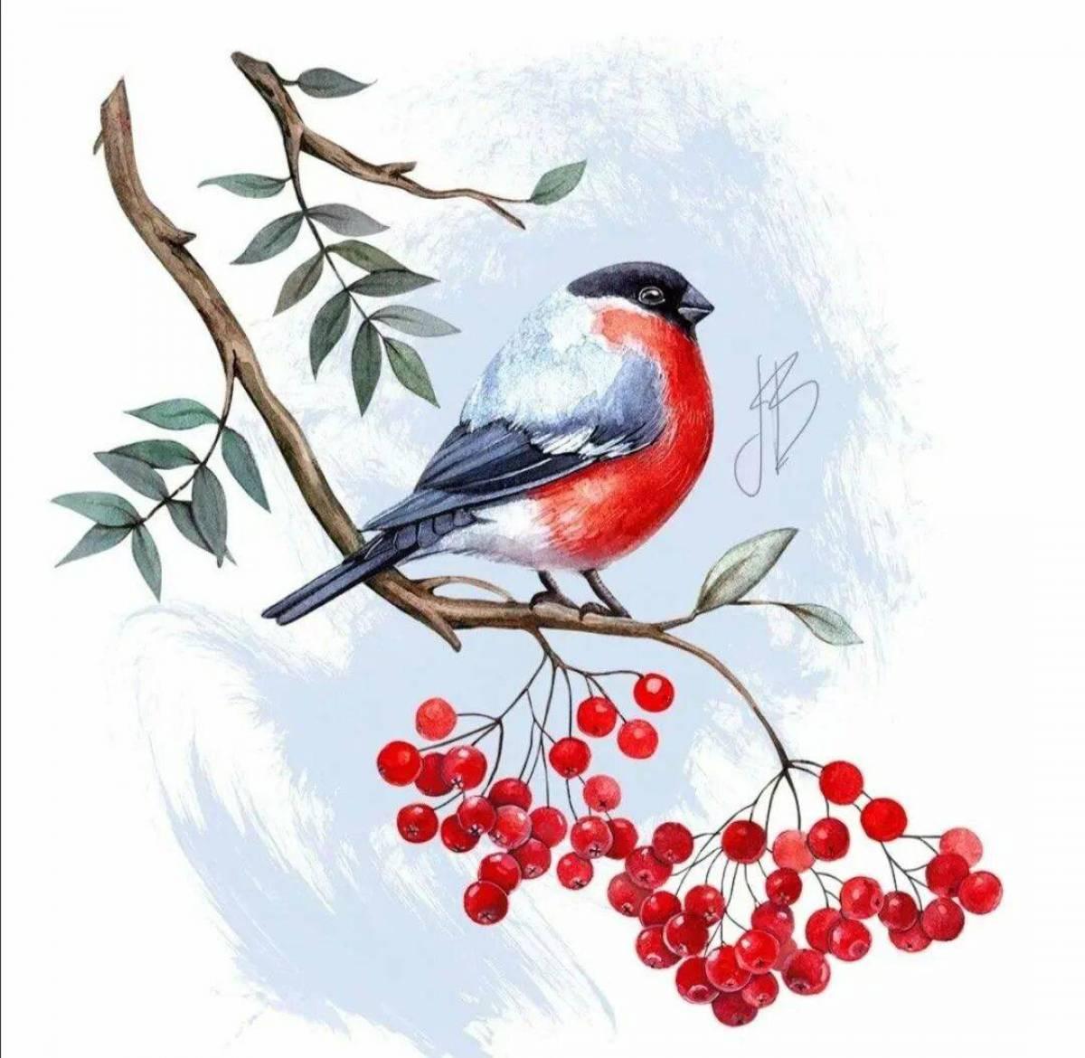Зима рябина снегири
