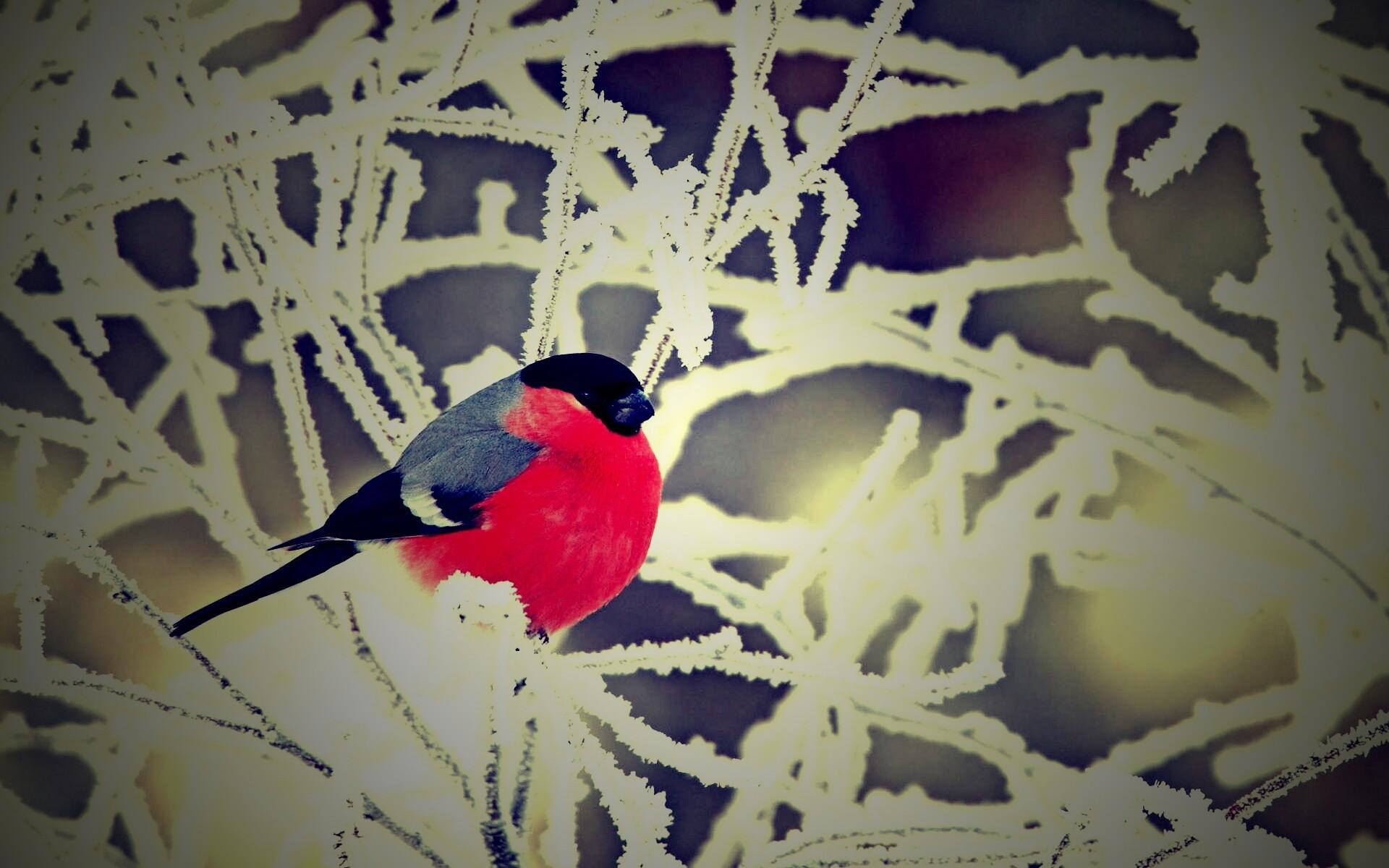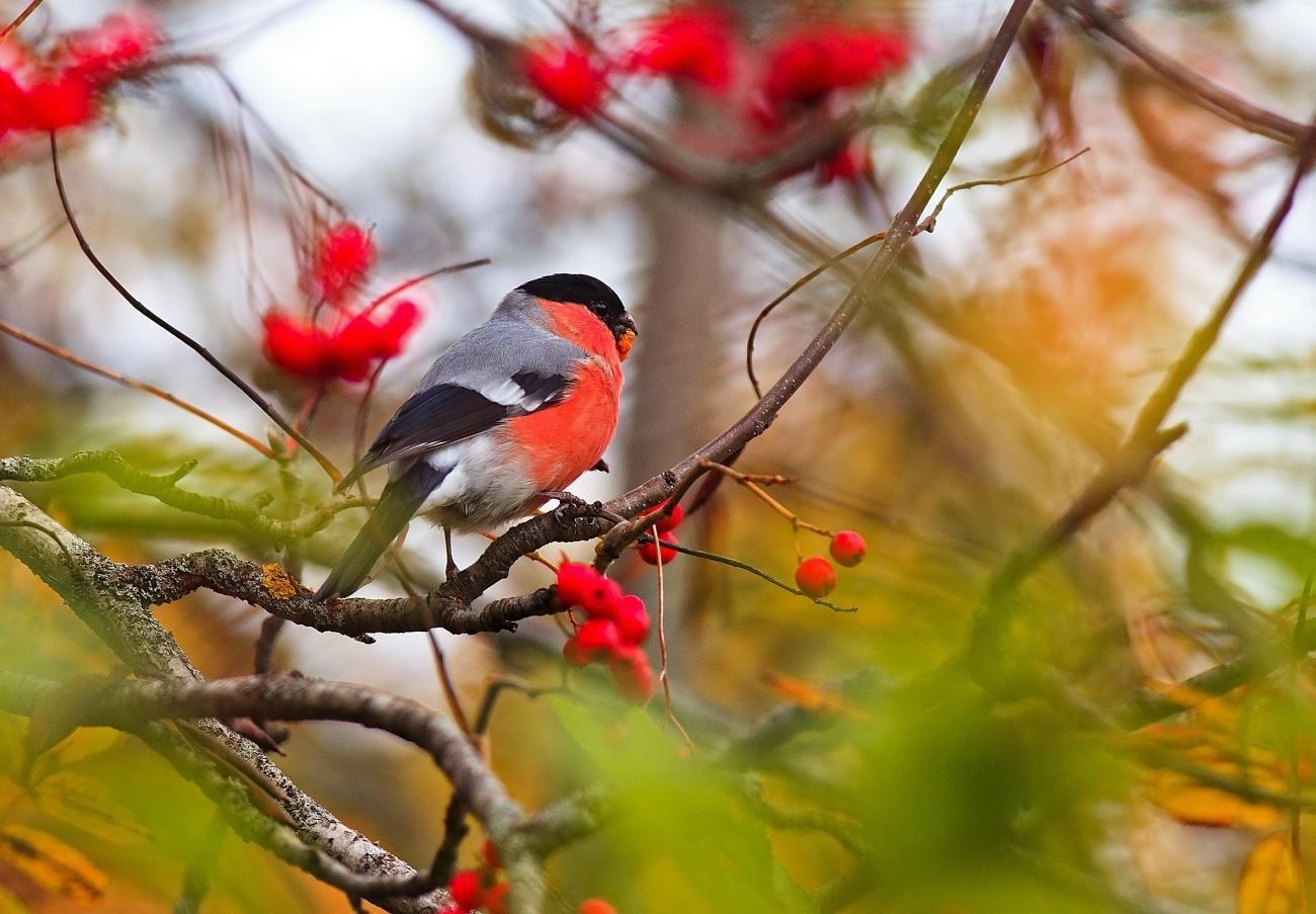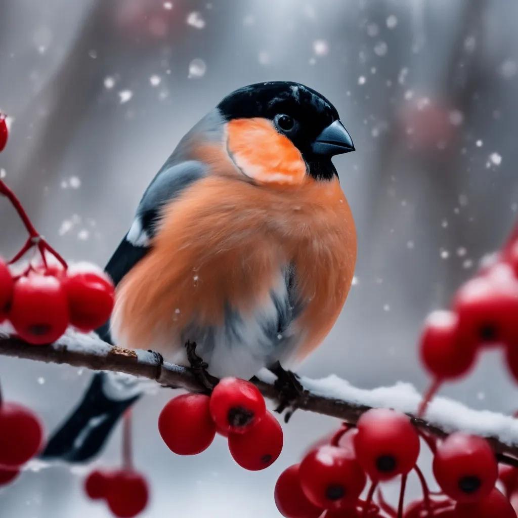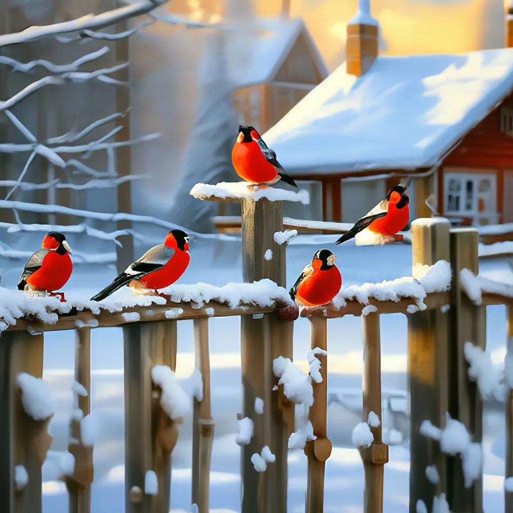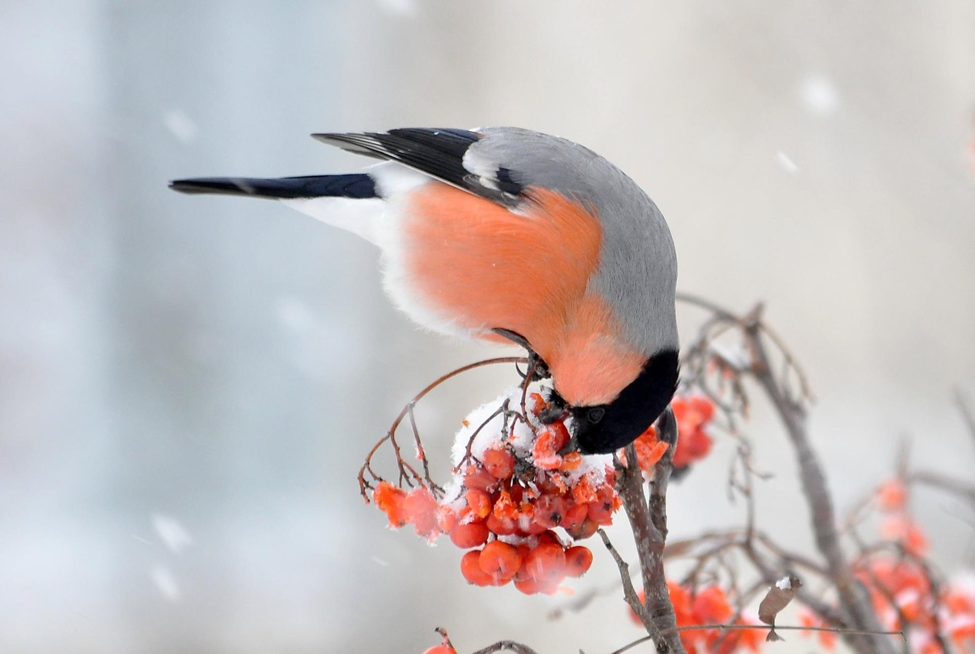 Зима рябина снегири
