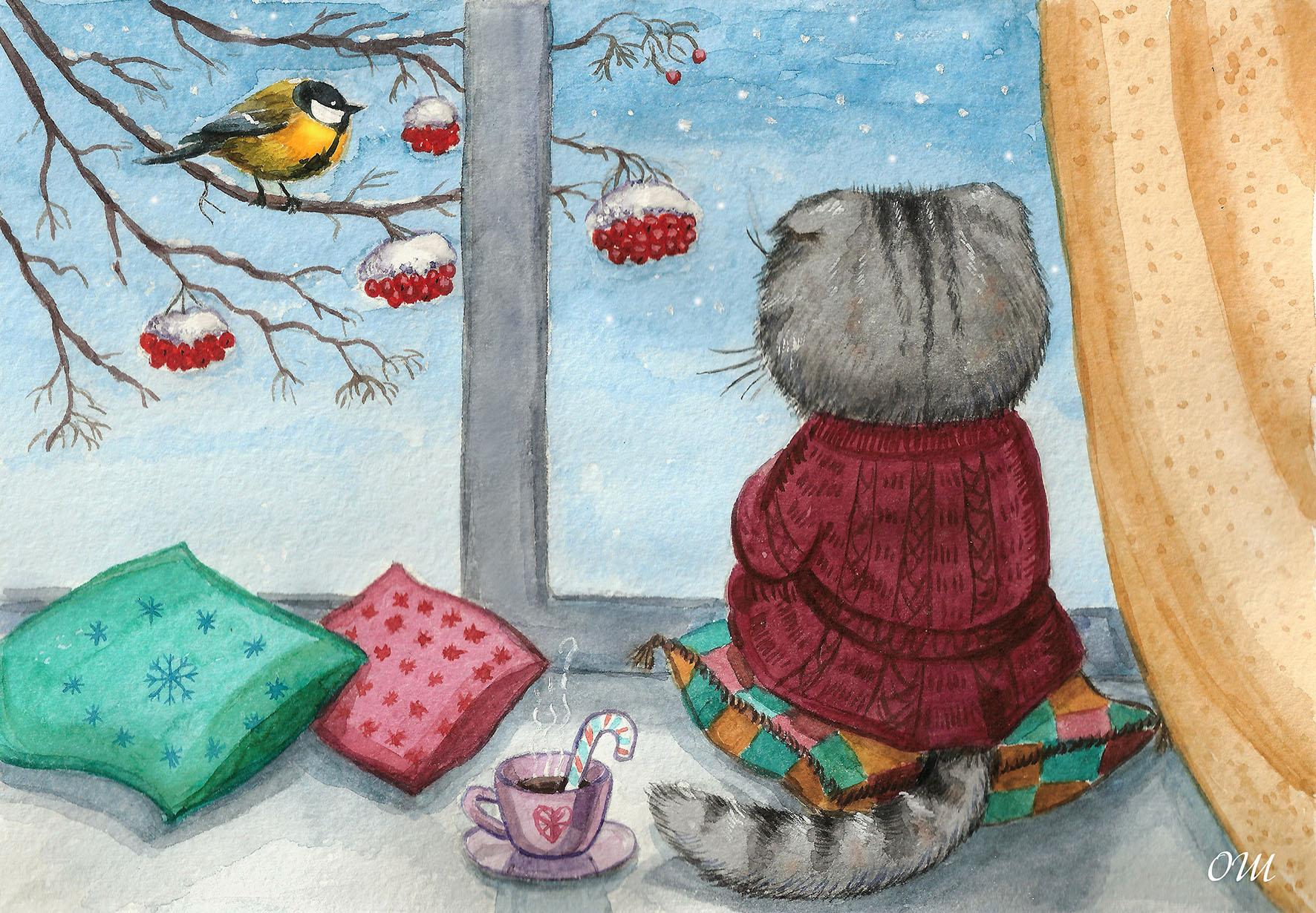 За окном зима с надписями