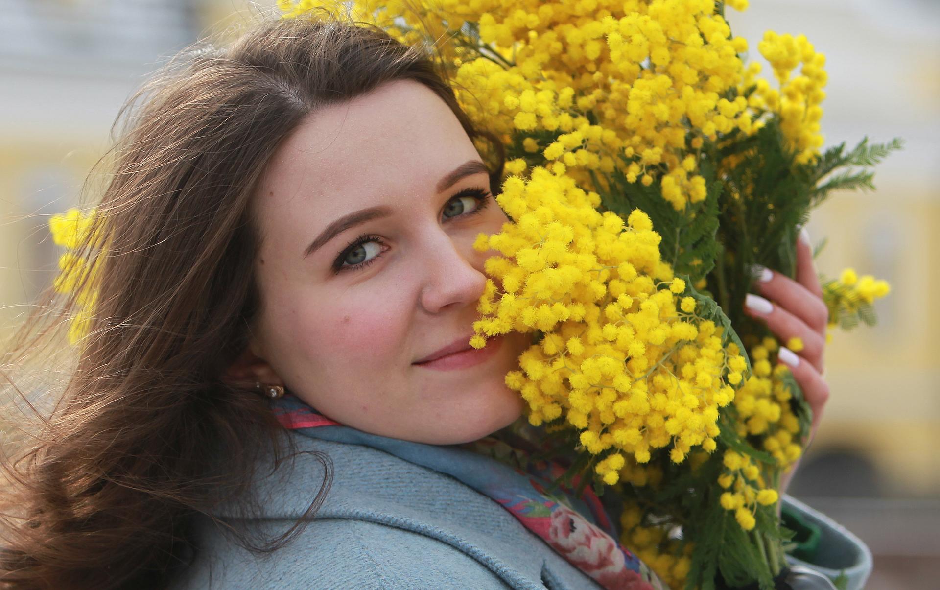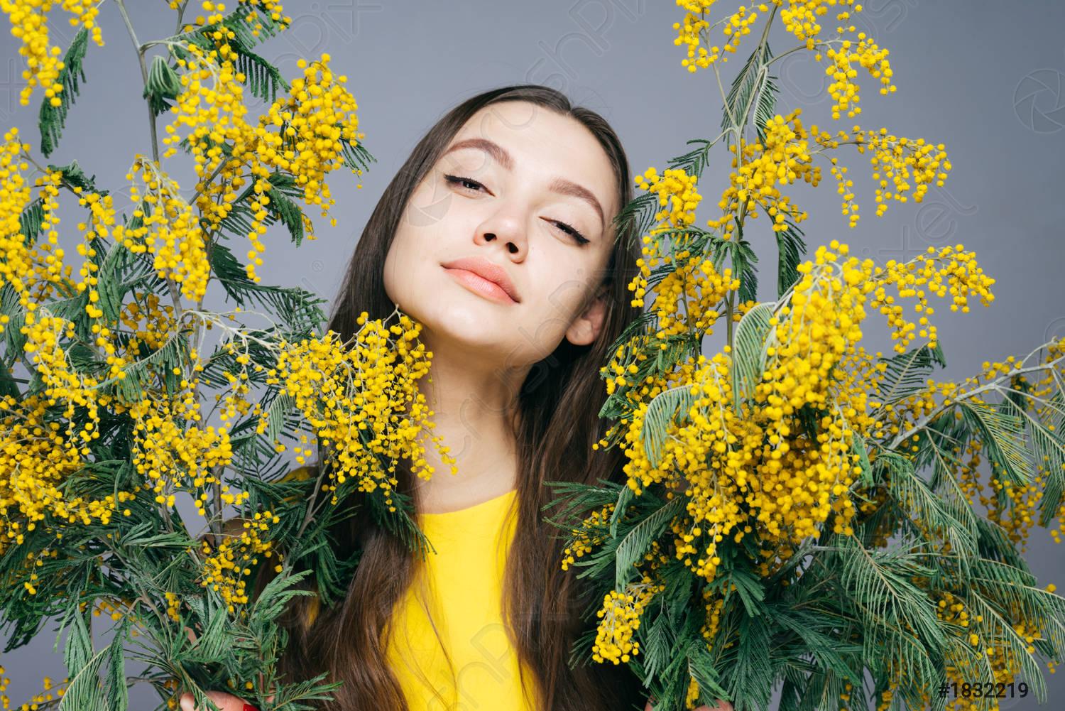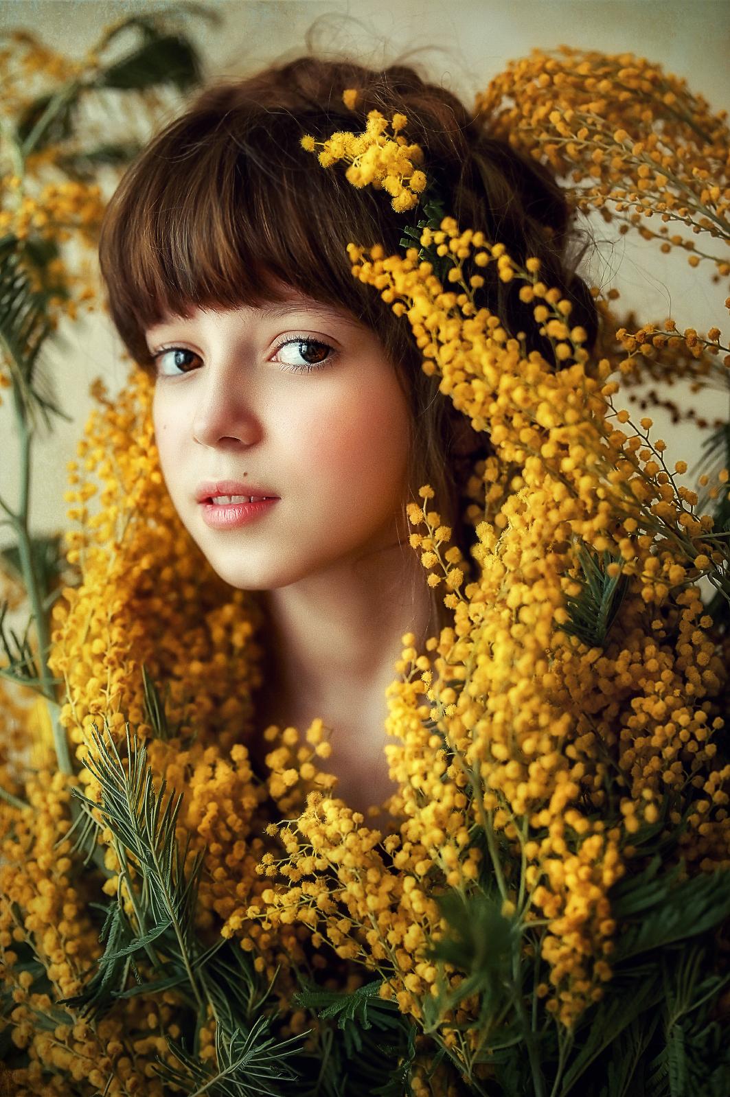 Девушка с мимозой
