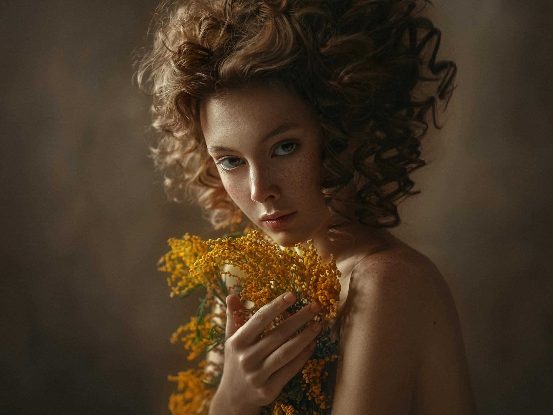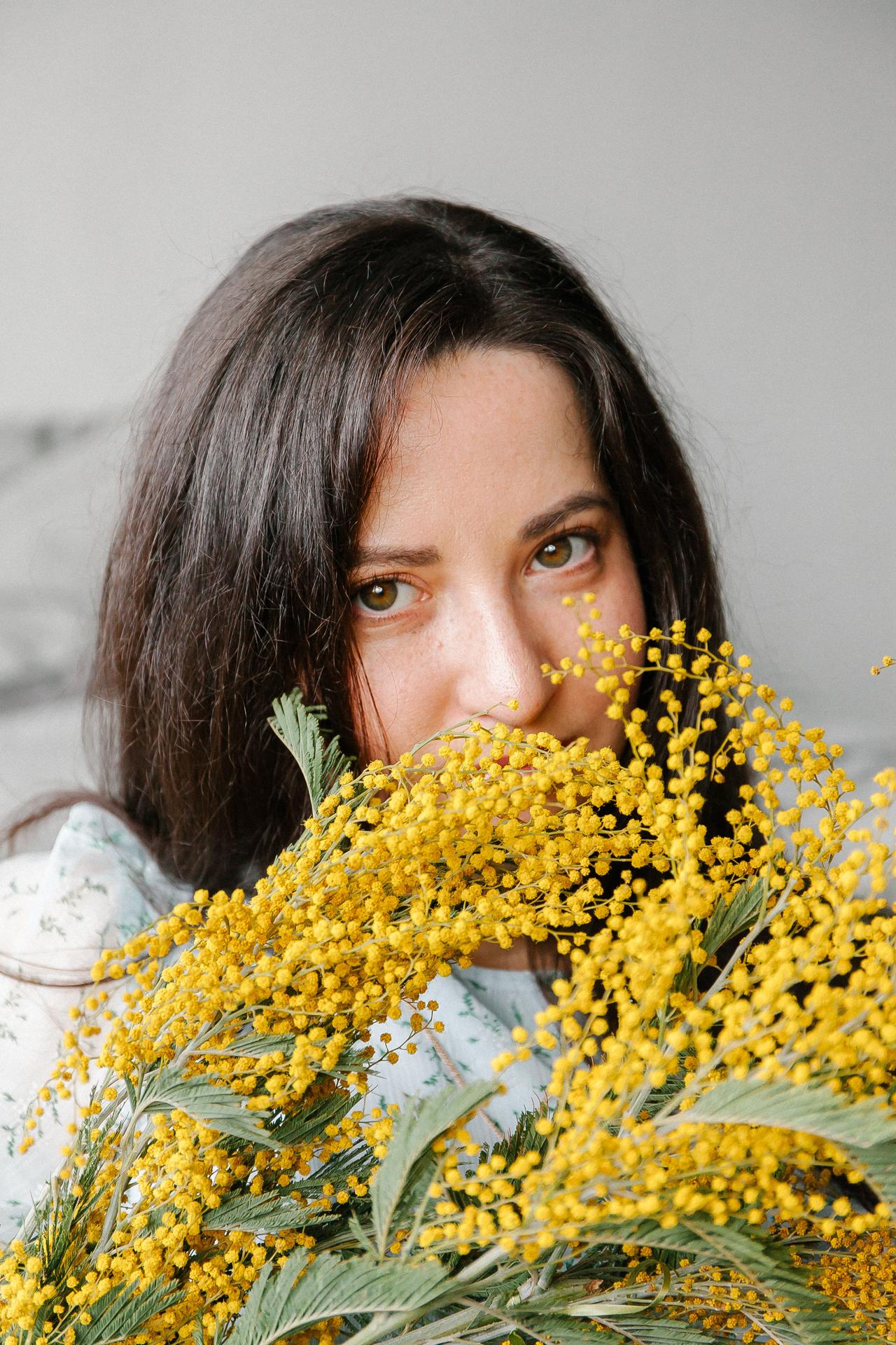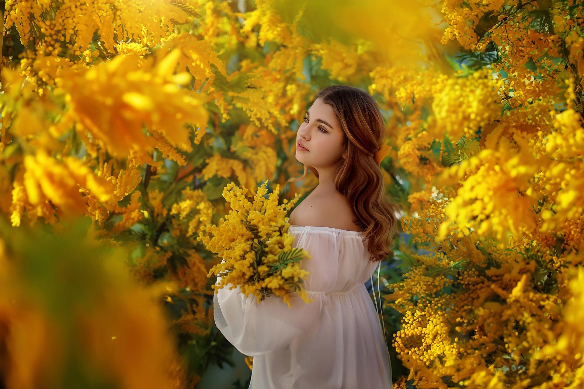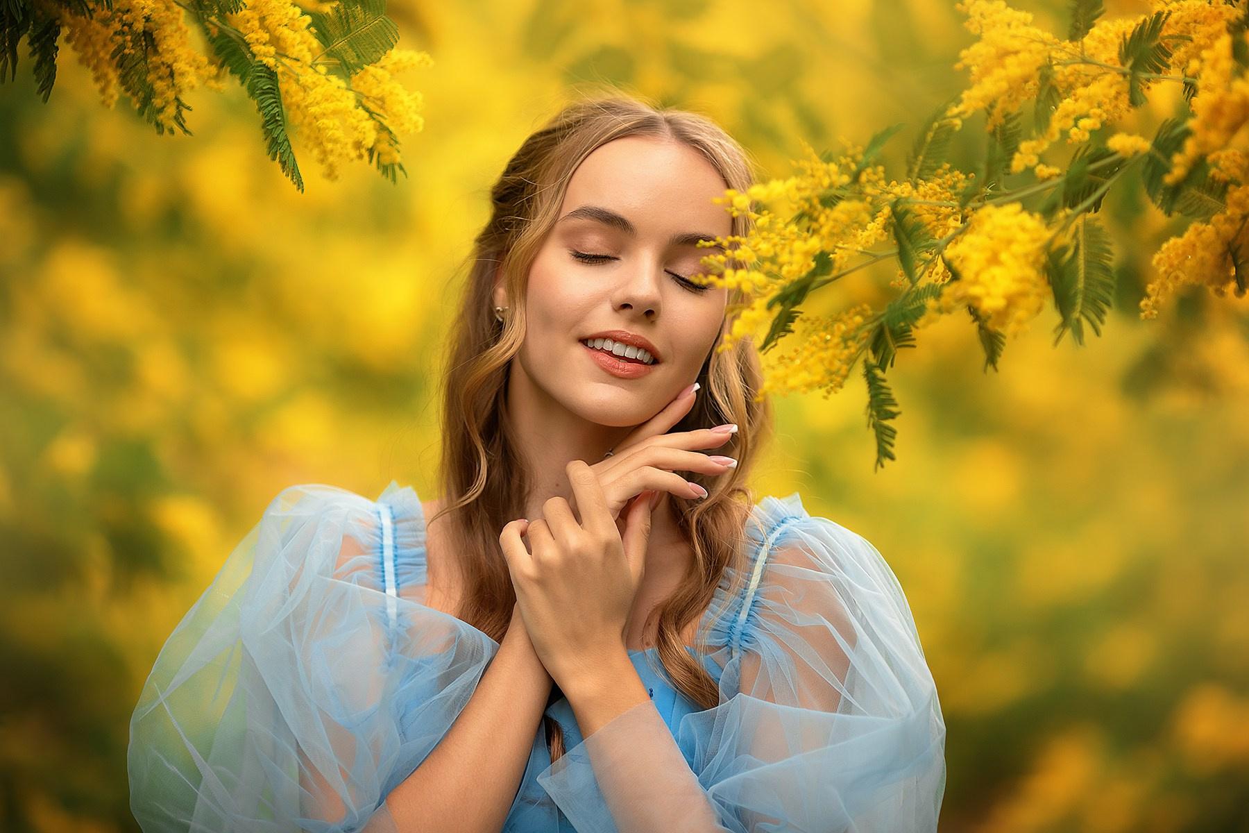 Девушка с мимозой