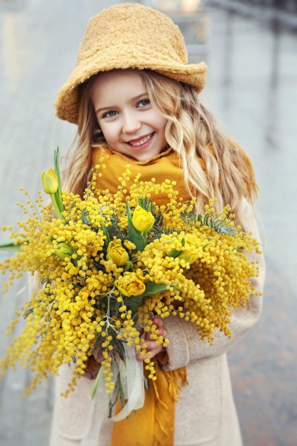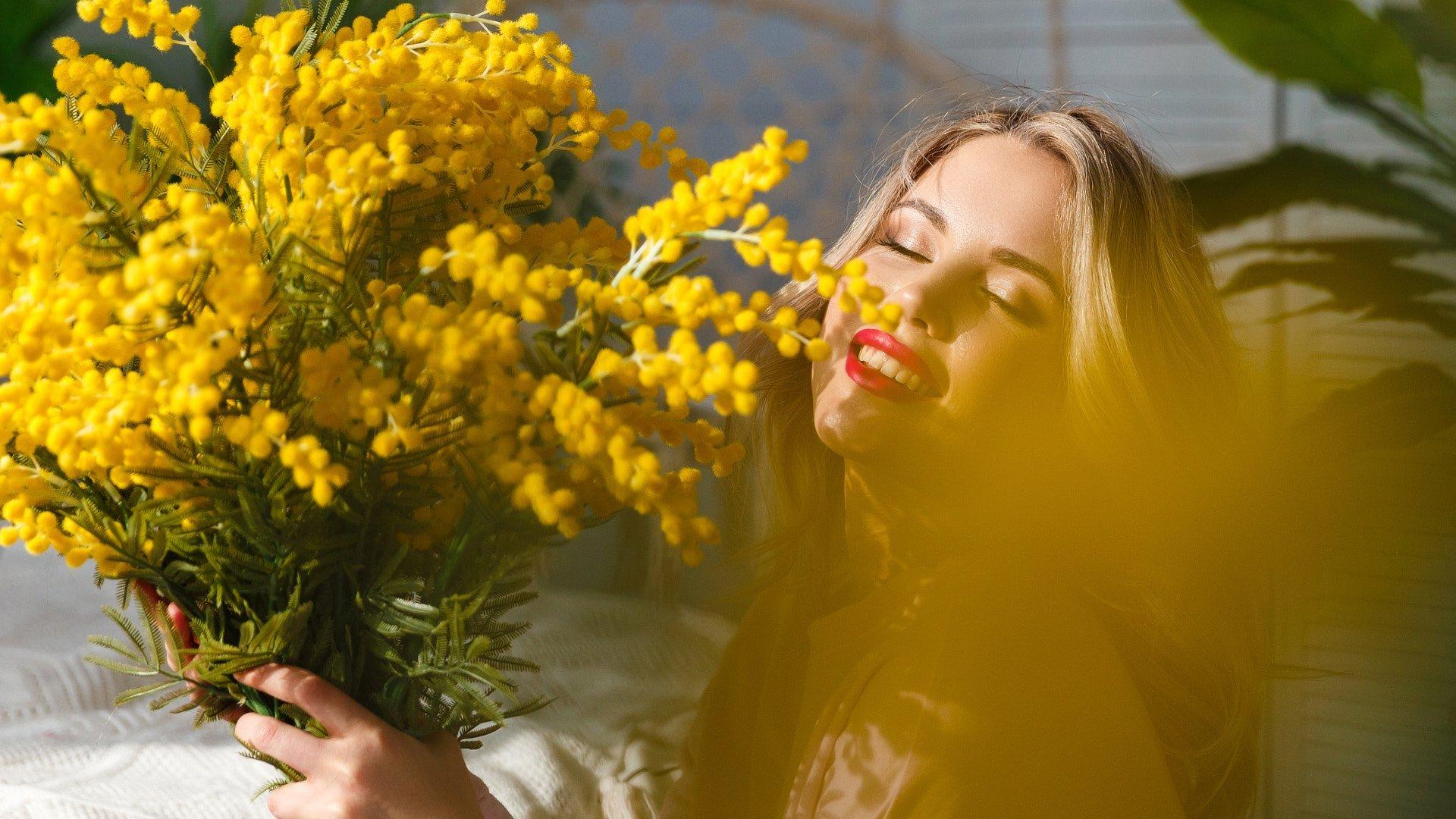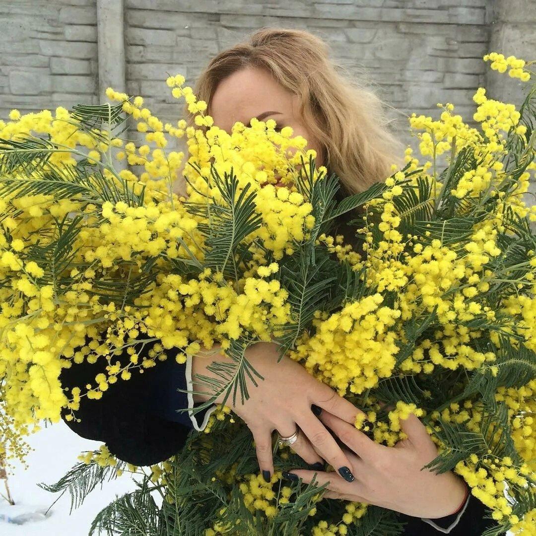 Красивые картинки Девушка с мимозой с надписями