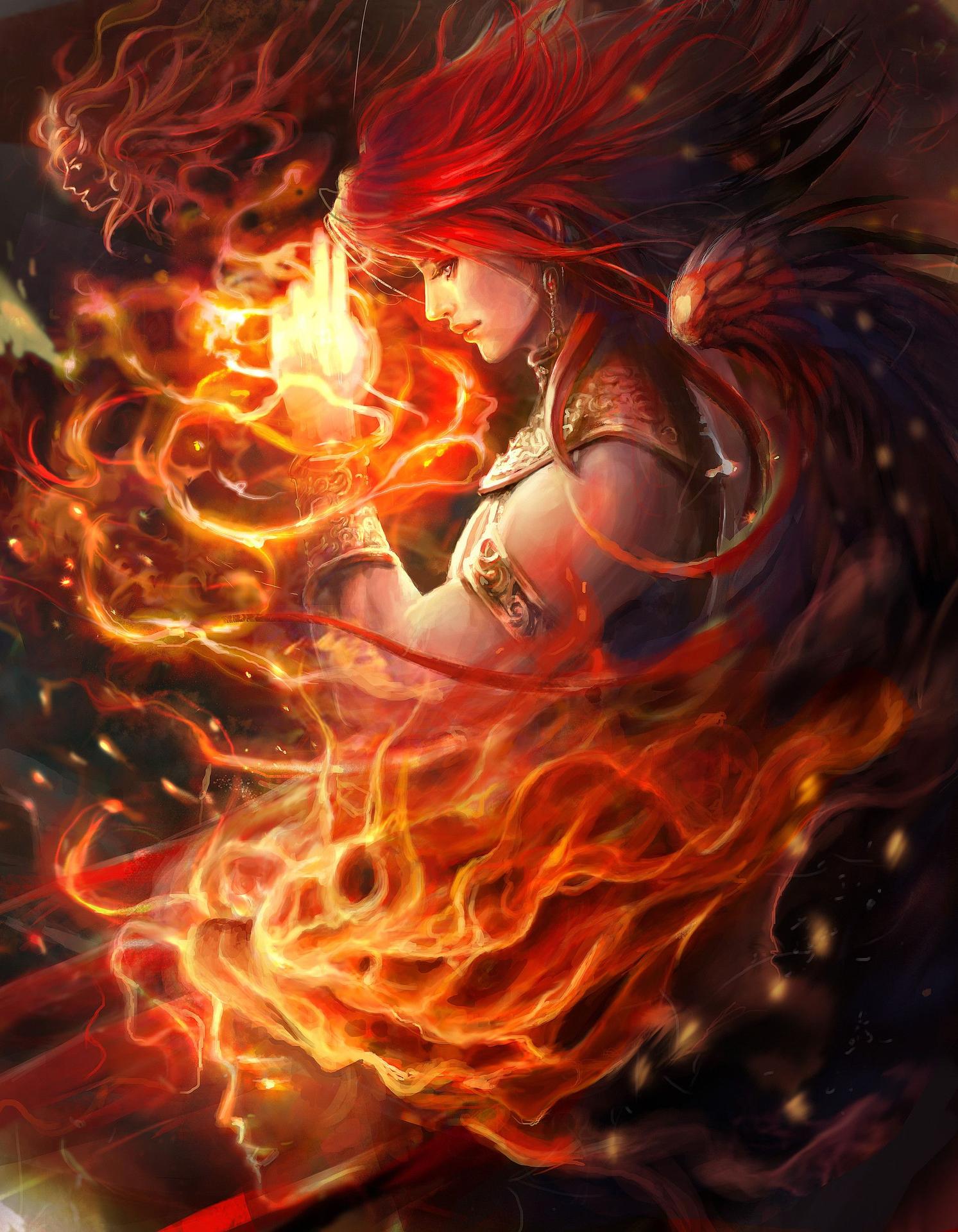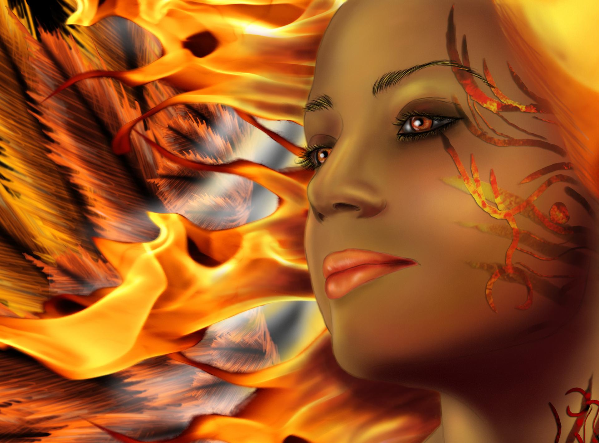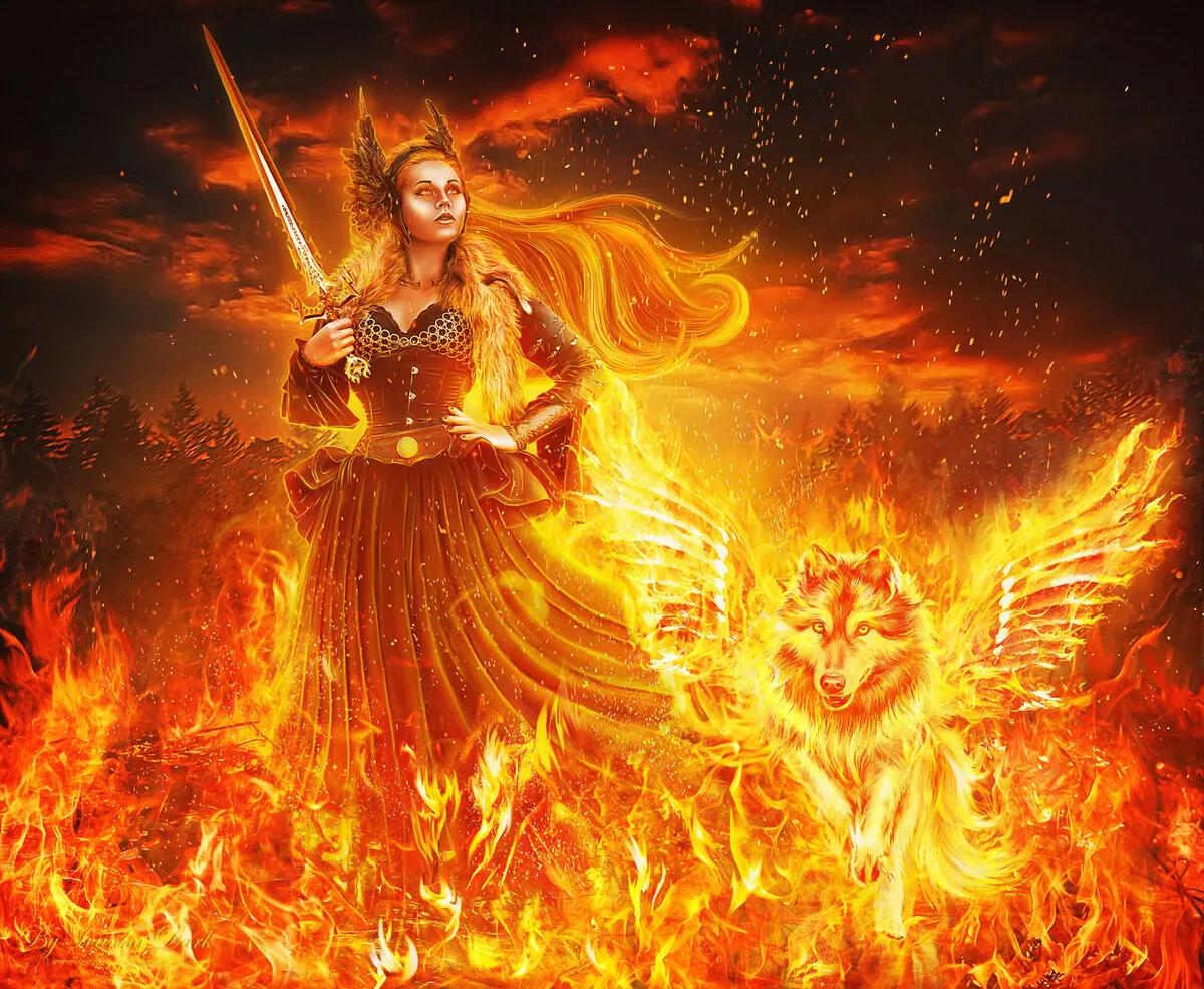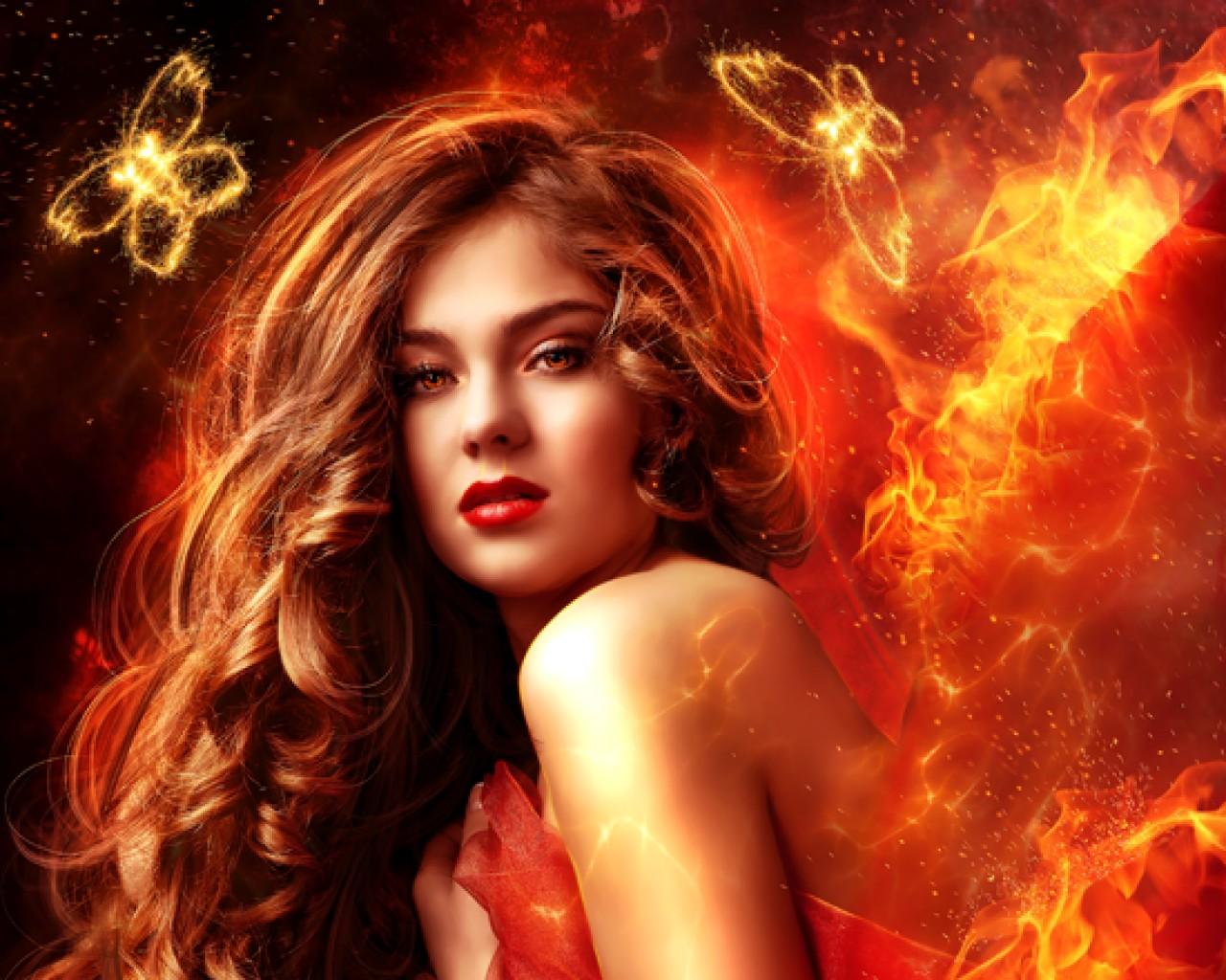 Красивые картинки Огненная девушка с надписями