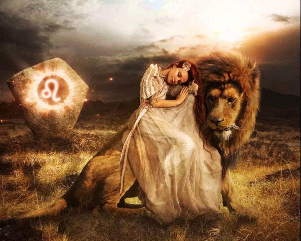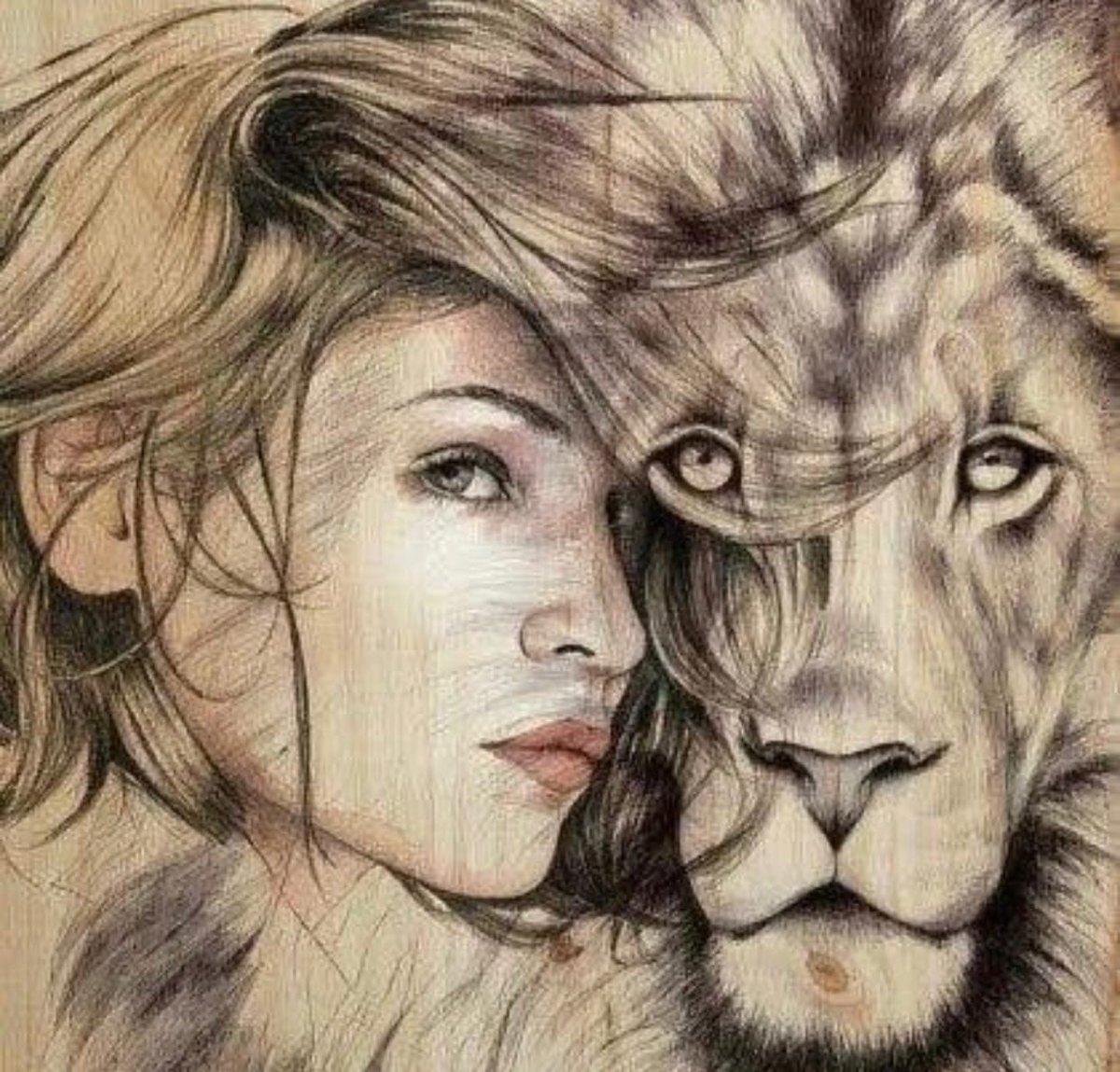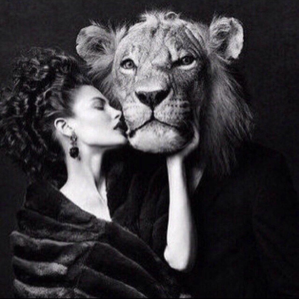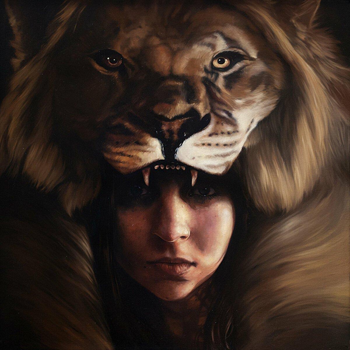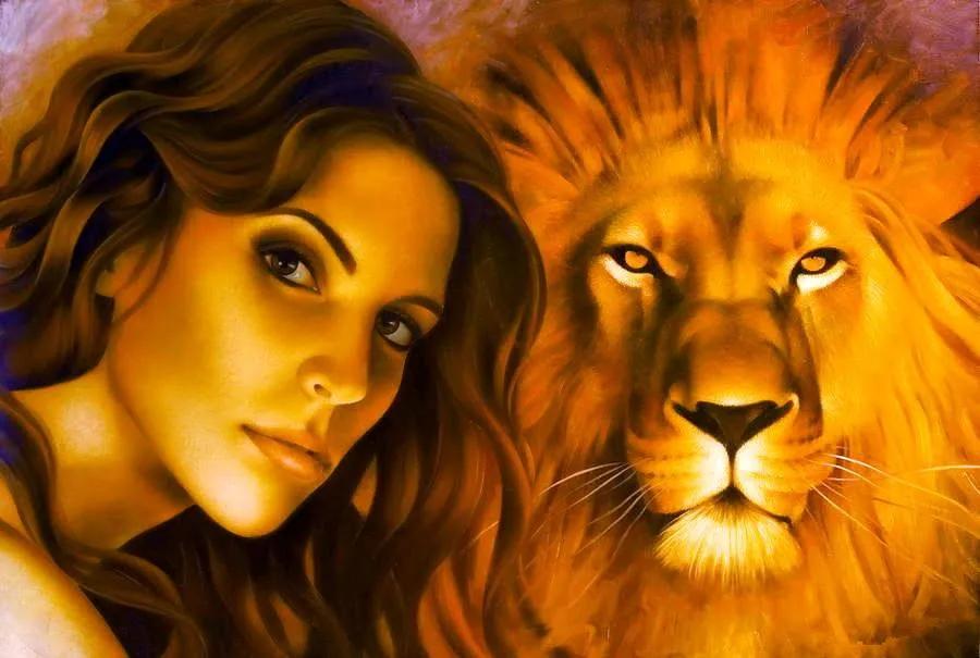 Красивые картинки Девушка и лев с надписями