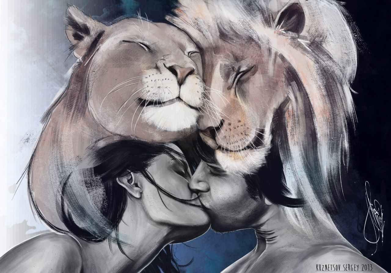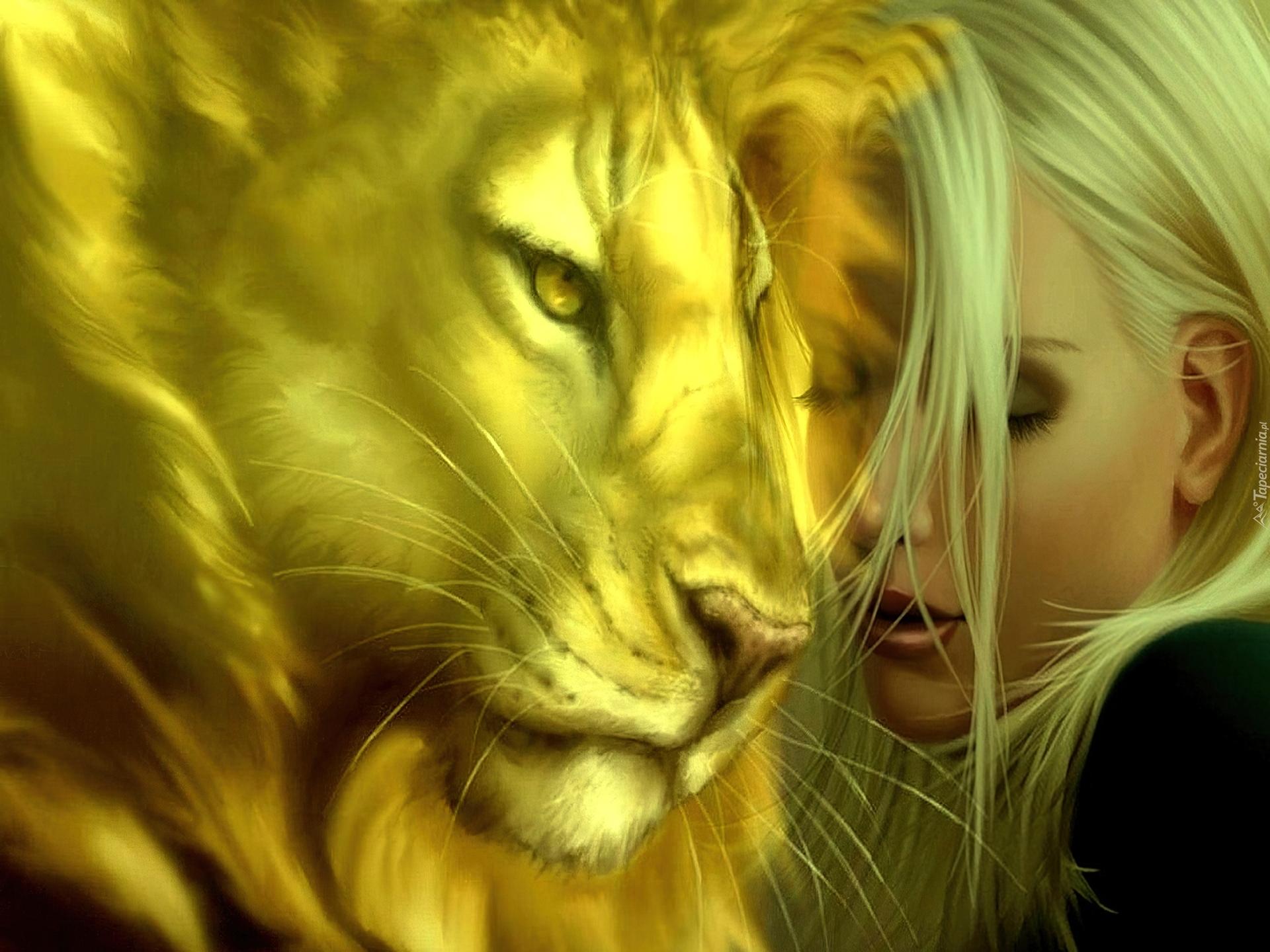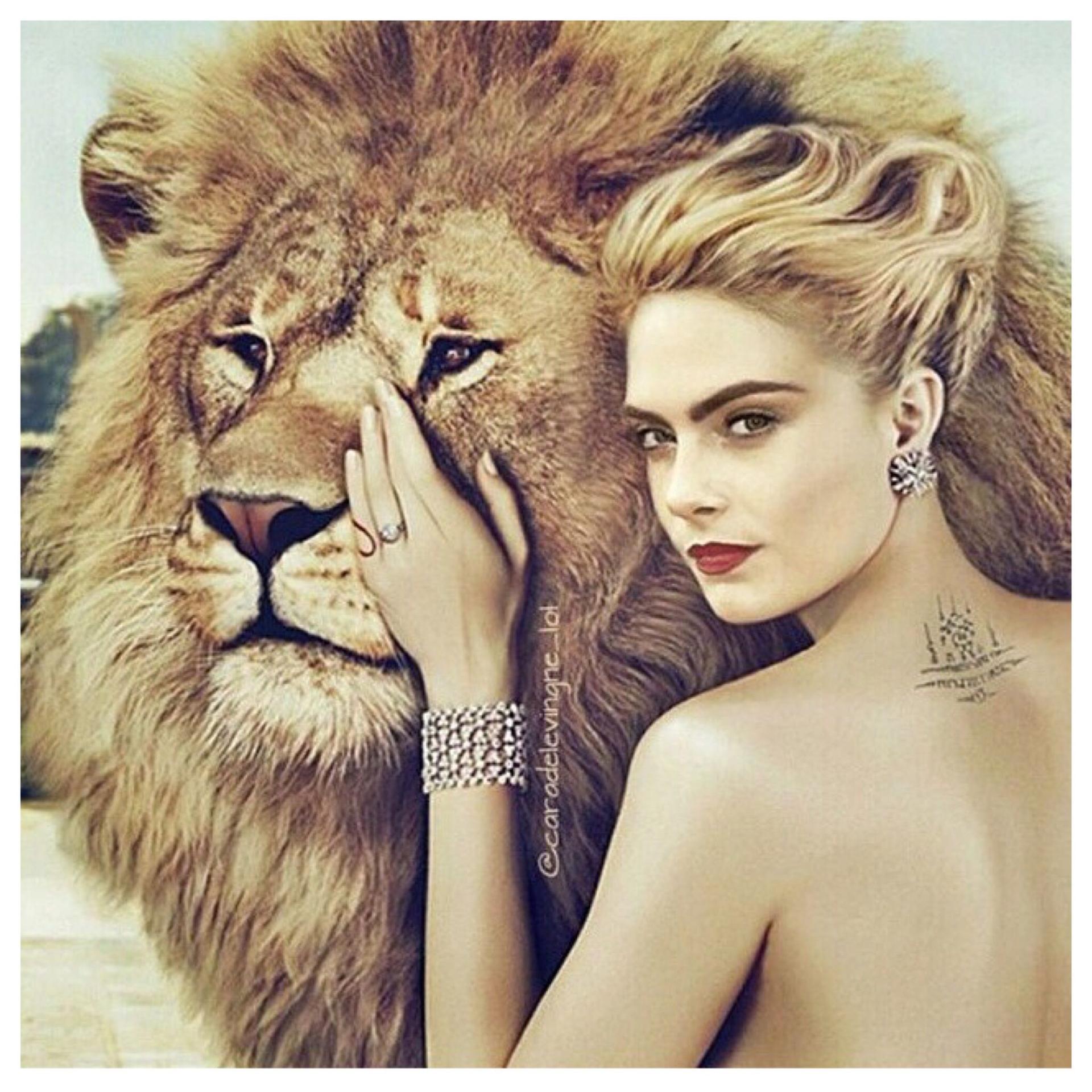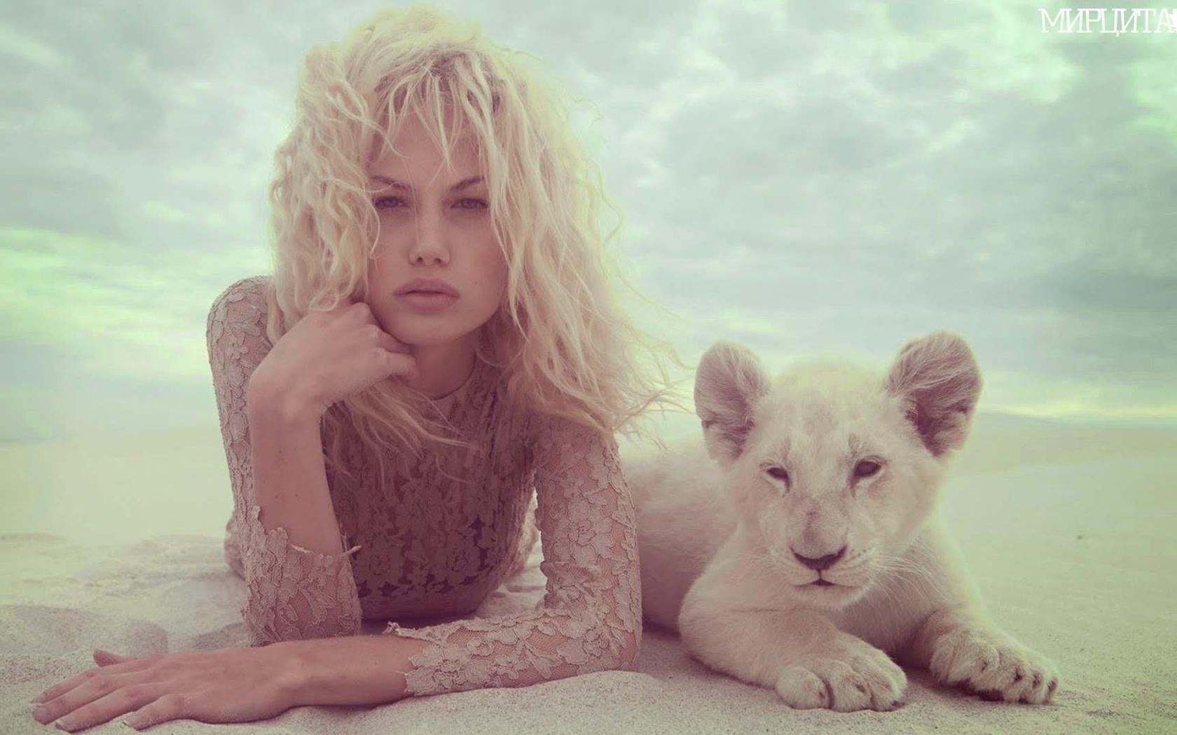 Красивые картинки Девушка и лев с надписями