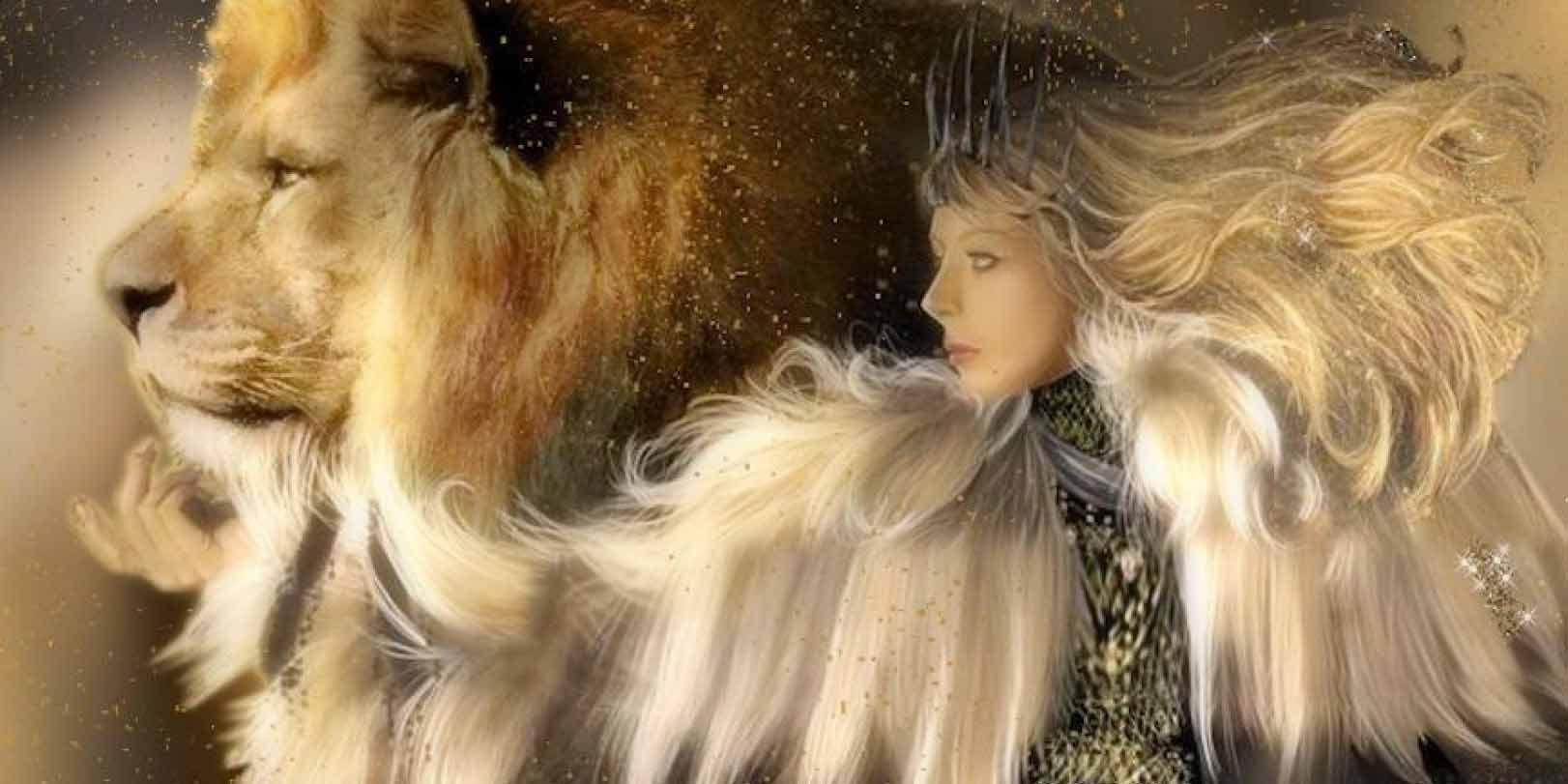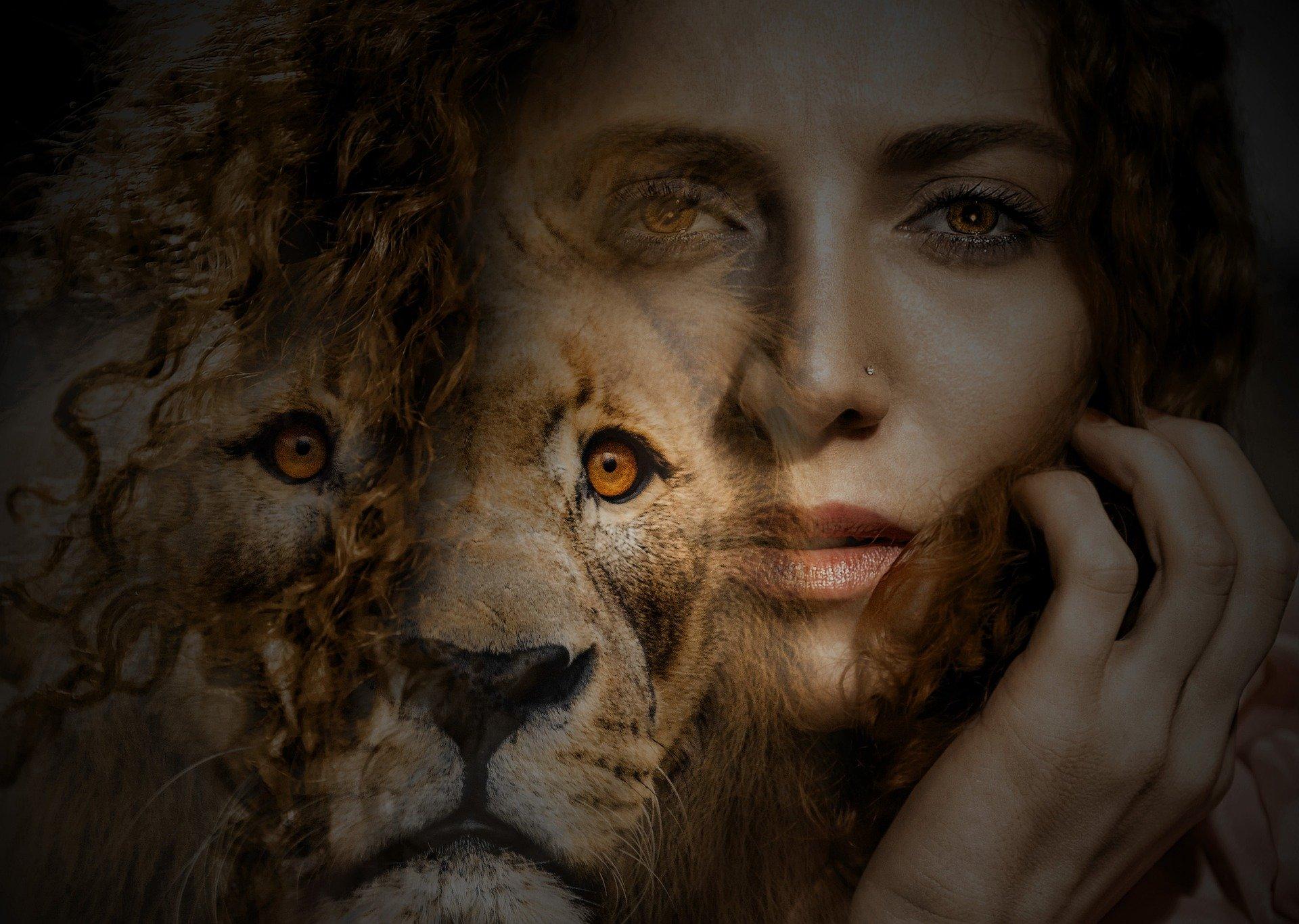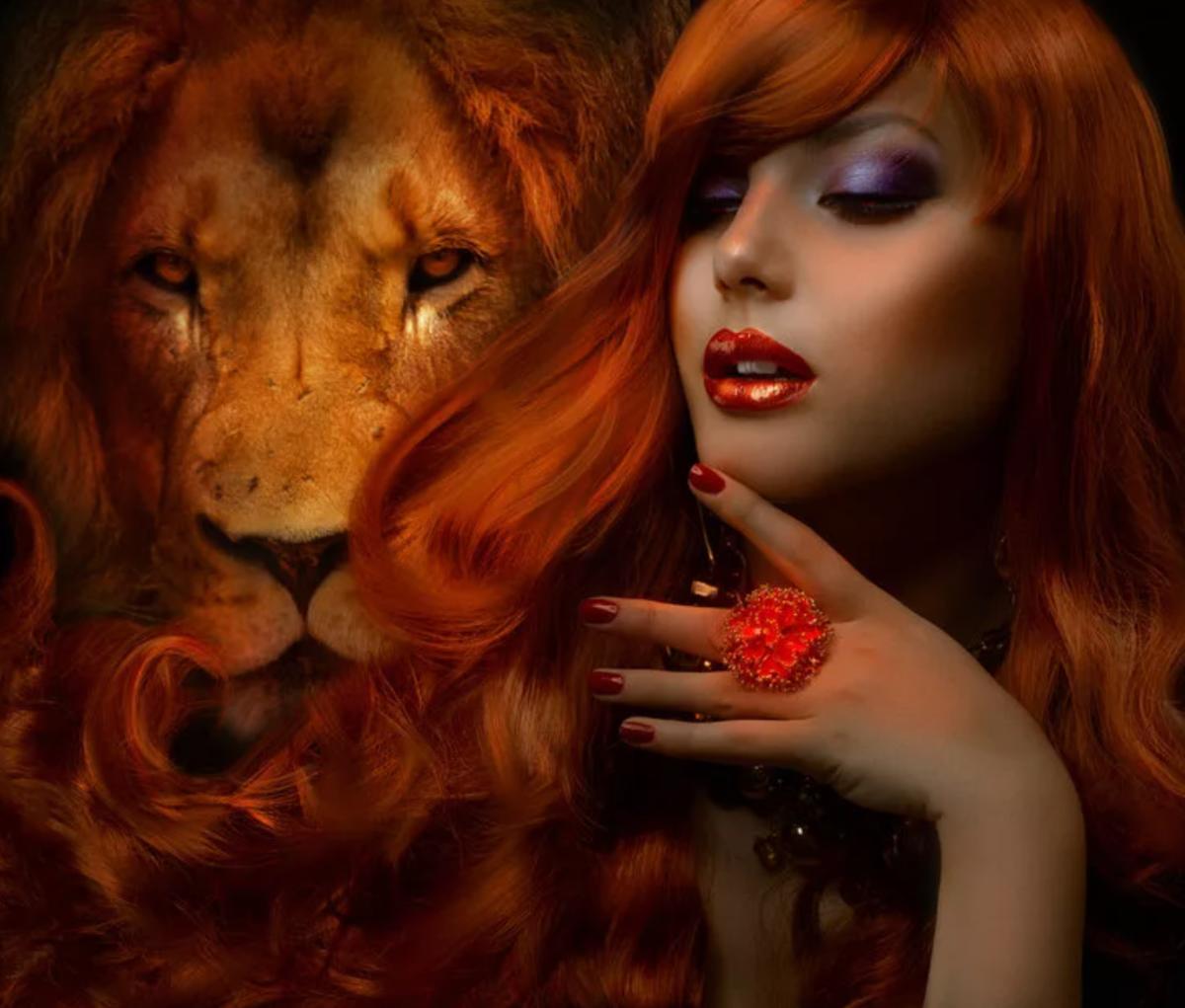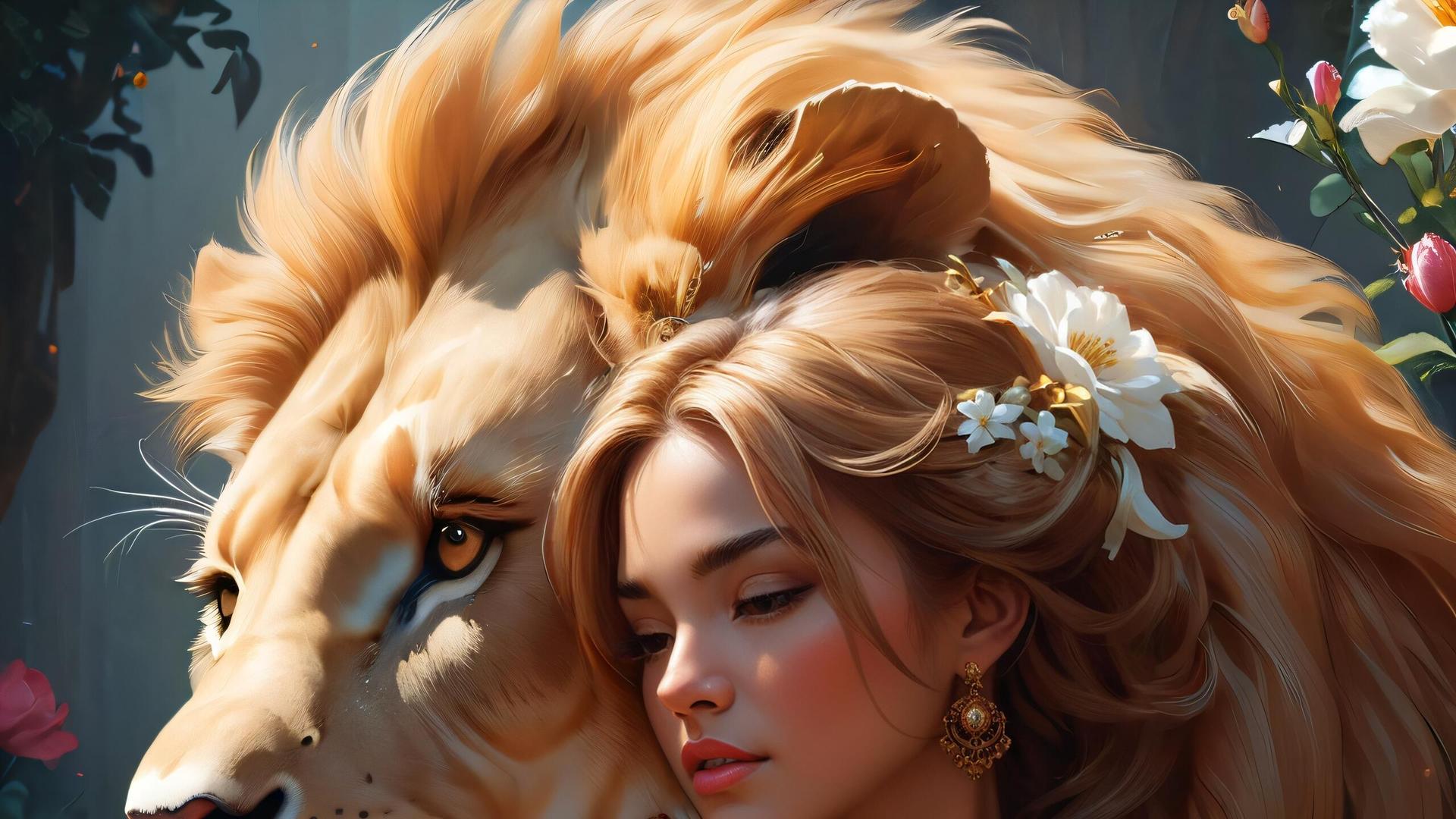 Красивые картинки Девушка и лев с надписями