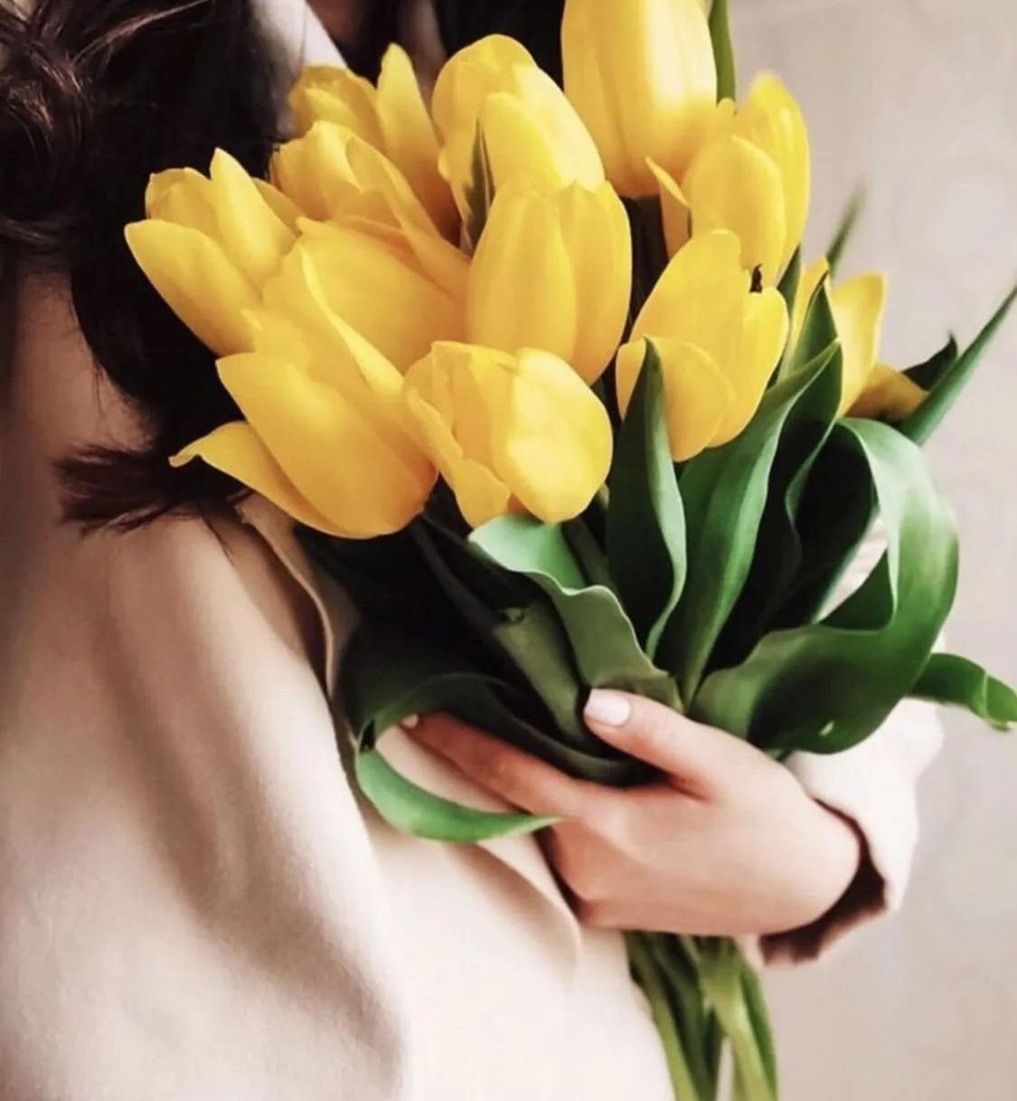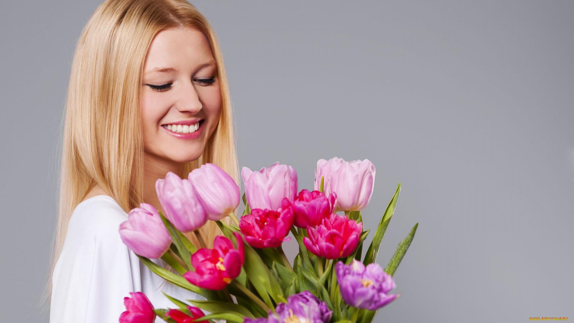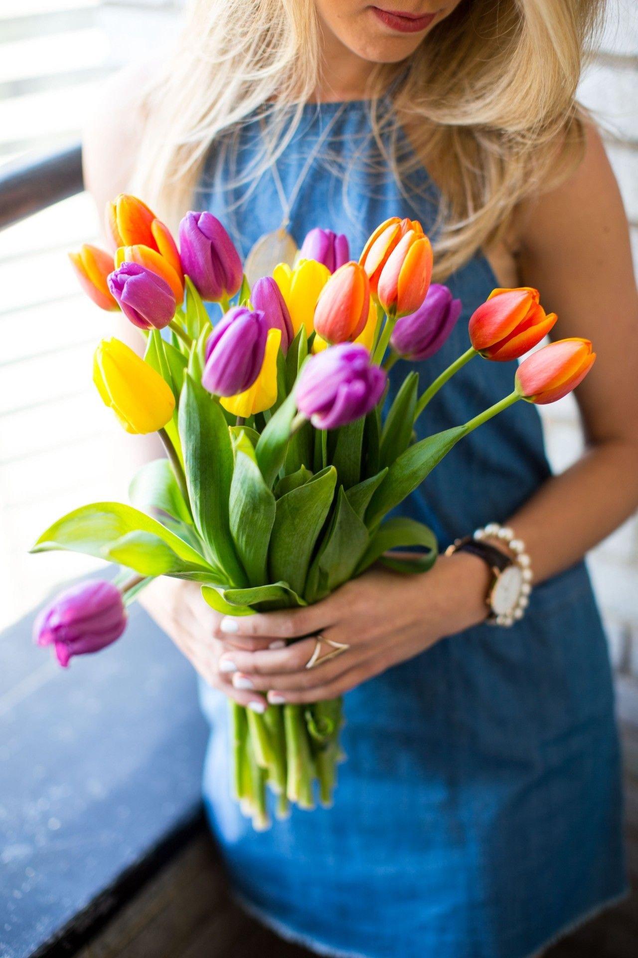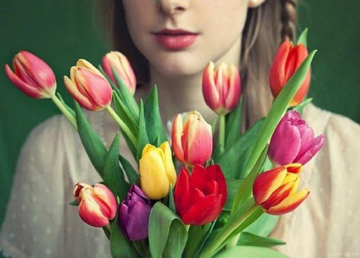 Красивые картинки Девушка с тюльпанами с надписями